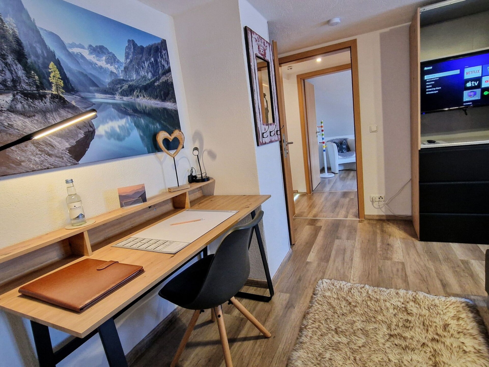 Discover the joys of a stay in our "Falkenstein" holiday flat, an oasis of peace with breathtaking mountain views in the heart of the picturesque Allgäu. This family-friendly 66 m² top-floor accommodation is perfectly tailored to the needs of up to 4 adults and a baby, complete with every comfort and typical Allgäu furnishings for an incomparable holiday.Inside, you will find a cosily furnished holiday flat with two bedrooms, each with a smart flat-screen TV. An additional baby cot is available for the youngest guests. The living room is furnished with a large, comfortable sofa, another Smart flat-screen TV and a kitchenette with dining area, ideal for shared meals. Self-caterers will appreciate the well-equipped kitchen. The spacious bathroom has two skylights, a round shower with shower master and a washing machine, alongside a separate WC for your convenience.Outside, the large east-facing balcony invites you to relax and enjoy the marvellous view of the Pfronten mountains.The "Falkenstein" holiday flat benefits from its fantastic location with panoramic skylights offering views of the Breitenberg, Kienberg, Falkenstein and other majestic peaks. Although quiet and sunny, the flat is centrally located with short distances to the mountain railways (10 minutes), the cross-country ski trail just around the corner and the centre, which is only a 5-minute walk away. There you will find the railway station, bus stop, bakeries, doctors, pharmacies and shopping facilities.Make your holiday in our Allgäu paradise an unforgettable experience. Benefit from the flexibility of our contactless check-in from 3 pm, allergy-friendly cleaning, a parking space included and other amenities such as the KönigsCard for over 200 free experiences. Here, in the "Falkenstein" holiday flat, you will not only experience the highest level of living comfort and excellent facilities, but also the incomparable beauty and tranquillity of the Allgäu.