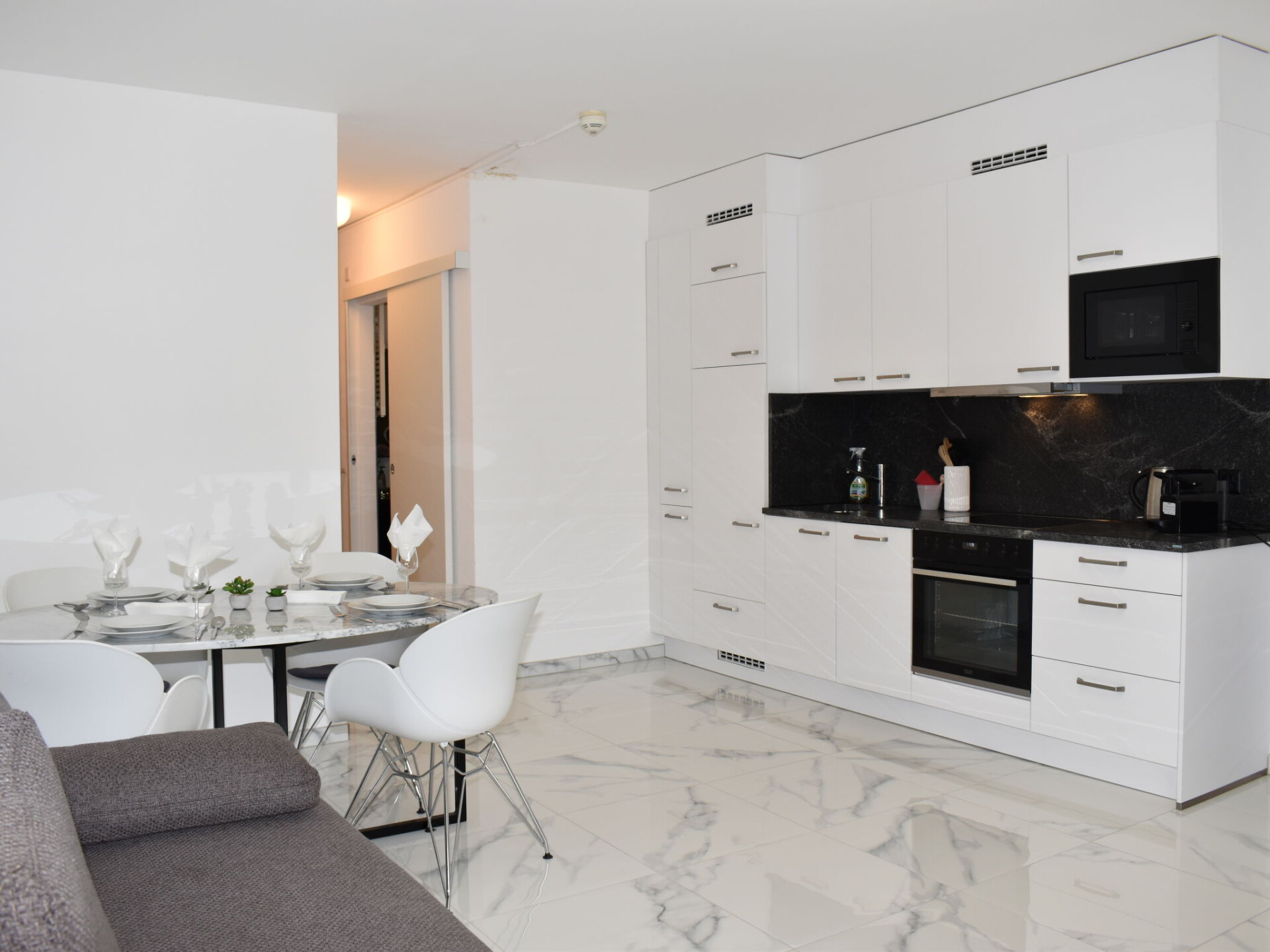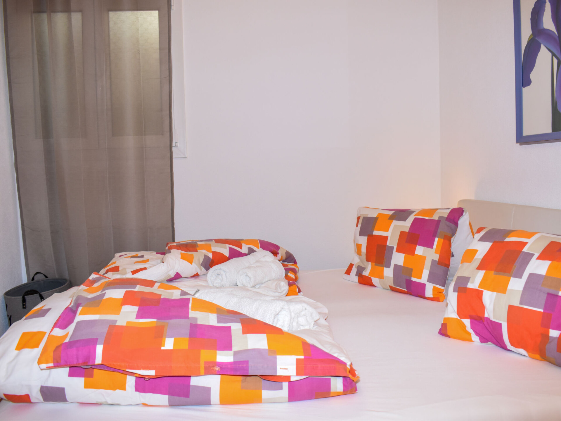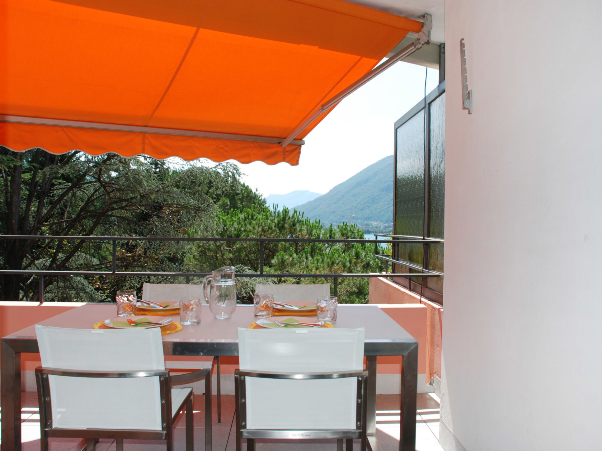 "App. 704", appartement 2-kamers 52 m2 op de 7e verdieping, op het zuiden gelegen. Volledig gerenoveerd in 2022, luxueus en stijlvol ingericht: groot, open woon-/eetkamer met 1 divanbed (160 cm, lengte 200 cm), Kabel-TV en internationale TV-zenders (Flatscreen TV), air-conditioning. Uitgang naar het balkon. 1 kleine 2-pers. kamer met 1 2-pers bed (2 x 90 cm, lengte 200 cm). Groot, open keuken (oven, afwasmachine, 4 keramische glas kookplaten, broodrooster, waterkoker, diepvriezer, elektrische koffiemachine, pads voor de koffiemachine (Nespresso) extra, raclette oven) met eettafel. Douche/WC. Balkon 10 m2, op het zuiden gelegen. Balkonmeubilair. Zeer mooi uitzicht op het meer, de bergen en het landschap. Ter beschikking: wasmachine (extra). Kinderstoel, kinderbed tot 2 jaar (extra), haardroger. Internet (Internet (WiFi), gratis). Parkeerplaats bij het huis. Niet rokers woning. NL-00001926