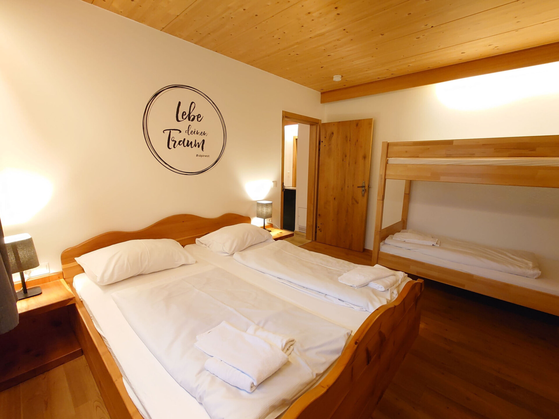 "6_Alp - Samspitze 3", appartement 3-kamers 68 m2. Het objekt is geschikt voor 8 volwassenen. Woonkamer met 1 divanbed, 1 uitschuifbaar bed en TV. 1 kamer met 1 x 2 stapelbedden, 1 2-pers bed en TV. 1 kamer met 1 2-pers bed. Open keuken (oven, afwasmachine, 4 keramische glas kookplaten, broodrooster, waterkoker, diepvriezer, elektrische koffiemachine). 2 douche/WC's. Terras 20 m2. Uitzicht op de bergen en de tuin. Ter beschikking: haardroger. Internet (WiFi, gratis). Parkeerplaats (3 Auto's) bij het huis. Niet rokers woning. 2 huisdieren/honden toegestaan. Rookmelders. 50503-004664-2022