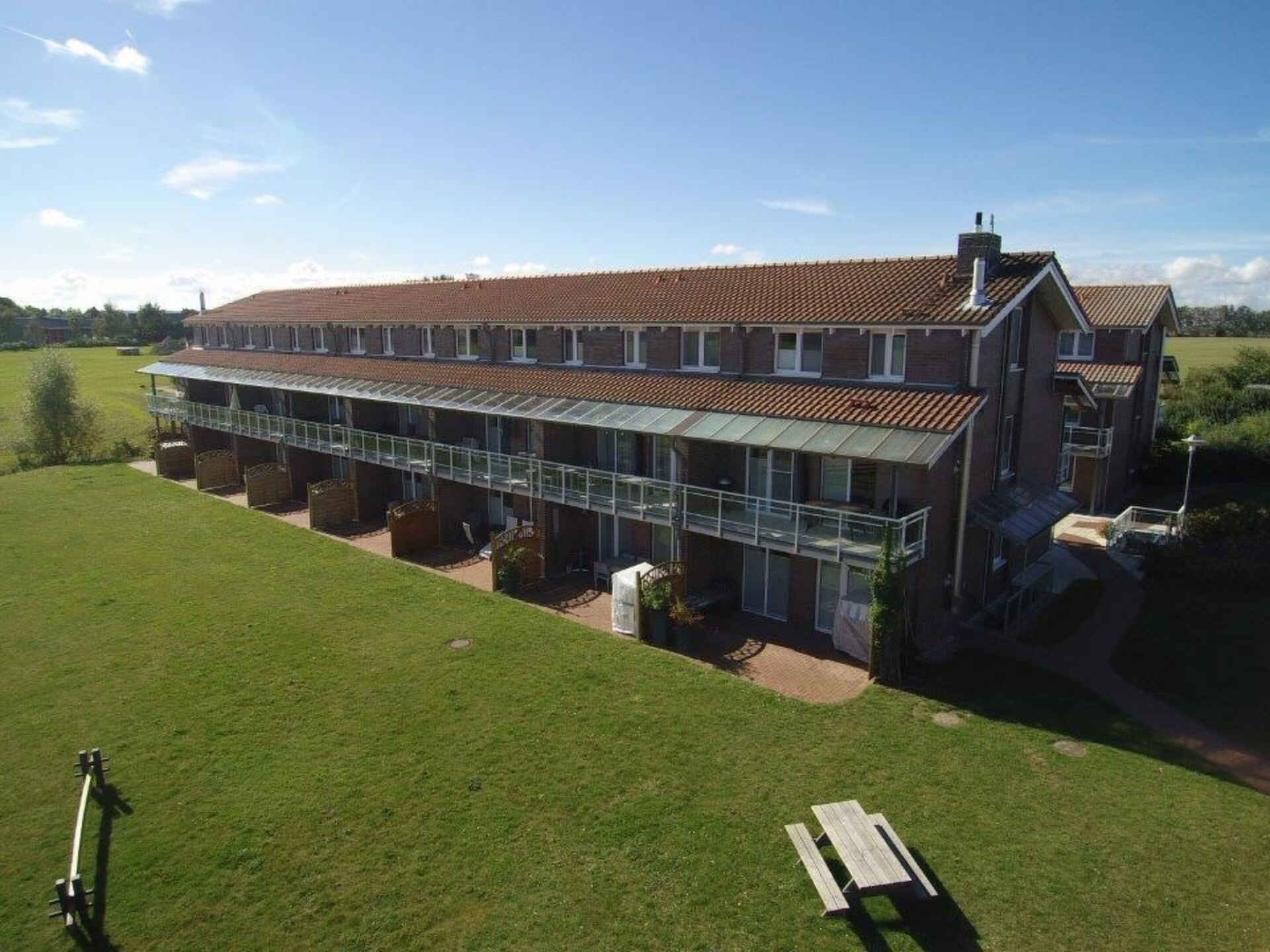 Maximaal 2 huisdieren/honden toegestaan. The 2-room flat has a total area of 57 m2 and is modernly furnished. The beautiful,fully furnished living room has floor-to-ceiling glass elements. Adjacent to this is the partially covered terrace.terrace. The separate bright kitchen is equipped with everything you need on holiday, including a dishwasherdishwasher, ceramic hob, oven and fridge. The storage room offers plenty of spacefor suitcases and other items. The bathroom has a walk-in shower.The bedroom is furnished with solid carpentry furniture. The wardrobe in the hallway is designed to matchdesigned to match. A floor-to-ceiling mirror completes the overall picture.You book a large, bright living room with a half-covered 12 square metre terrace, 1 beautiful bedroom, a comfortable bathroom and a total of 56 square metres of living space. 2 TV sets, radio and DVD and a collection of games and books are available as well as a log cabin sauna in the outdoor area. The children will love the playground and also have the opportunity to play football.We also have a table tennis room and bicycles for young and very young to borrow.With the handcart, the 800 metres to the beach are no problem for the little ones...We have a laundry room and plenty of parking space for cars.