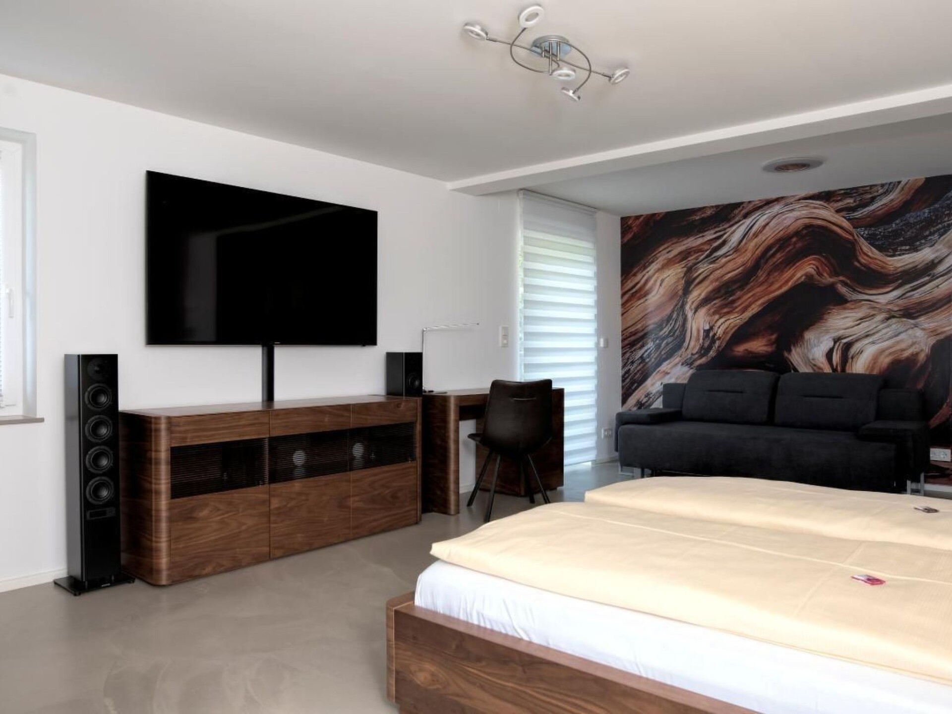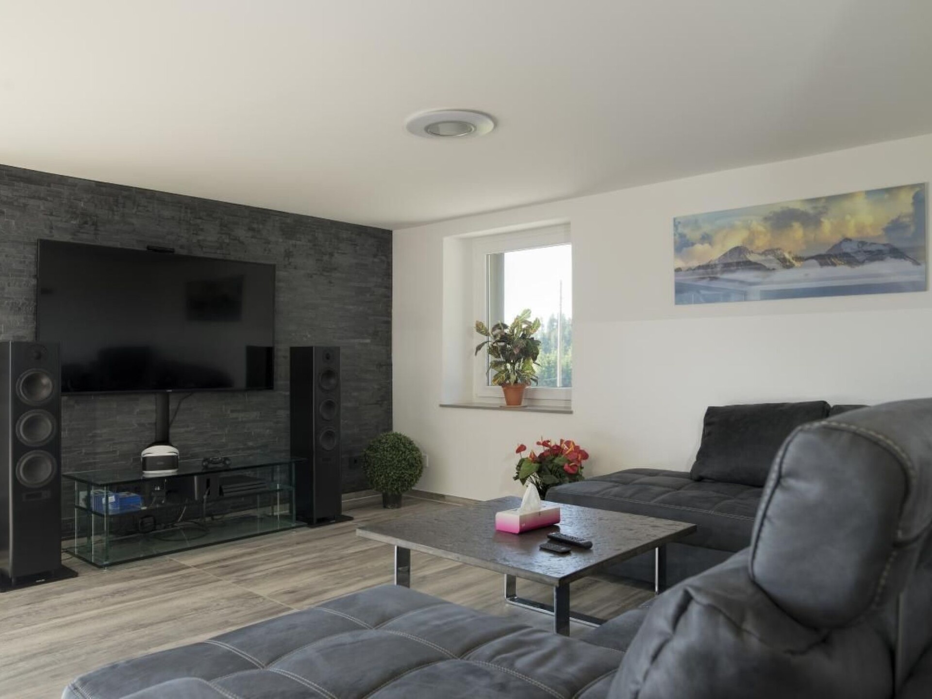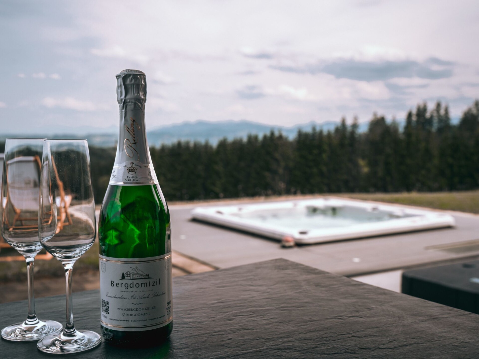 Maximaal 3 huisdieren/honden toegestaan. The apartment spans two floors, with the 3 bedrooms located on the first floor. Two of the rooms are approximately 16m2 each and feature a double bed, a wardrobe, electric shutters, and SAT-TV. The slightly larger room (about 26m2) includes, in addition to the basic amenities of the other rooms, a sofa bed. The open living/dining/kitchen area occupies the ground floor. The comfortable sofa in the living room can serve as sleeping space for 2 additional guests. In front of the panoramic window, there is a large dining table with a view of the mountains. The kitchen is fully equipped with an oven, induction stove, and microwave. A coffee machine can be rented in advance. The bathroom on the ground floor offers a walk-in shower, a bathtub, and a toilet. Additionally, on the first floor, there is a separate toilet with a sink. The entire apartment features underfloor heating for added comfort.Surrounded by green meadows, the terrace offers a first-class view of the nearby pond and majestic mountains – a perfect place to relax with a cold beer or a glass of wine. Comfortable garden furniture and a spacious gas grill (for an additional fee) are available.The holiday house is located in Buchenberg, a state-recognized climatic health resort since 1987. This designation not only emphasizes the relaxation but also the beneficial effects on health during a stay in Buchenberg.Nestled in an environment of meadows and forests, Buchenberg is situated at an elevation of approximately 1,000 meters above sea level. The location extends into the pre-alpine hills and moorland on the southwestern edge of the Kempten Iller basin, transitioning to the mountainous region of Adelegg. This picturesque setting provides a scenic backdrop for the holiday house, promising a tranquil and health-promoting atmosphere.The exclusive Panoramic View Suite indulges with a sunken whirlpool, exclusively for private relaxation. In the heart of the mountain retreat Hölzlers, additional exclusive wellness facilities await, including a rustic wooden sauna, artfully designed in the style of a circus wagon. (Sauna and whirlpool usage at an additional cost)Enjoy our cozy communal space with heated ambiance – an inviting place for games and leisure. Table tennis, foosball, and darts are available to all guests for shared entertainment and enjoyment.