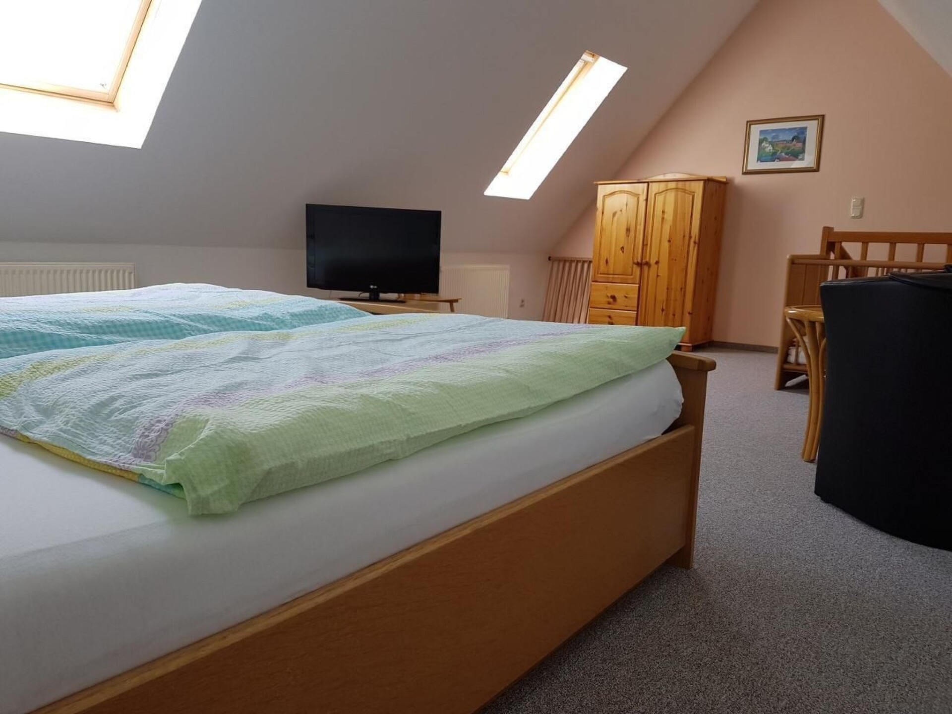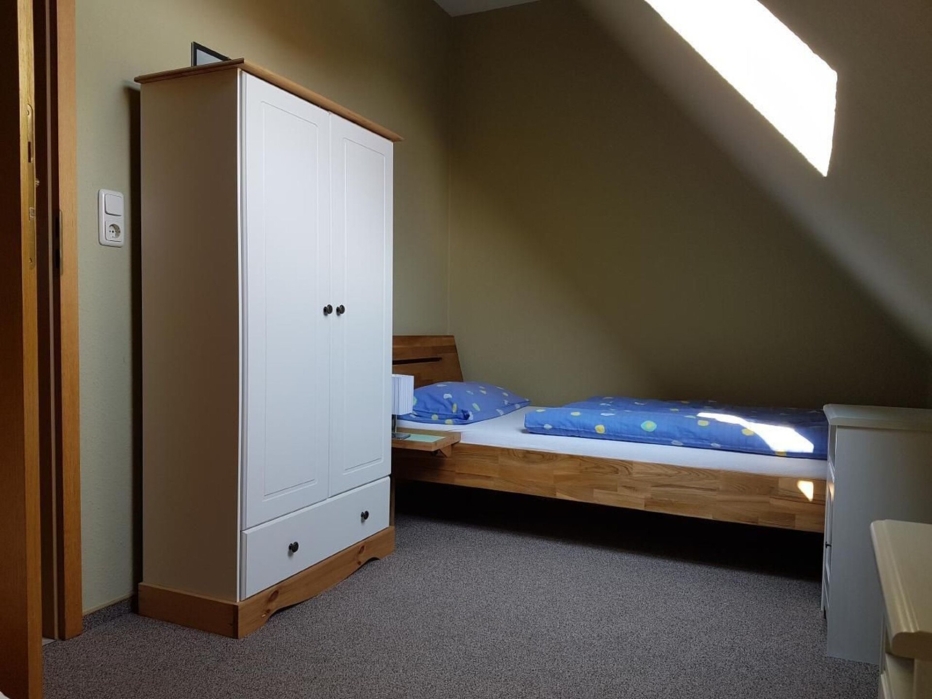 Our house is located in a residential area on the outskirts of Heiligenhafen. The flat is located in a semi-detached house (upstairs). It is a 75 square metre flat on the 1st floor + attic. A separate sitting area in the garden can be used as a terrace and the landlord lives in the other half of the house. The pedestrian zone (the city centre) can be reached in about 15-20 minutes on foot and the beach is about 2000m away.Short descriptionOther : Non-smoking houseShort description 1Number of kitchens : 1Bedroom 1Other bedroom furnishings : TVSurroundingsLoan facilities : Bicycle hireSports facilities in the area : Fishing, golf course, climbing, cycling, sailing, squash, surfing, diving, tennis, water skiingSurroundings 1Excursions : Graswarder nature reserveLearn about its inhabitants and the typical salt marsh plants on a guided tour of the seabird colony!See tiny crabs in the damp mudflats and watch the oystercatcher pull a lugworm out of the mudflats. Nature conservation wardens will guide you to the gull colony. With a bit of luck, you can hold a 37-degree egg or a hatched hatchling in your hand and a trip to the harbour is always a wonderful experience. No matter what time of day you visit, there is always something to see here. See more and switch off... The partly two-storey pier, which changes direction twice, stretches a whopping 435 metres out to sea! All year round, it offers a view of the sometimes calm and sometimes turbulent sea. - In good weather, holidaymakers and day trippers even have the opportunity to see as far as Fehmarn. It's simply wonderful to enjoy an ice cream or a fish sandwich and let the balmy wind blow around your nose and blow away any gloomy thoughts!Old town :Enjoy the old town romance of the old fishing village on the Baltic Sea as you stroll through Heiligenhafen.place description : Heiligenhafen with its beautiful old town, the quaint fishing harbour, the pretty market square and the fascinating cliffs has always delighted holidaymakers from near and far. Nature, beach, wind, waves and an unrivalled view of the Fehmarn Sound are just some of the advantages you can enjoy here. Another crowd-puller are the annual harbour festivals, which attract locals and visitors alike.Other sports and leisure facilities : Heiligenhafen offers a wide range of leisure activities, for example: - Deep-sea fishing - Brandun fishing from the beach - Bowling and skittle alleys - Tennis - Table tennis - Football pitch - Mini golf - Mini go-kart tracks - Electric scooters - Gymnastics - Bicycle hire - Fitness centre - Reading room - Horse riding - Sauna - Children's playgroundsGarden and outdoor facilitiesRecreational facilities at the property : PlaygroundGarden equipment : Garden furniture available, barbecue