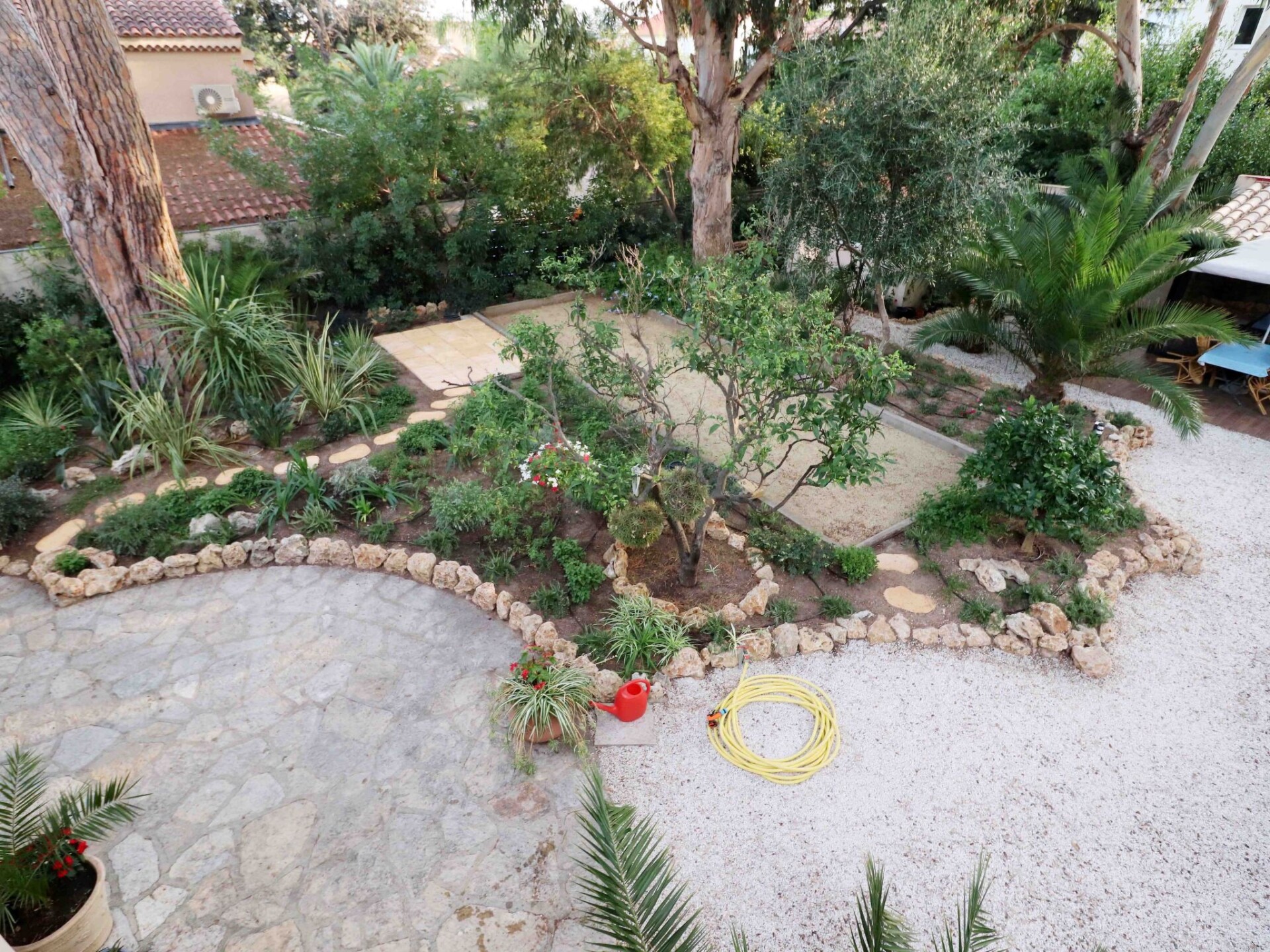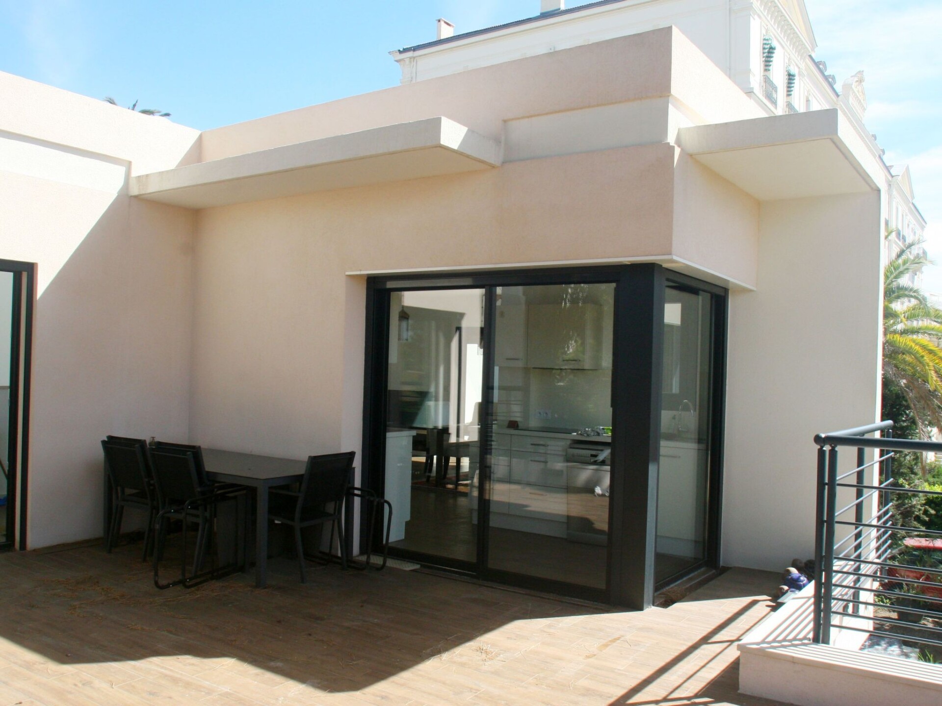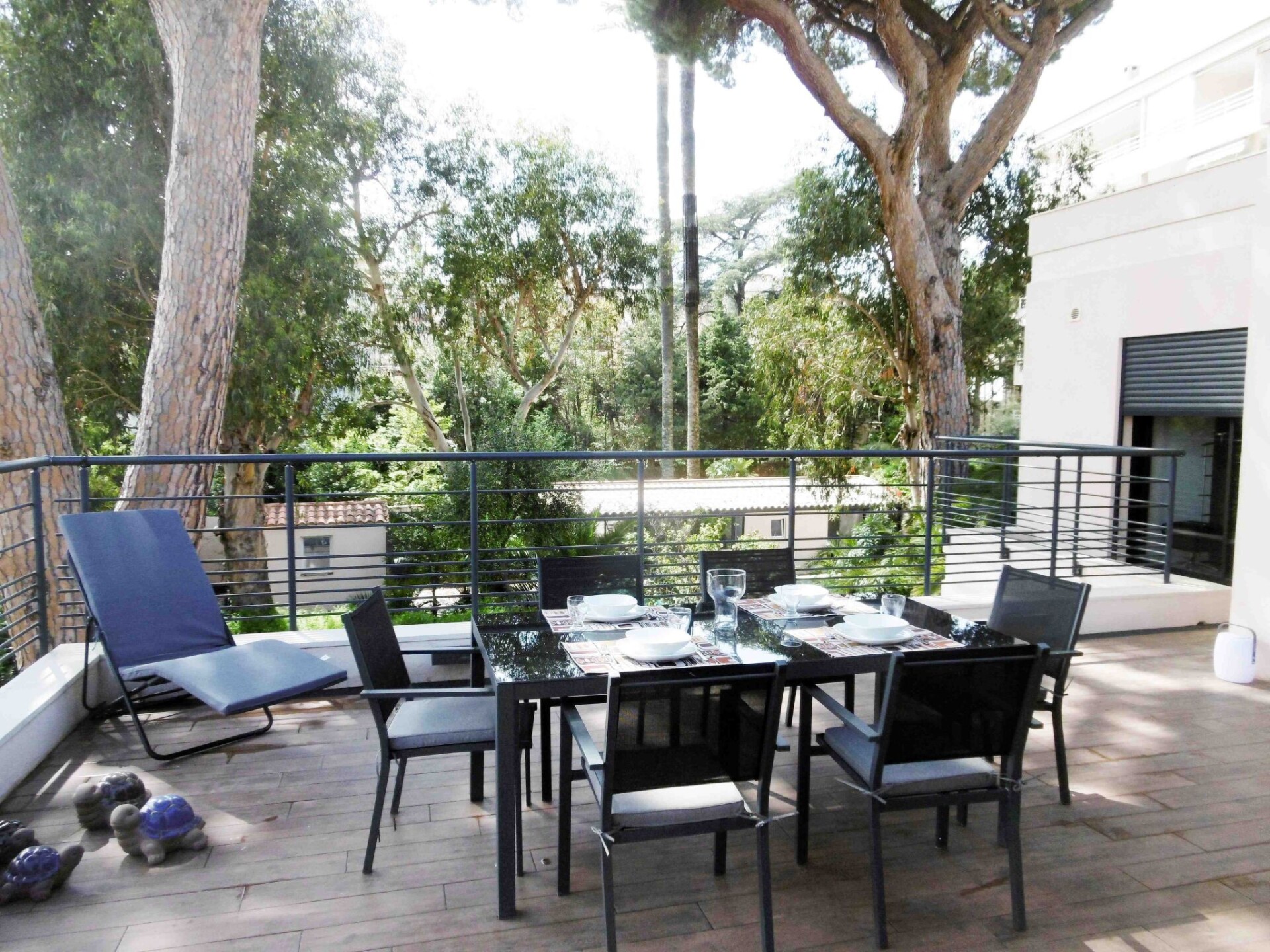 This holiday flat is located on the first floor of a detached house within a private residence and is situated in Cannes on the Côte d'Azur. From the house you can reach the beach, the Croisette centre and the Festival Palais in just a few minutes.Outside, a large terrace with garden furniture, two balconies and a garden with an infinity swimming pool (heatable) await you. Here you can completely relax and unwind. The infinity pool is a saltwater pool, i.e. it is very pleasant, odourless and equipped with the latest water treatment technology without the addition of chlorine. Another highlight is the private boules court (boccia). The garden is shared with the owner at times or, after completion of the garden flat, with its tenants if rented at the same time. You can actively explore the neighbourhood with the four bicycles available (three men's bikes, one women's bike). Cars can be parked free of charge in three private outdoor car parks. Pets are allowed on request.With a living space of approx. 100 m², this luxuriously furnished villa floor with its own entrance, which was completed in March 2018, offers enough space for a maximum of six people. The living/dining room has a comfortable sofa, a satellite TV, a dining table with seating and a fireplace for cosy hours. The adjoining open-plan kitchen is fully equipped with an oven, a (deep) fridge, an induction hob, a dishwasher, a microwave, a kettle and a filter coffee machine, leaving nothing to be desired. The large sliding glass doors provide plenty of light. A total of three bedrooms await you: Two bedrooms each have a double bed (1.60 metres wide), while the third has two single beds (each 0.90 metres wide). The bathroom features a shower, WC, washbasin and hairdryer. There is also a shower and washbasin in another bathroom, but the WC is located in a separate room. The entire house is equipped with central air conditioning, heating and free Wi-Fi. A washing machine can also be used free of charge.The sea and the beach, as well as the centre (Croisette) can be reached on foot in approx. ten to fifteen minutes. A supermarket, a bakery and a bus station are in the immediate vicinity (approx. 200 - 300 metres).Please note that this is a non-smoking flat. 06029011552SB