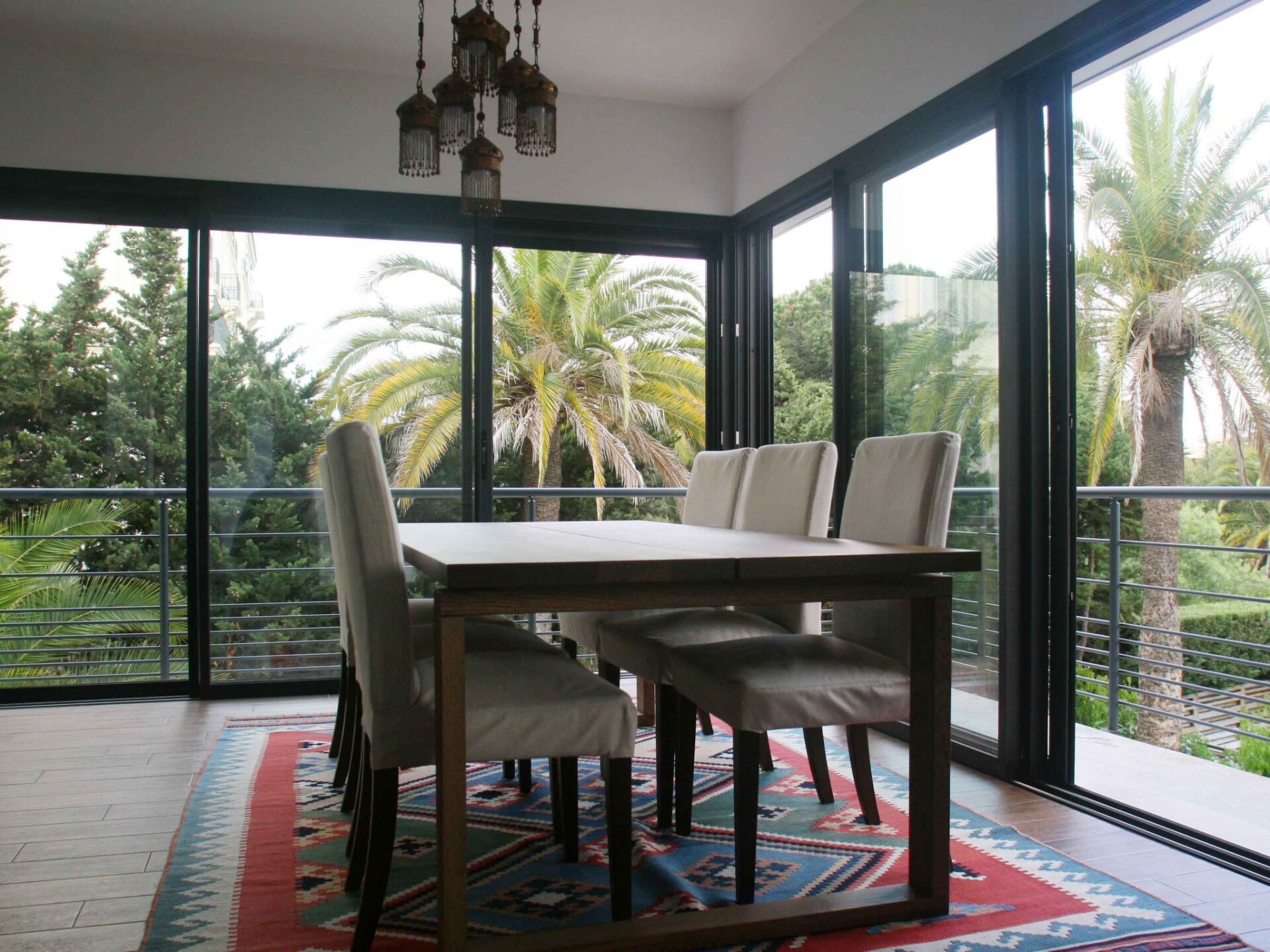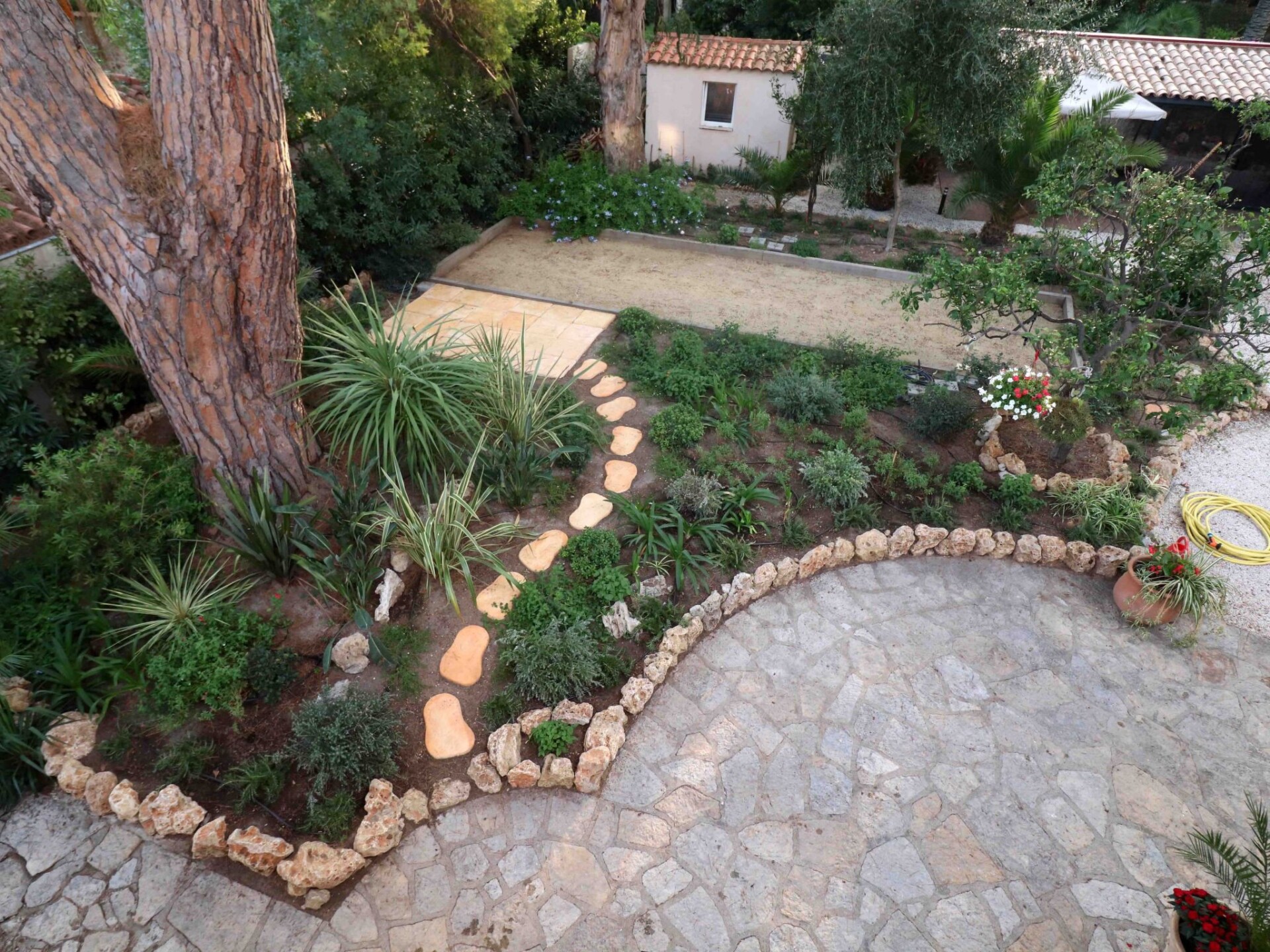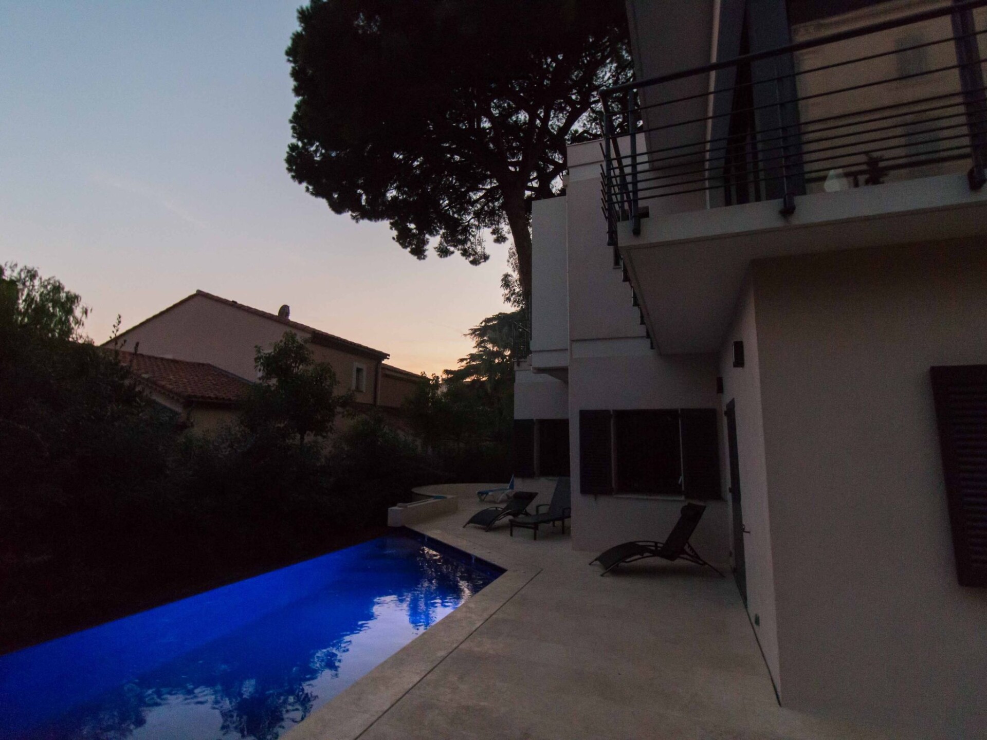 This holiday flat is located on the first floor of a detached house within a private residence and is situated in Cannes on the Côte d'Azur. From the house you can reach the beach, the Croisette centre and the Festival Palais in just a few minutes.Outside, a large terrace with garden furniture, two balconies and a garden with an infinity swimming pool (heatable) await you. Here you can completely relax and unwind. The infinity pool is a saltwater pool, i.e. it is very pleasant, odourless and equipped with the latest water treatment technology without the addition of chlorine. Another highlight is the private boules court (boccia). The garden is shared with the owner at times or, after completion of the garden flat, with its tenants if rented at the same time. You can actively explore the neighbourhood with the four bicycles available (three men's bikes, one women's bike). Cars can be parked free of charge in three private outdoor car parks. Pets are allowed on request.With a living space of approx. 100 m², this luxuriously furnished villa floor with its own entrance, which was completed in March 2018, offers enough space for a maximum of six people. The living/dining room has a comfortable sofa, a satellite TV, a dining table with seating and a fireplace for cosy hours. The adjoining open-plan kitchen is fully equipped with an oven, a (deep) fridge, an induction hob, a dishwasher, a microwave, a kettle and a filter coffee machine, leaving nothing to be desired. The large sliding glass doors provide plenty of light. A total of three bedrooms await you: Two bedrooms each have a double bed (1.60 metres wide), while the third has two single beds (each 0.90 metres wide). The bathroom features a shower, WC, washbasin and hairdryer. There is also a shower and washbasin in another bathroom, but the WC is located in a separate room. The entire house is equipped with central air conditioning, heating and free Wi-Fi. A washing machine can also be used free of charge.The sea and the beach, as well as the centre (Croisette) can be reached on foot in approx. ten to fifteen minutes. A supermarket, a bakery and a bus station are in the immediate vicinity (approx. 200 - 300 metres).Please note that this is a non-smoking flat. 06029011552SB