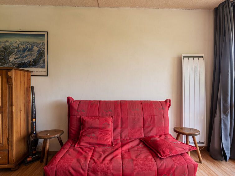 "Plein Sud", studio 1-kamer 35 m2 op de 2e verdieping. Het objekt is geschikt voor 7 volwassenen. Woonkamer met 1 divanbed en 3 x 2 stapelbedden, 1 2-pers bed, 1 uitschuifbaar bed en TV. Open keuken (2-pits kookplaat, oven, afwasmachine, magnetron, diepvriezer, elektrische koffiemachine). Bad/WC. Balkon. Uitzicht op de bergen en de skipiste. Ter beschikking: wasmachine. Niet rokers woning. Aanbod door een commerciële eigenaar volgens art. 155, IV, CGI