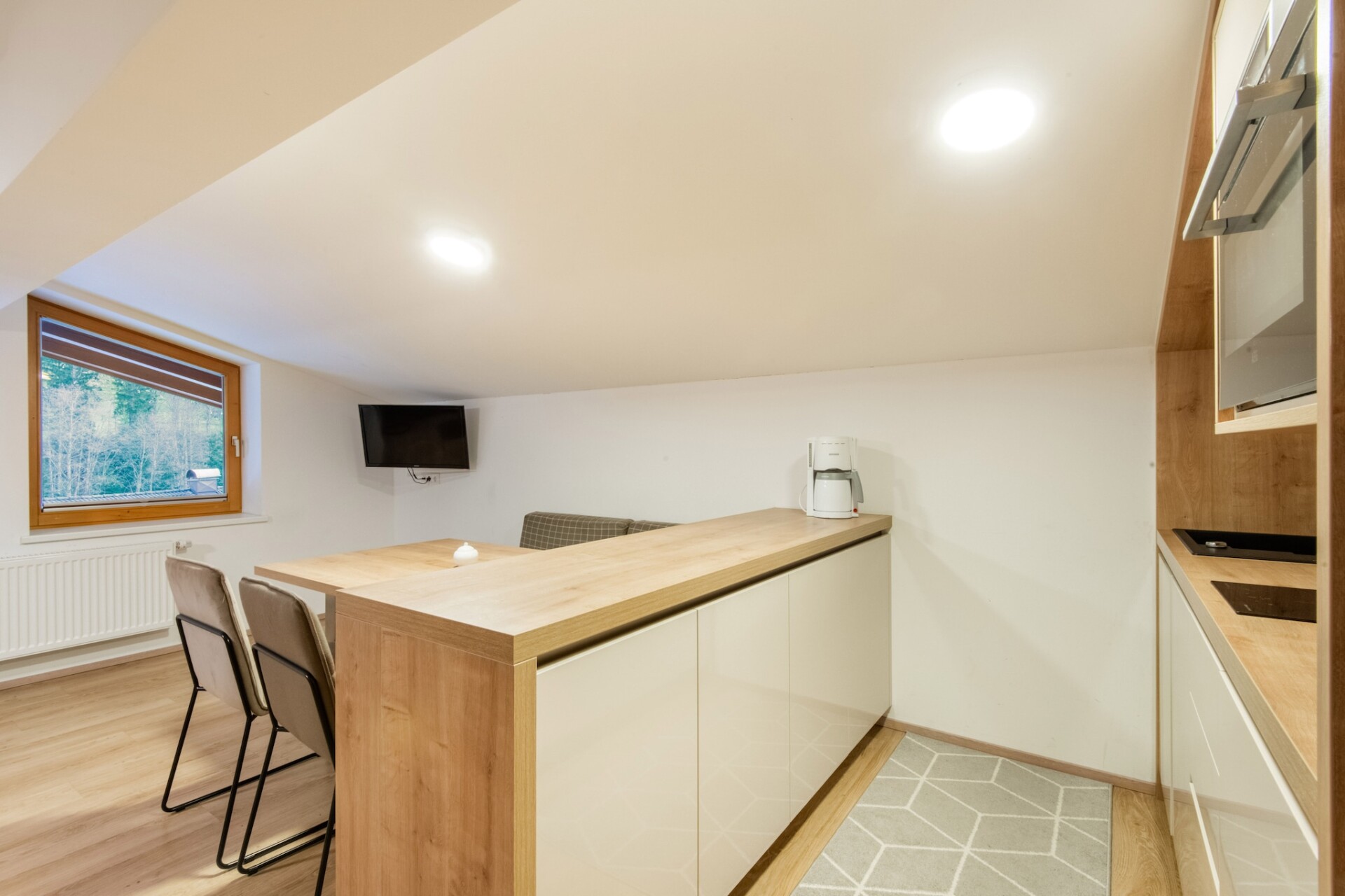 Naast een ruime woonkamer met een slaapbank en een moderne open keuken beschikt het appartement over 1 slaapkamer met 1 tweepersoonsbed en een slaapbank voor 1 persoon, evenals een badkamer. Het appartement biedt tevens toegang tot de algemene faciliteiten van het huis, denk bijvoorbeeld aan een voetbalwedstrijd in de Sky Sports Bar, een potje tafeltennis of een verfrissende duik in het gemeenschappelijke buitenzwembad (geopend van begin juni tot eind september).