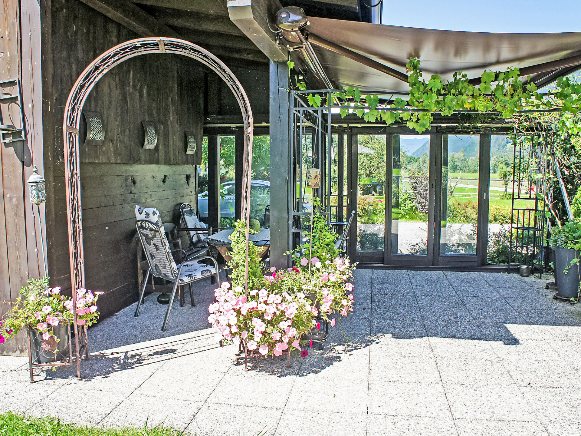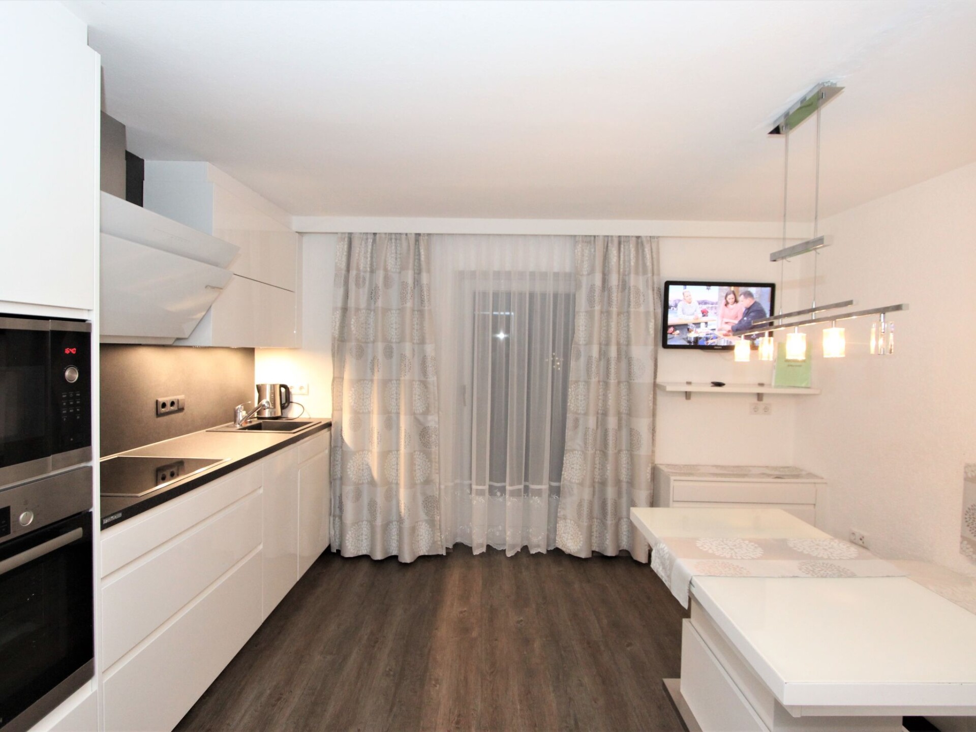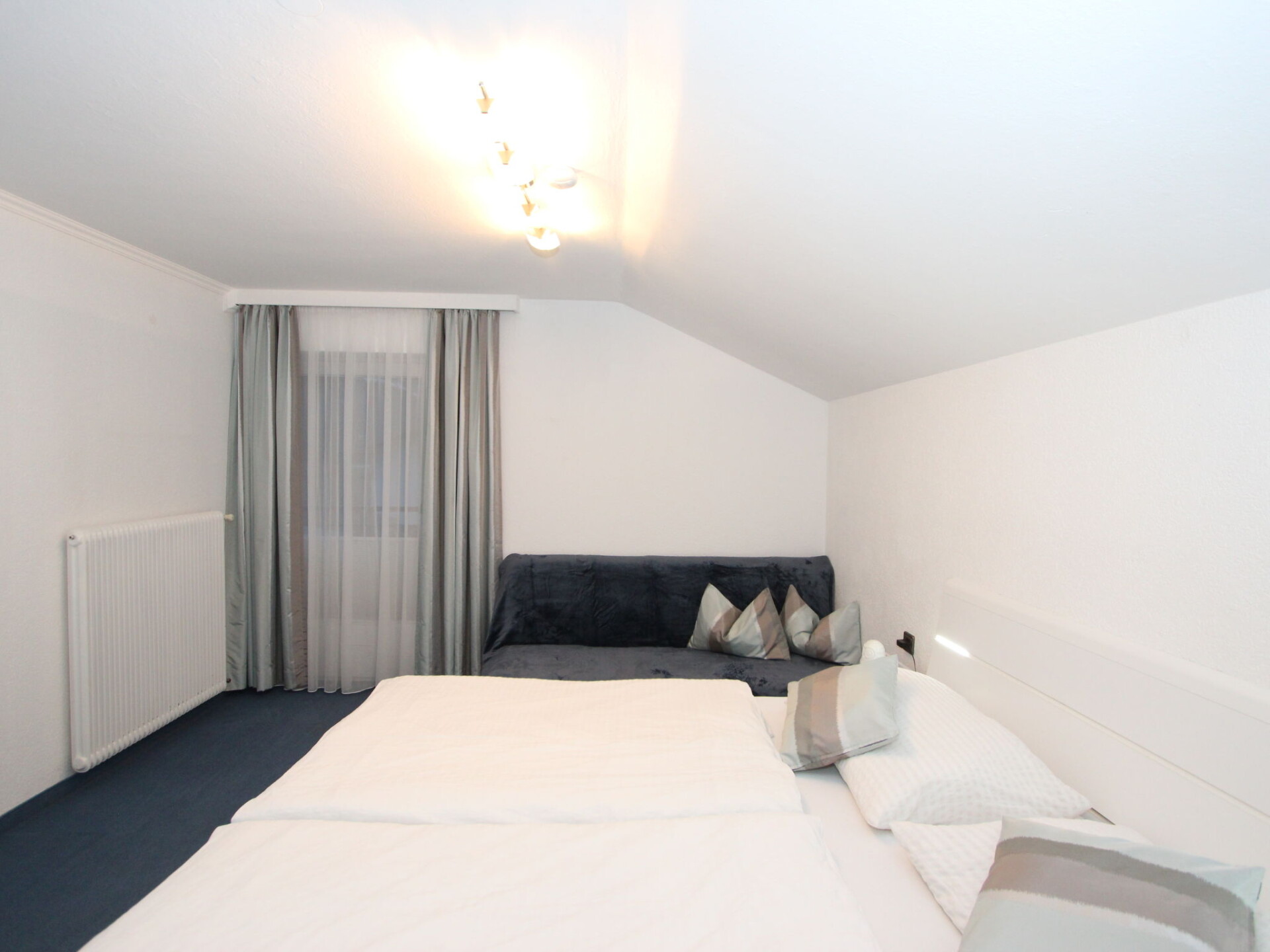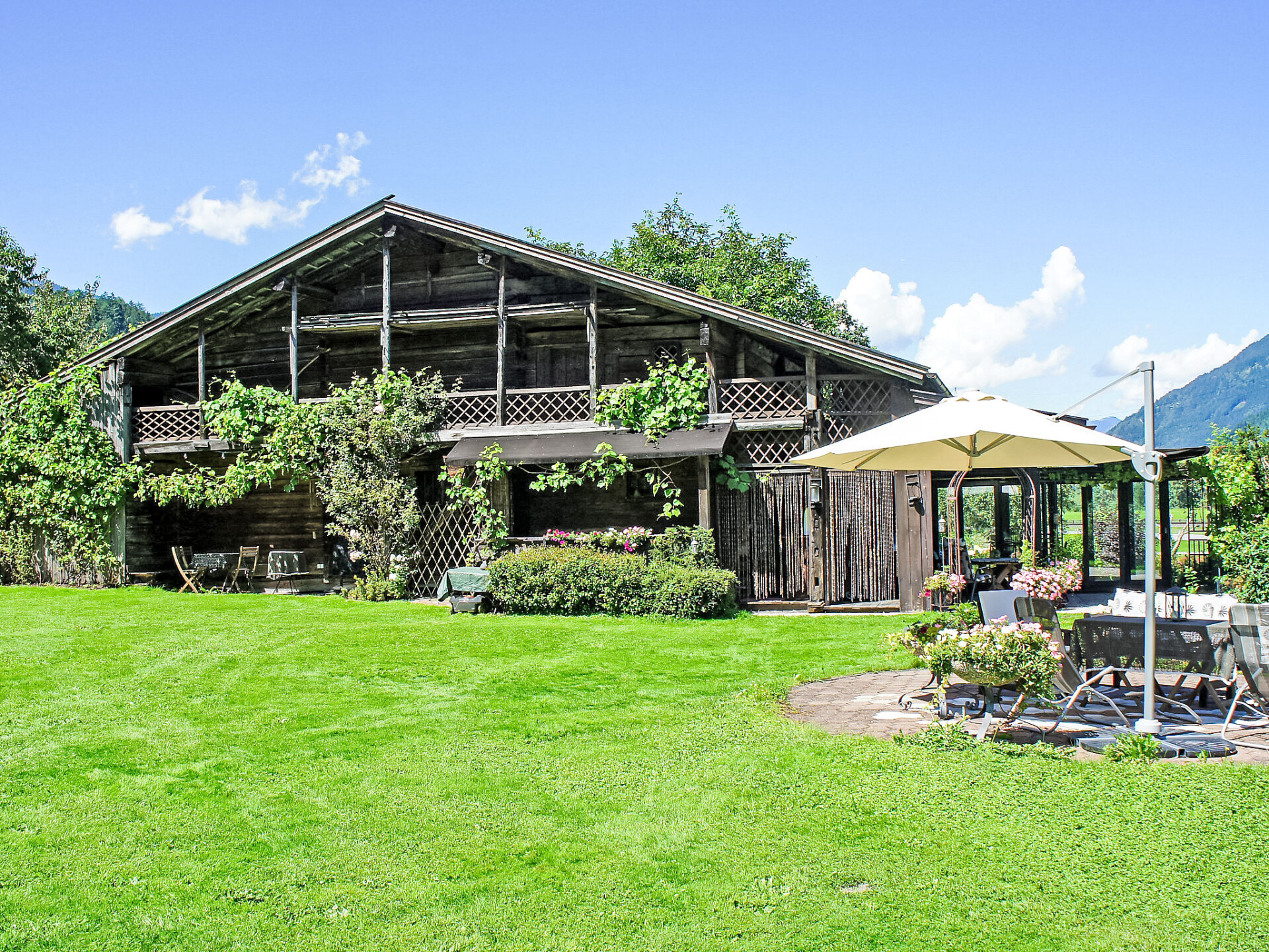 Appartement 3-kamers 75 m2 op de 2e verdieping. Comfortabel en gezellig ingericht: groot hal met dakraam. 1 kamer met 1 divanbed en 1 2-pers bed. Uitgang naar het balkon. 1 2-pers. kamer met aparte WC, douche en Sat-TV (Flatscreen TV). Uitgang naar het balkon. Woonkeuken (oven, afwasmachine, 4 keramische glas kookplaten, broodrooster, magnetron, diepvriezer) met eethoek en Sat-TV (Flatscreen TV). Uitgang naar het balkon. Douche/WC. Groot balkon, op het zuiden gelegen. Balkonmeubilair. Mooi uitzicht op de bergen, de tuin en het landschap. Ter beschikking: haardroger. Niet rokers woning.