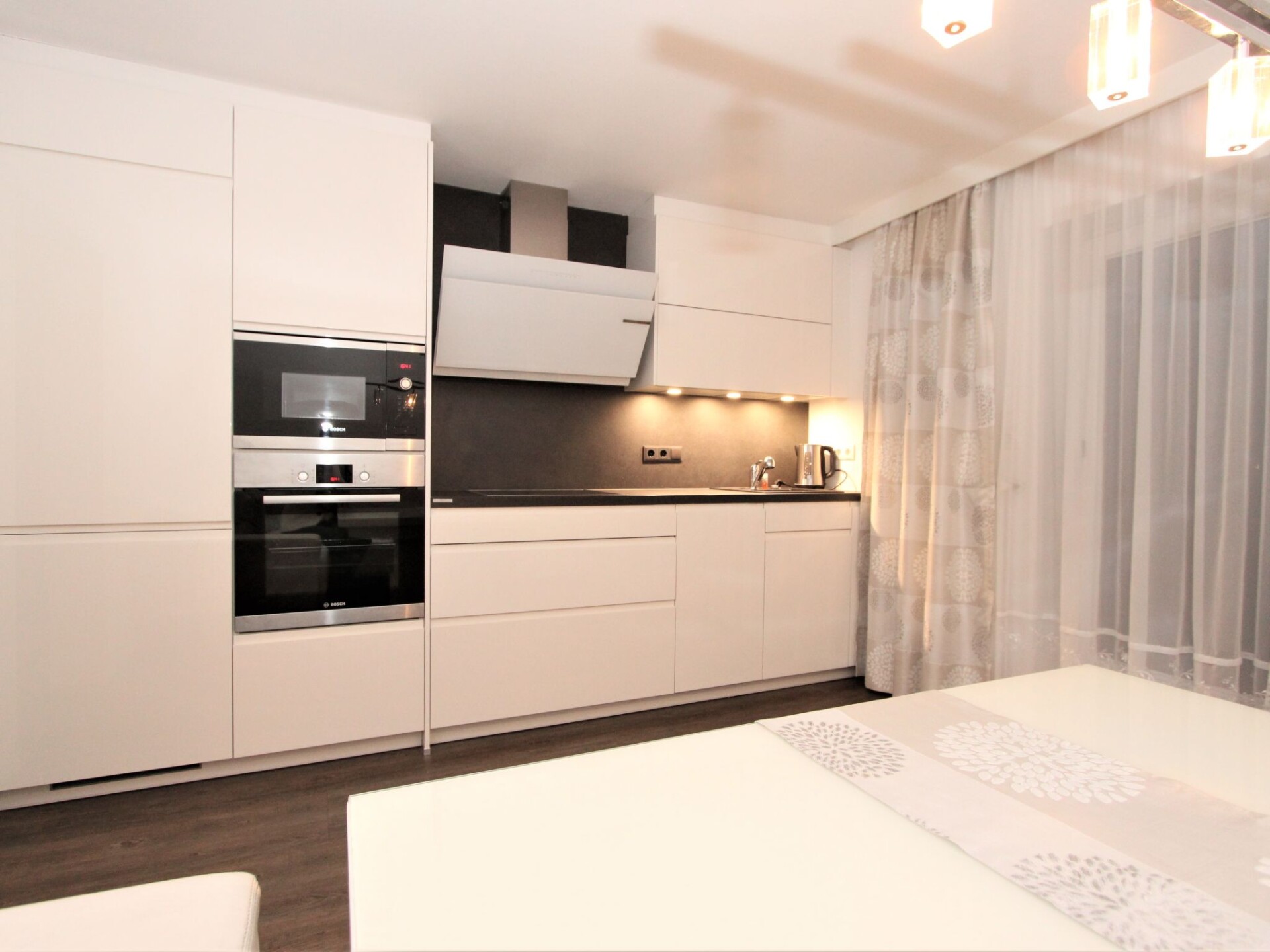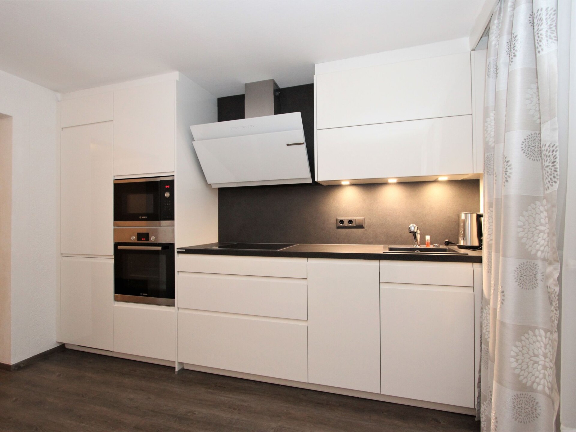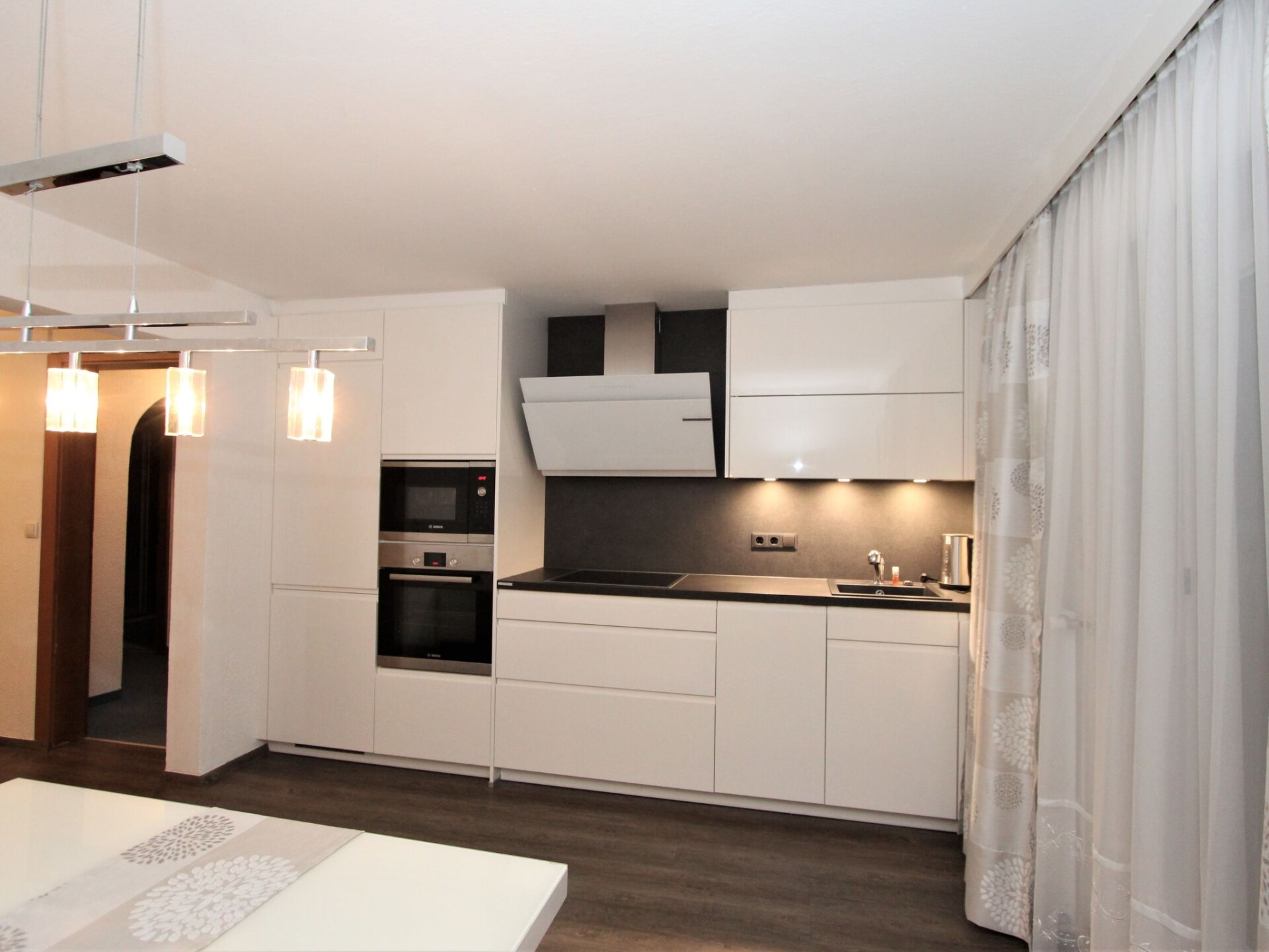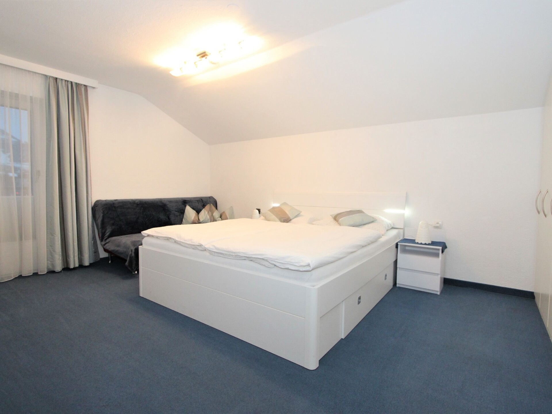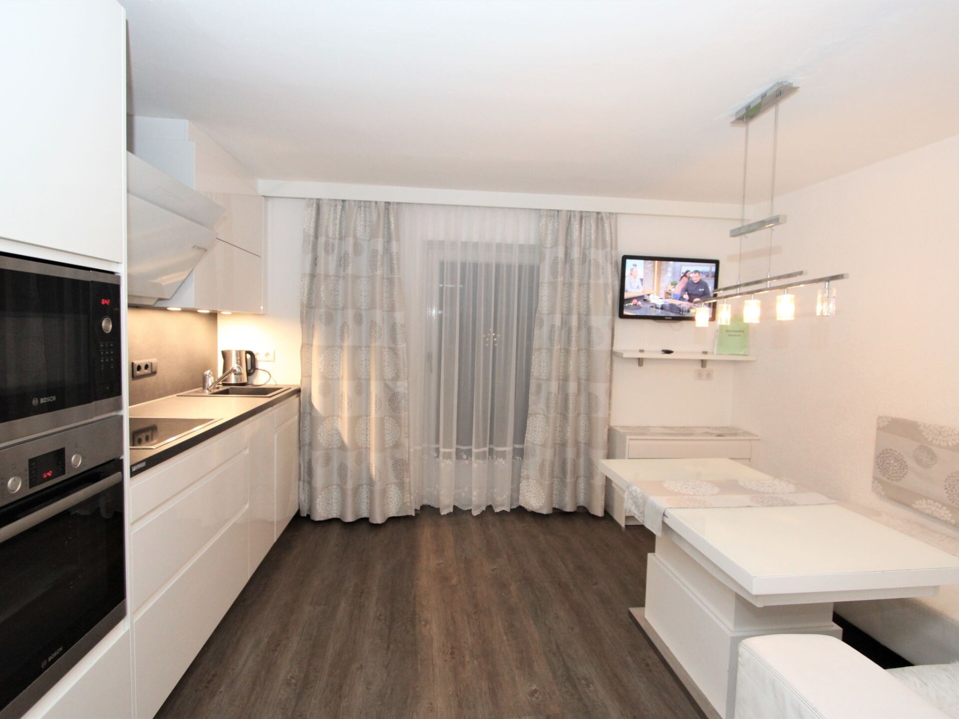 Appartement 3-kamers 75 m2 op de 2e verdieping. Comfortabel en gezellig ingericht: groot hal met dakraam. 1 kamer met 1 divanbed en 1 2-pers bed. Uitgang naar het balkon. 1 2-pers. kamer met aparte WC, douche en Sat-TV (Flatscreen TV). Uitgang naar het balkon. Woonkeuken (oven, afwasmachine, 4 keramische glas kookplaten, broodrooster, magnetron, diepvriezer) met eethoek en Sat-TV (Flatscreen TV). Uitgang naar het balkon. Douche/WC. Groot balkon, op het zuiden gelegen. Balkonmeubilair. Mooi uitzicht op de bergen, de tuin en het landschap. Ter beschikking: haardroger. Niet rokers woning.