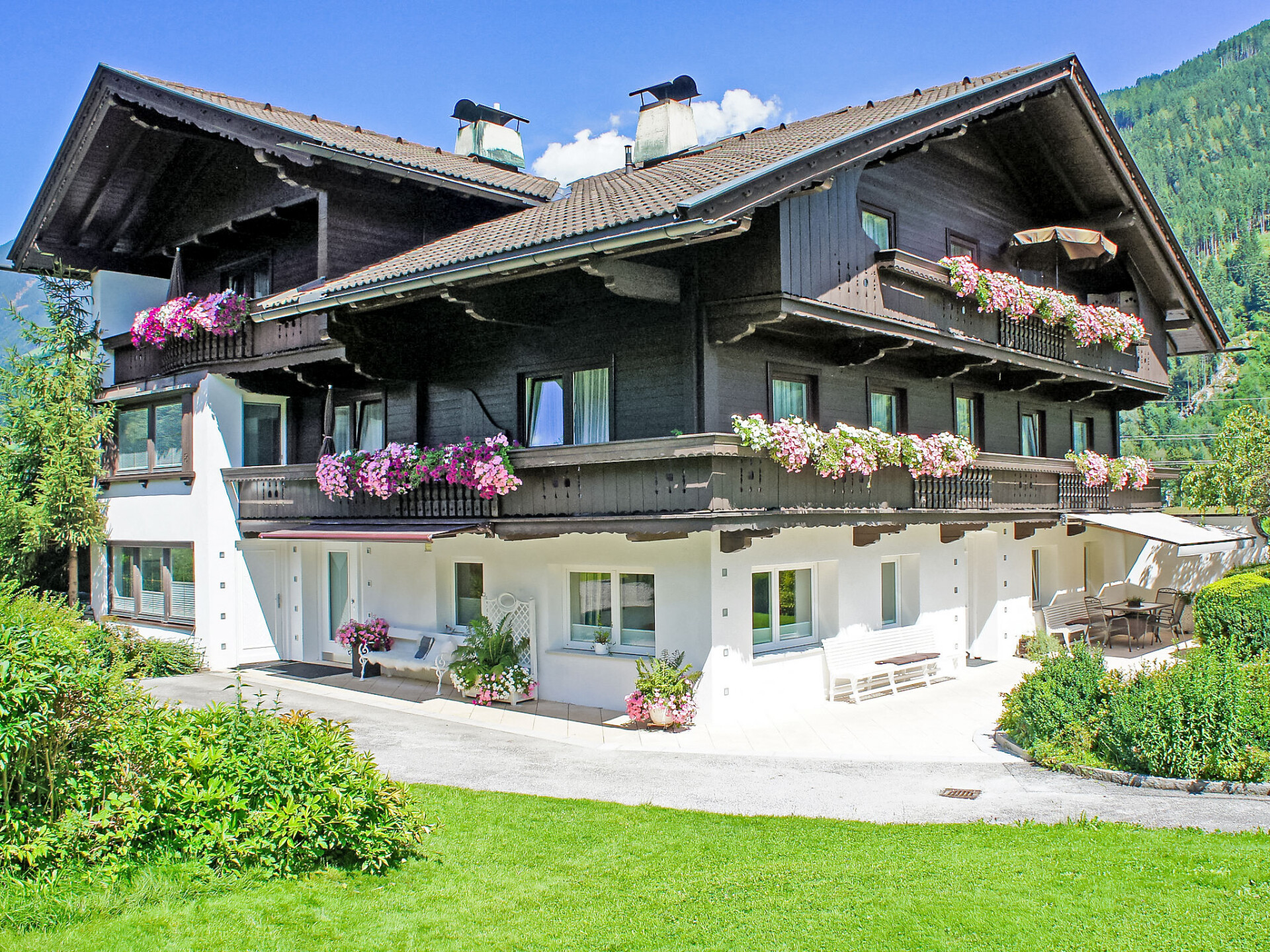 Aschau: Kindvriendelijk, comfortabel appartementencomplex "Appartements Binderhof". 500 m van het centrum van Aschau, 2.8 km van het centrum van Kaltenbach, zonnige ligging, 1.8 km van het meer, 800 m van het skigebied. Voor medegebruik: groot, mooie, verzorgde tuin 1.000 m2, ligweide. Buitendouche, patio, prieel, tuinmeubelen, kinderspeelplaats. In het huis: Internet (WiFi), trampoline, bergruimte voor fietsen, berging voor ski's, centrale verwarming, skischoendroger. Toegangsweg tot aan het huis. Parkeerplaats bij het huis. Levensmiddelenwinkel 500 m, restaurant 250 m, centrum te voet bereikbaar in 5 minuten, bushalte "Aschau i.Z. Bahnhof" 750 m, treinstation "Aschau i.Z. Bahnhof" 750 m, openluchtzwembad 1.8 km, overdekt zwembad 1.8 km, meer (zwemmen) 1.8 km. Golfterrein (18 holes) 8 km, fietspad 20 m, kabelbaan op 3.4 km, skipisten 800 m, skibushalte 20 m, rodelbaan 100 m, langlaufloipe 20 m. Bekende skigebieden kunnen gemakkelijk worden bereikt: Hochzillertal - Hochfügen 3.4 km, Zillertal Arena 4.2 km. Gratis skibus.