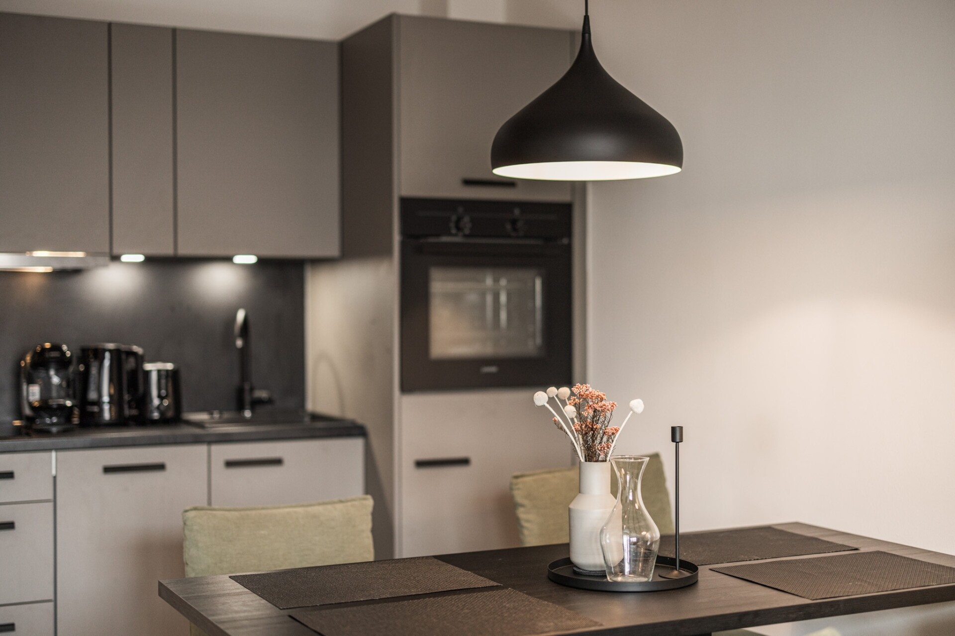 Binnen combineert het appartement modern design met comfort van het hoogste niveau. De lichte woonkamer, met een uitnodigende tweepersoonsslaapbank, flatscreen-tv en eetgedeelte, loopt over in een strakke open keuken die van alle gemakken is voorzien, van een koffiezetapparaat en sapcentrifuge tot een vaatwasser en oven, perfect voor het bereiden van stevige maaltijden na een avontuur. De serene slaapkamer met een comfortabel tweepersoonsbed en een tweede tv belooft rustgevende nachten, terwijl de moderne badkamer met douche en föhn voor comfort zorgt na een actieve dag in de buitenlucht.