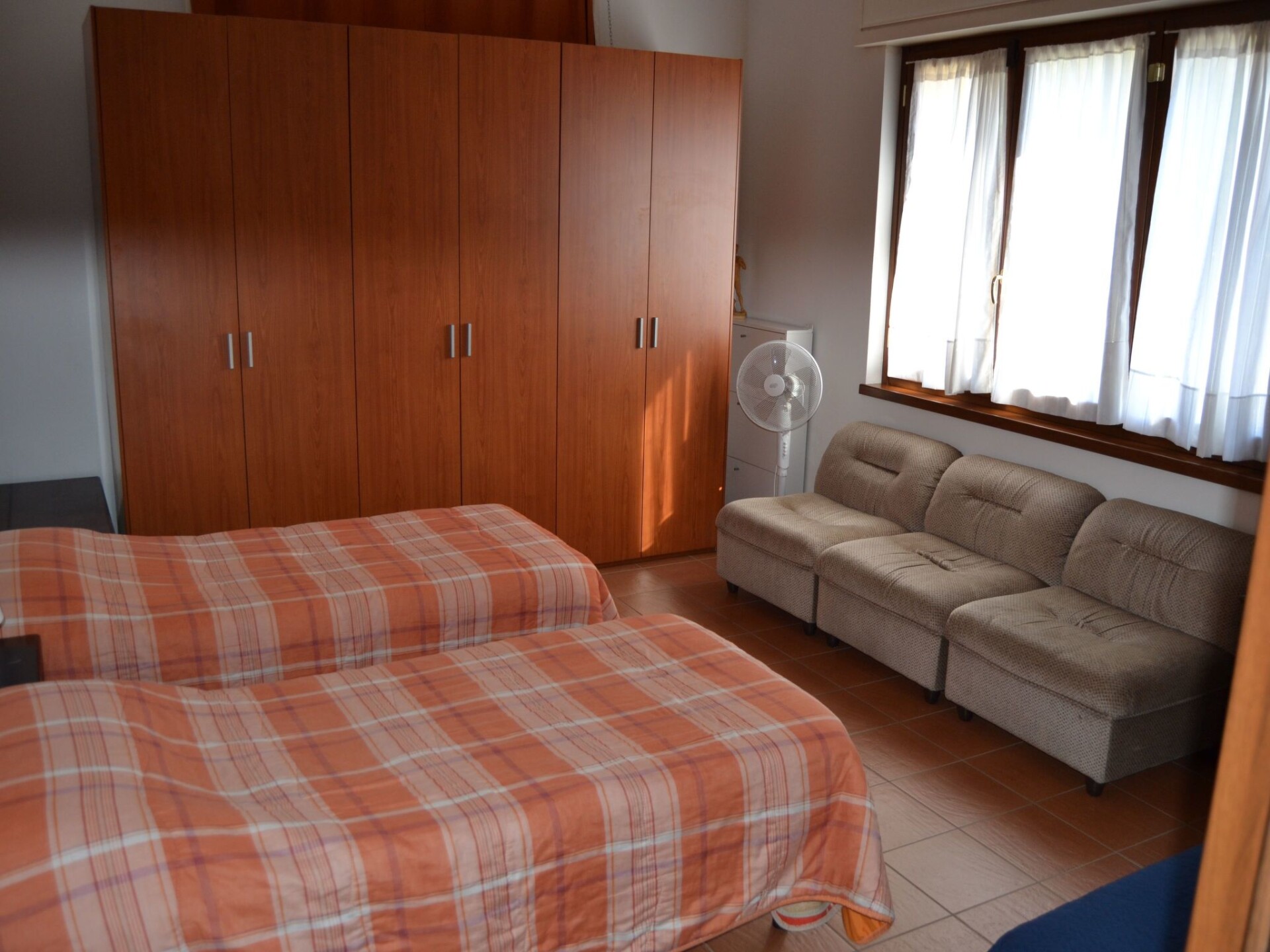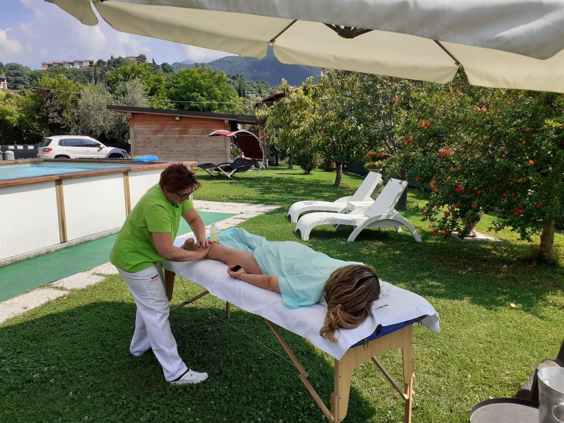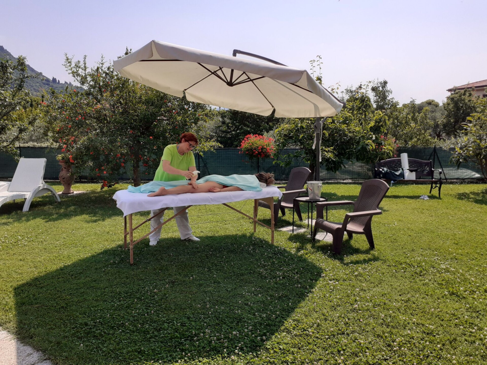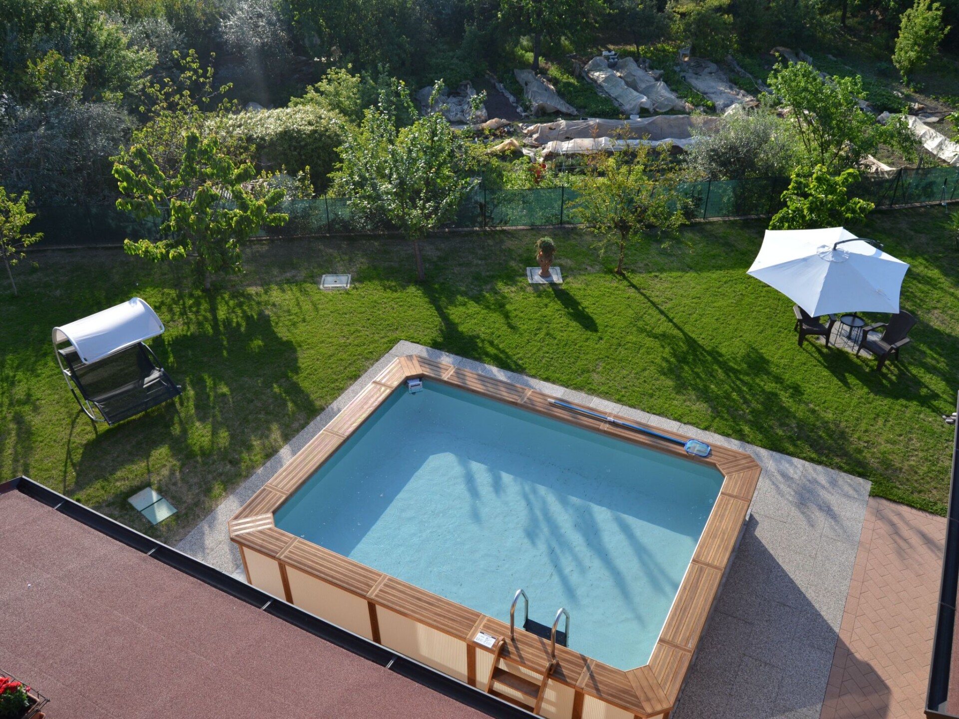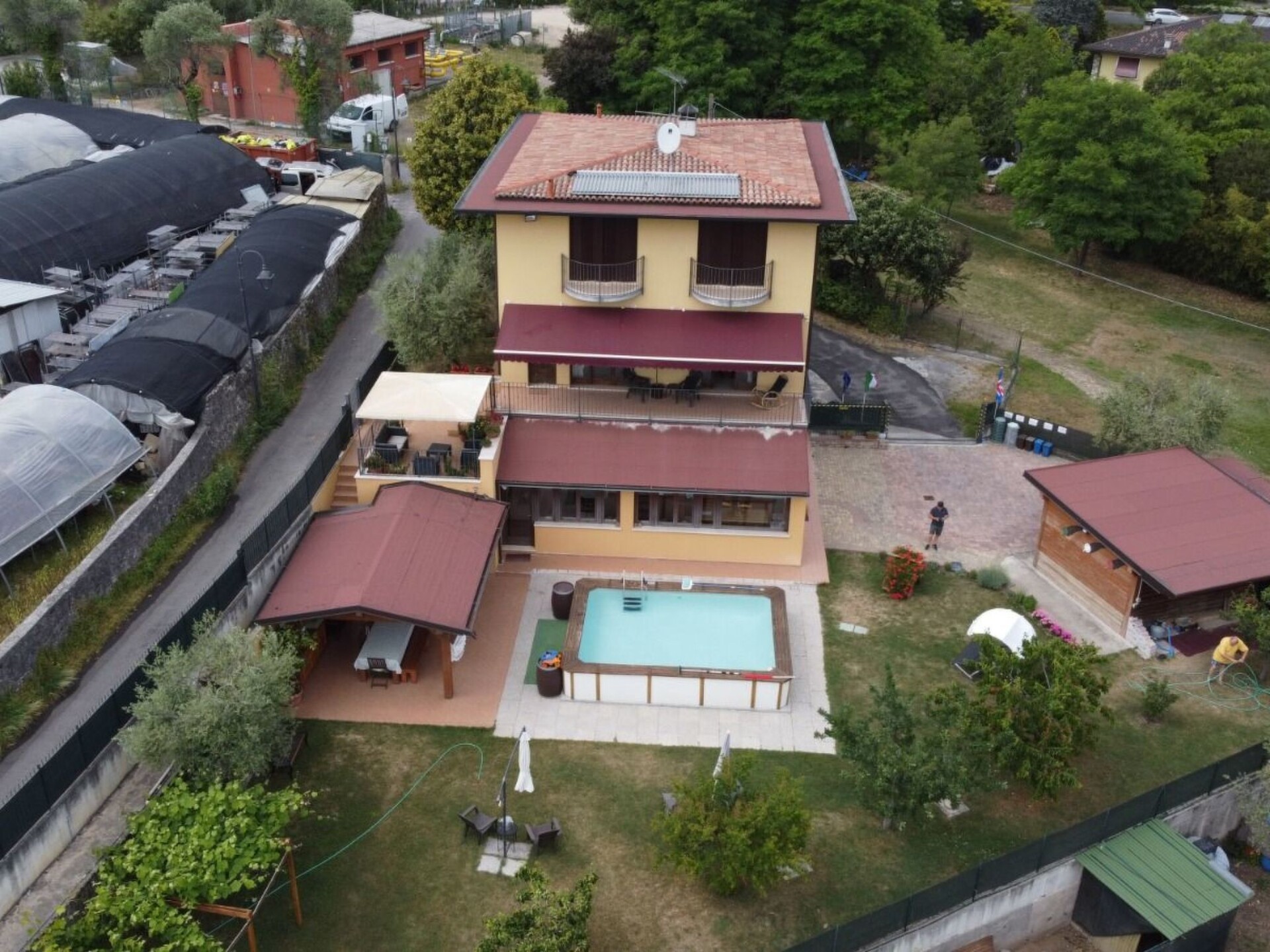 Villa La Veranda - holiday flat in Salò - Lake Garda Villa La Veranda is located in the panoramic area of Salò; it has two floors with a large garden with lawn and fruit trees. Your holiday flat is situated on the ground floor and covers an area of more than 120 square metres, with a large veranda. Outside there is a large garden of 600 square metres, a large swimming pool, a porch with a large 3-metre table and a gas BBQ and a private parking space.Outside you can enjoy a large swimming pool, a large garden of approx. 600 square metres, entirely lawned and a dozen or so fruit trees, including cherries, peaches, pears, apples and plums. A large tiled and covered 4x4 m porch is at your disposal with a large 4 m table with benches and chairs for more than 12 persons. A modern gas BBQ is at the flat's disposal. A large laundry room, which includes a sink and washing machine, can be used on request.SANITIZATION with OZONE (MD5 Motor Data). The flat covers an area of more than 120 square metres and includes: a large swimming pool, a large living veranda, a 20 square metre kitchen, a double bedroom with a large bed, a bathroom with shower, a large children's room of almost 30 square metres with three single beds and the possibility of adding a fourth extra bed. It also has a cot for small children that can be accommodated in the double bedroom and in the second bedroom. The flat is entirely on the ground floor, with no architectural barriers, only one step to the entrance and has underfloor heating throughout. The large kitchen is equipped with a refrigerator and freezer, a gas cooker and an electric oven, as well as a microwave oven and a water boiler. it includes everything you need for cooking and dining, such as plates, glasses, cutlery, crockery, pots, pans, cups and tablecloths. it has a large table with chairs for 8 people and antique furniture-credentials. Bed linen and towels are provided in the flat. In the large veranda of approx. 40 square metres there are sofas for 10 persons, a table with rustic bench where 8 persons can sit and eat comfortably, a large 42" flat screen HD television complete with satellite decoder to pick up TV from various satellites including Astra and Hotbird. Internet is available free of charge with ADSL Wi-Fi throughout the area.In the immediate vicinity you can find the sports area, with football, five-a-side football and tennis courts, and a large public indoor and outdoor swimming pool, open all year round. The public beach at the lake is only 800 metres away and can be used without payment. A large golf course is available in the surrounding area for golf enthusiasts, as well as numerous other beaches and tourist facilities. From the house there is easy access to a promenade of over 4 km on foot, which encircles the entire panorama route, and another, at the edge of the lake, of over 2 km.La Veranda is approx. 30 m from the main road, away from the hustle and bustle of traffic and the access road continues traffic-free through the village of Campoverde, to the centre of Salò, with no traffic problems and entirely walkable without the hassle of having to cross car traffic roads and easily reach the lake and the nearby sports centre. IT017170C277A97JEL