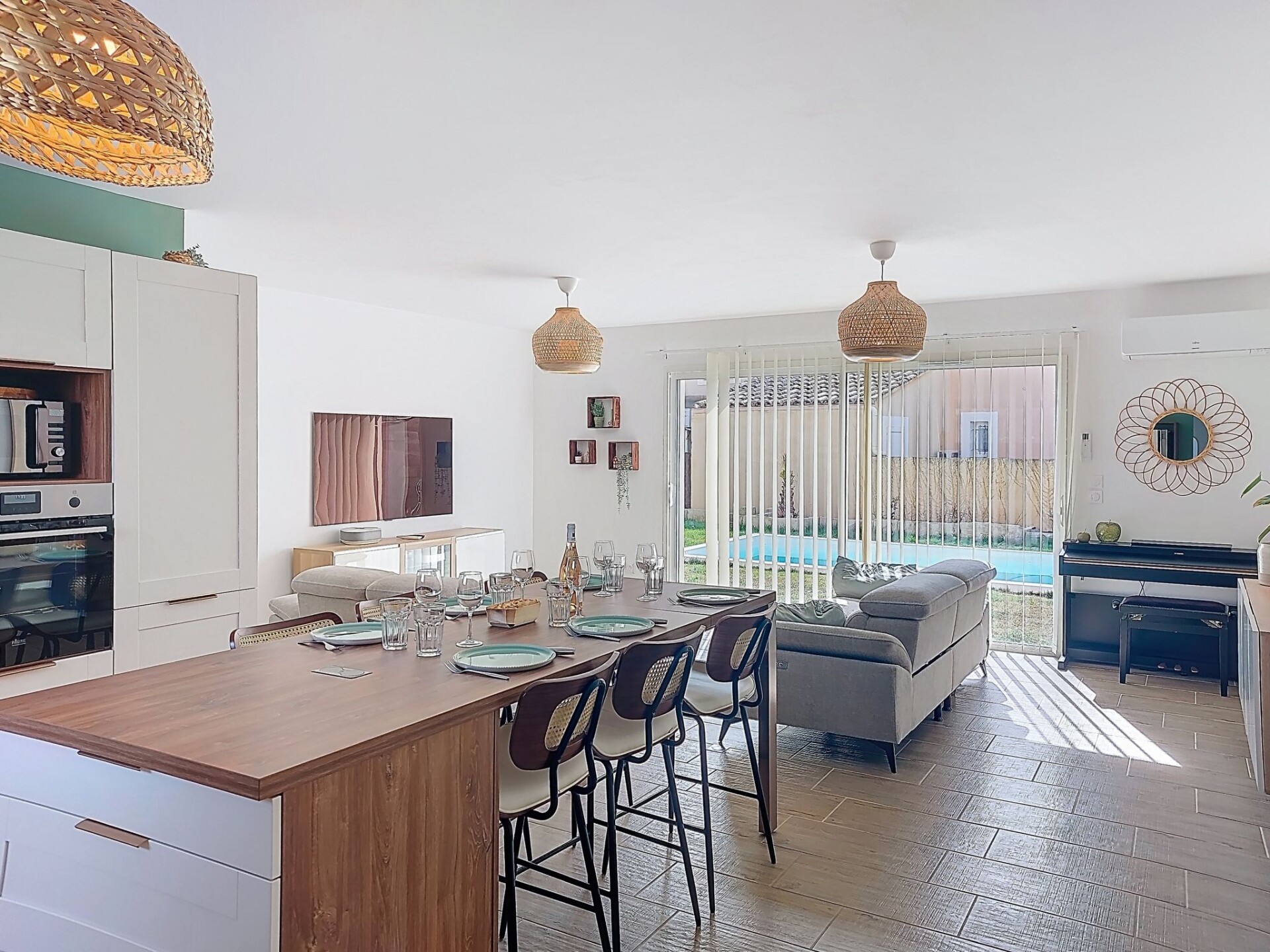 "AQUI SIAN BEN", villa 4-kamers 120 m2. Comfortabel en modern ingericht: groot woon-/eetkamer met TV (Flatscreen TV), air-conditioning. Uitgang naar het terras. 1 kamer met 1 2-pers bed (160 cm, lengte 200 cm), aparte WC, douche, dubbele wastafels en TV (Flatscreen TV), air-conditioning. Uitgang naar het terras. 1 kamer met 1 uitschuifbaar bed (2 pers. 2 x 80 cm, lengte 190 cm). 1 kamer met 1 2-pers bed (140 cm, lengte 190 cm). Open keuken (oven, afwasmachine, 5 inductiekookplaten, broodrooster, waterkoker, magnetron, diepvriezer, elektrische koffiemachine, kookeiland) met eettafel. Badkamer, aparte WC, dubbele wastafels. Elektrische verwarming. Terras 40 m2, op het zuiden gelegen. Terrasmeubelen, barbecue, ligstoelen (6). Ter beschikking: wasmachine, strijkijzer, kinderbed tot 3 jaar, haardroger. Internet (WiFi, gratis). Rookvrij huis. Maximaal 1 huisdier/hond toegestaan. Het zwembad genoemd in de beschrijving is voor privé gebruik. Aanbod door een particulier volgens art. 155, IV van CGI. 840540011307T