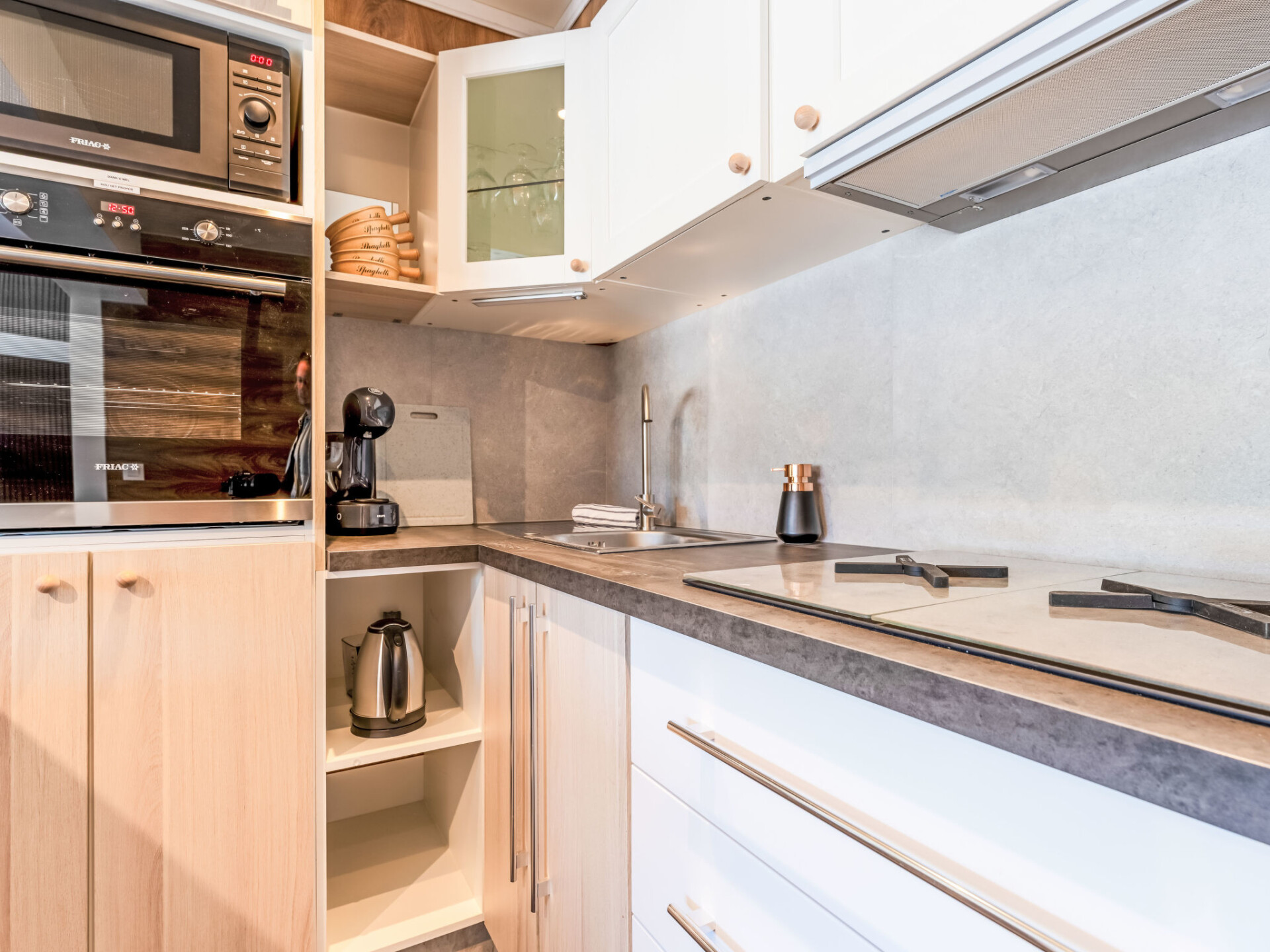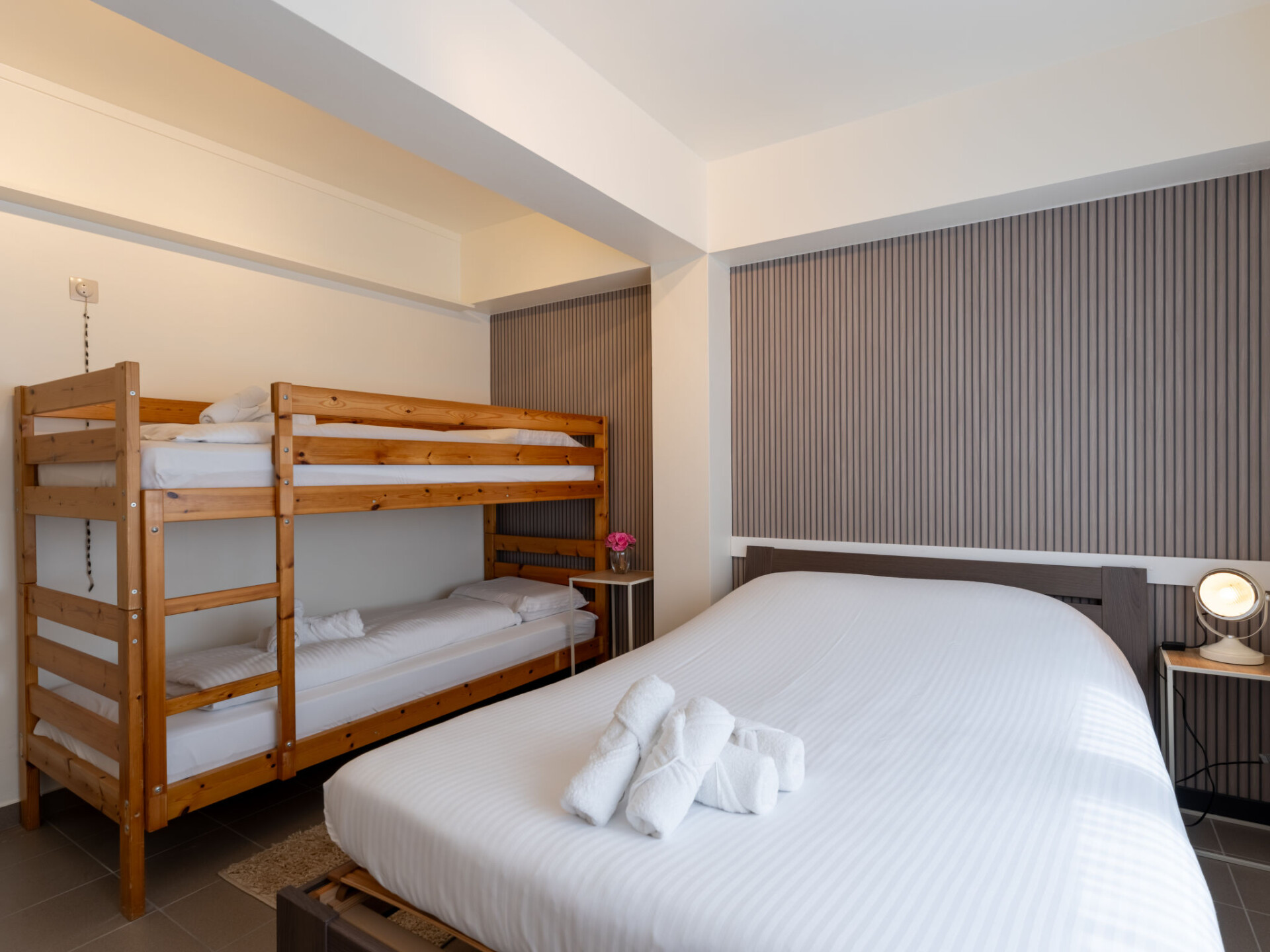"Arcona", appartement 2-kamers op de 2e verdieping. Comfortabel en modern ingericht: hal. Open woon-/eetkamer met eettafel, Digitale TV en internationale TV-zenders. 1 2-pers. kamer met 1 x 2 stapelbedden (90 cm, lengte 200 cm), 1 2-pers bed (160 cm, lengte 200 cm). Open keuken (4-pits kookplaat, oven, broodrooster, waterkoker, magnetron, elektrische koffiemachine). Douche/WC. Verwarming. Ter beschikking: haardroger. Internet (WiFi, gratis). Rookvrij huis. Rookmelders, brandblusser, geen lift. LD411941