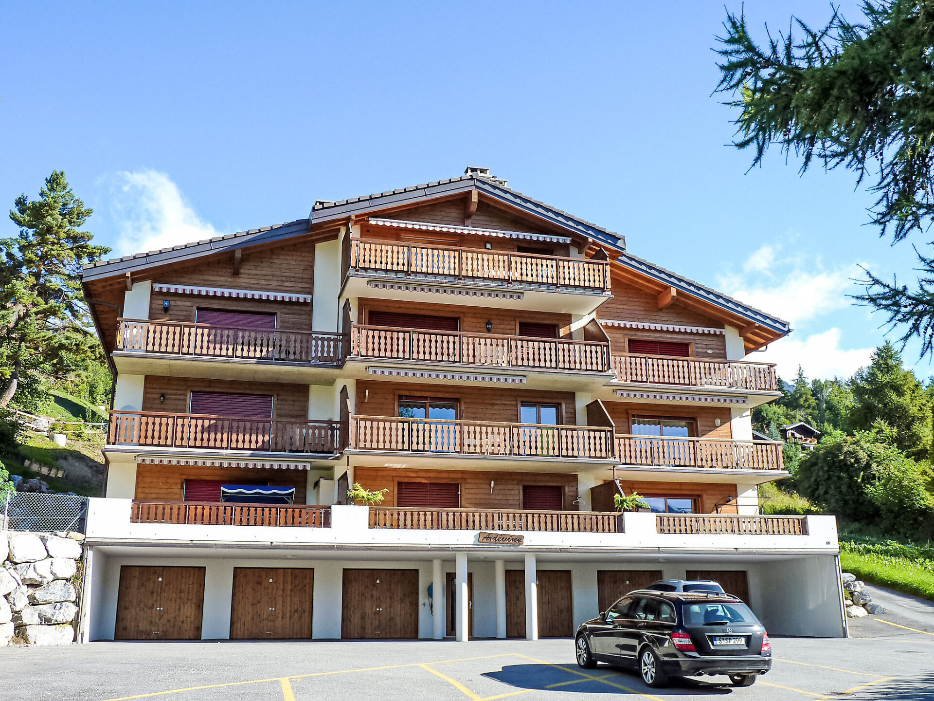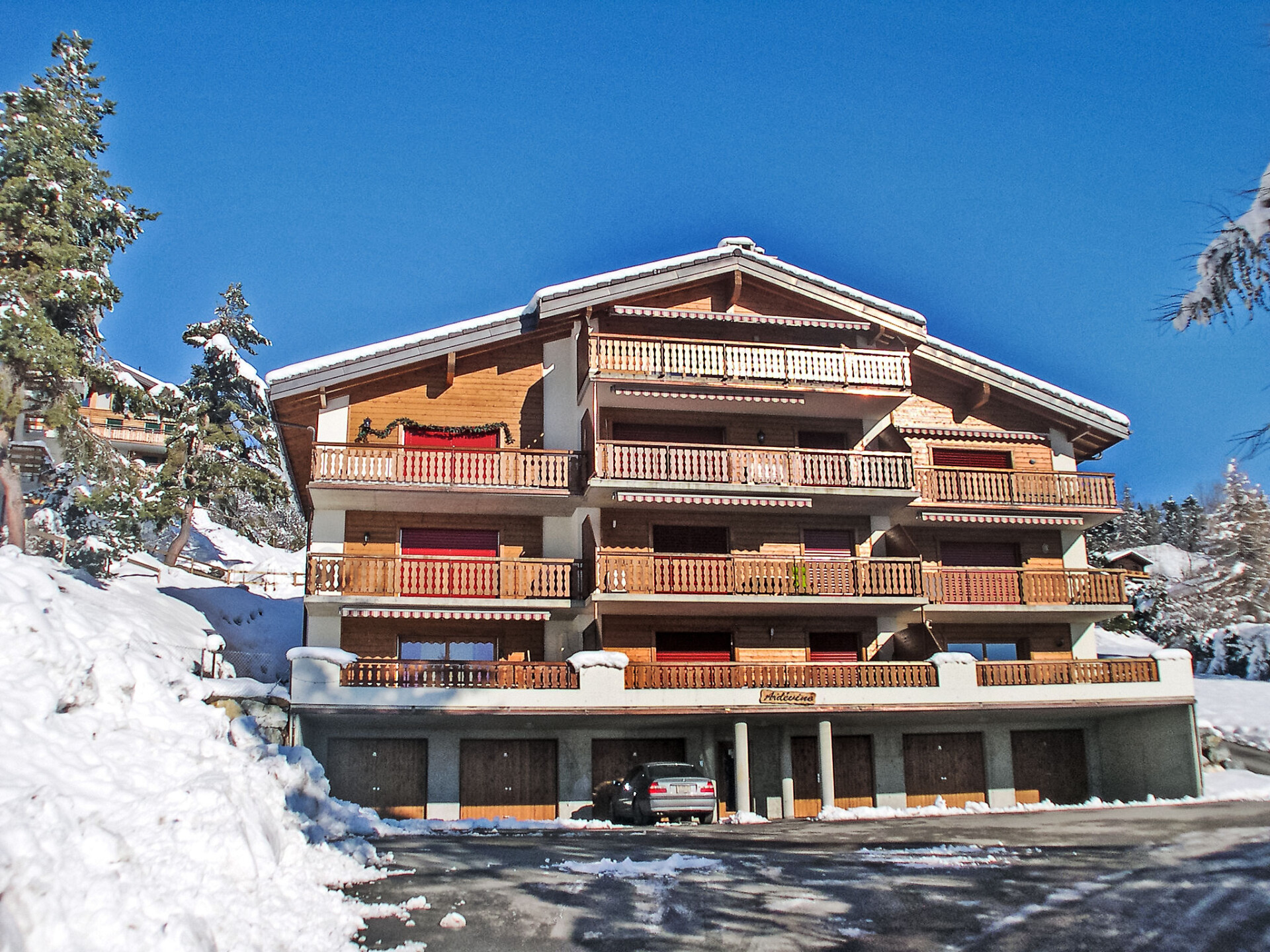 Moderne, gezellig flatgebouw "Ardevine 5", van 3 verdiepingen. In de wijk Pont de Pierre, 1 km van het centrum, rustige, zonnige ligging, 2.2 km van het skigebied, aan een doodlopende weg, op het zuiden. In het huis: lift, berging voor ski's, centrale verwarming, wasmachine, droger (voor medegebruik, extra), droogruimte. Toegangsweg tot aan het huis. Levensmiddelenwinkel 1.4 km, restaurant 500 m, bar 500 m, bakkerij 1.4 km, café, bushalte "Morthey, Pont-de-Pierre" 300 m, thermaalbad. Golfterrein (18 holes) 24 km, tennis 2 km, skiverhuur 1.5 km, skibushalte 400 m, skischool 1.5 km, langlaufloipe 2.7 km. Gratis skibus. Gratis skibus naar het skigebied d'Ovronnaz.