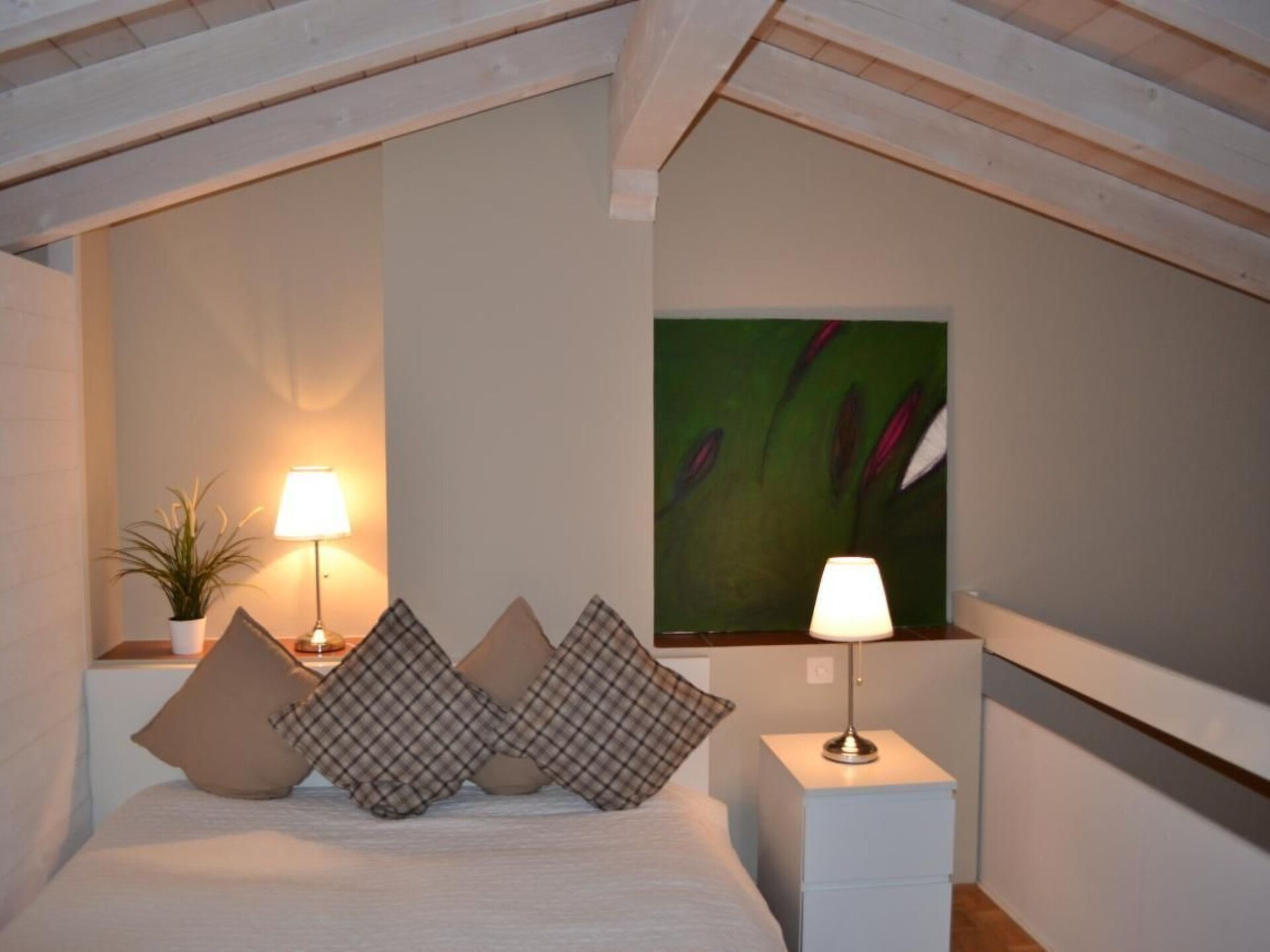 Tourist tax included!!!The charming and lovingly furnished attic maisonette flat (over 2 floors) for max. 4 persons (2 adults + 2 children/teenagers) is located in the centre (old town) of Ascona in the pedestrian zone. The location is fantastic - on the one hand quiet, and yet centrally located. The apartment building with rows of shops on the ground floor is located on Via Borgo, in the immediate vicinity of numerous boutiques, restaurants, cafés, galleries etc.. The beautiful lakeside promenade is just a few minutes away. Despite its central location, the flat is very quiet and idyllic. The exceptional ceiling height, the light-coloured furnishings and the exposed beams lend the flat additional flair and a southern ambience. Once you arrive, you immediately feel at home - let your holiday begin. Whether you are looking for peace and relaxation or something to do - Ascona offers a wide range of activities to suit all needs. Find out about current events, excursions and places of interest on the Ascona homepage. ASONITA offers a modern and charmingly furnished living and dining area with open-plan kitchen and breakfast bar. The living room has a cosy sofa set and a large dining table. (Internet) TV (Zattoo) with DVD player, a stereo system with CD/USB, various DVDs and board games are available to our guests. The bathroom is also on this level. From the balustrade of the living room and from the small but nice balcony you can enjoy the view of the green surroundings. The staircase leads to the two separate sleeping areas in the open gallery (= no separate bedroom, open to the living area). There is a double bed and two single beds for use in the sloping and separate rear area (lower room height). A second TV for DVD (without TV reception, with games console) is available here. The holiday flat is not suitable for small children and is only rented to adults or families with children aged 5 and over. We offer a guest WLAN in the holiday flat. Netflix is installed on the TV, but requires a separate account.Other sports and leisure facilities:Mini golfBoat hire18-hole golf course directly on Lake MaggioreHikingPlaygroundpublic lido, LidoExcursion possibilities:Boat tripsby bus from Ascona, by train from LocarnoLocarno, Bellinzona, Brissago Islands, Ronco and towns/villages in the surrounding areaMonte VeritàArcegnoMaggia ValleyCentovalliItalyMarkets (Luino - CH, Cannobio - Italy)Museums, exhibitions, numerous events and showsMoon&Stars Festival LocarnoLocarno Film FestivalShopping outlet MendrisioOther bedroom furnishings (bedroom 1):Size double bed: 160x200cm (1 fitted sheet)Mattress protectorDouble bed: 2 duvets à 150x200cmDouble bed: 2 pillows à 50x60cmSingle bed 80x200cm: 150x200cm duvets, 50x60cm pillows, fitted sheetthe two sleeping areas in the gallery are visually separated (see detailed pictures)Sports facilities in the area: golf course, mountain biking, cycling tours, rowing, surfing, diving, tennis, sailingLocation description:"Pearl on Lake Maggiore"Exclusive tourist destination with an extraordinary past, characterised by history, art and culturepicturesque and charminghistoric village centremild climateVenue for numerous events and showsformer home of revolutionaries, philosophers and internationally renowned writers, poets and paintersWorth a visit at any time of year - especially in the low season. NL-00004741
