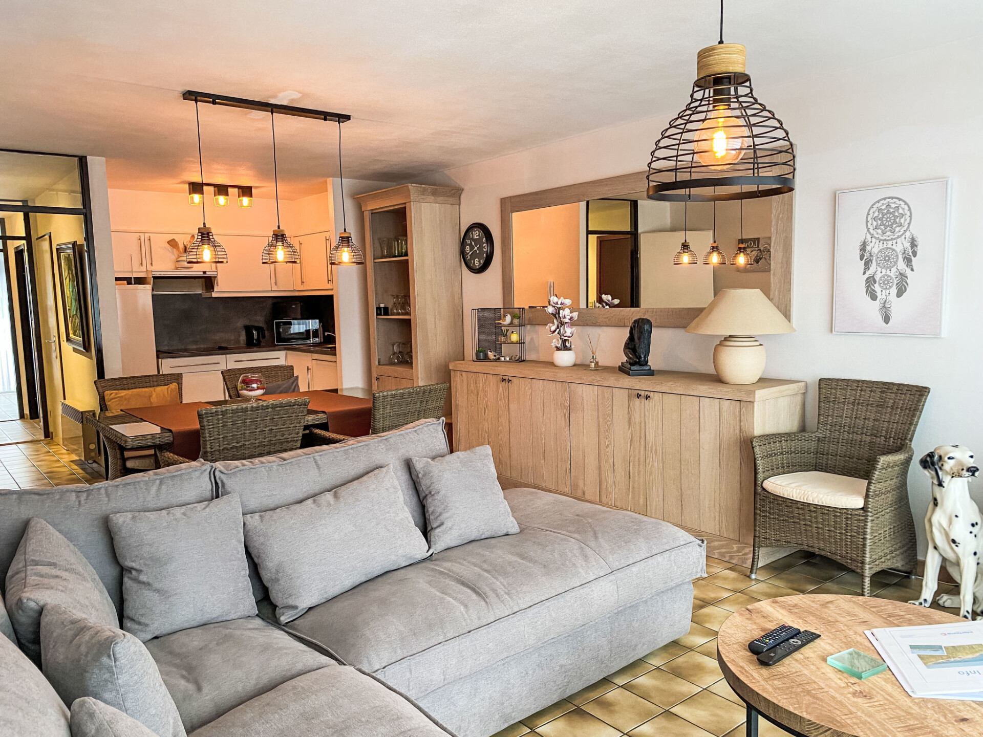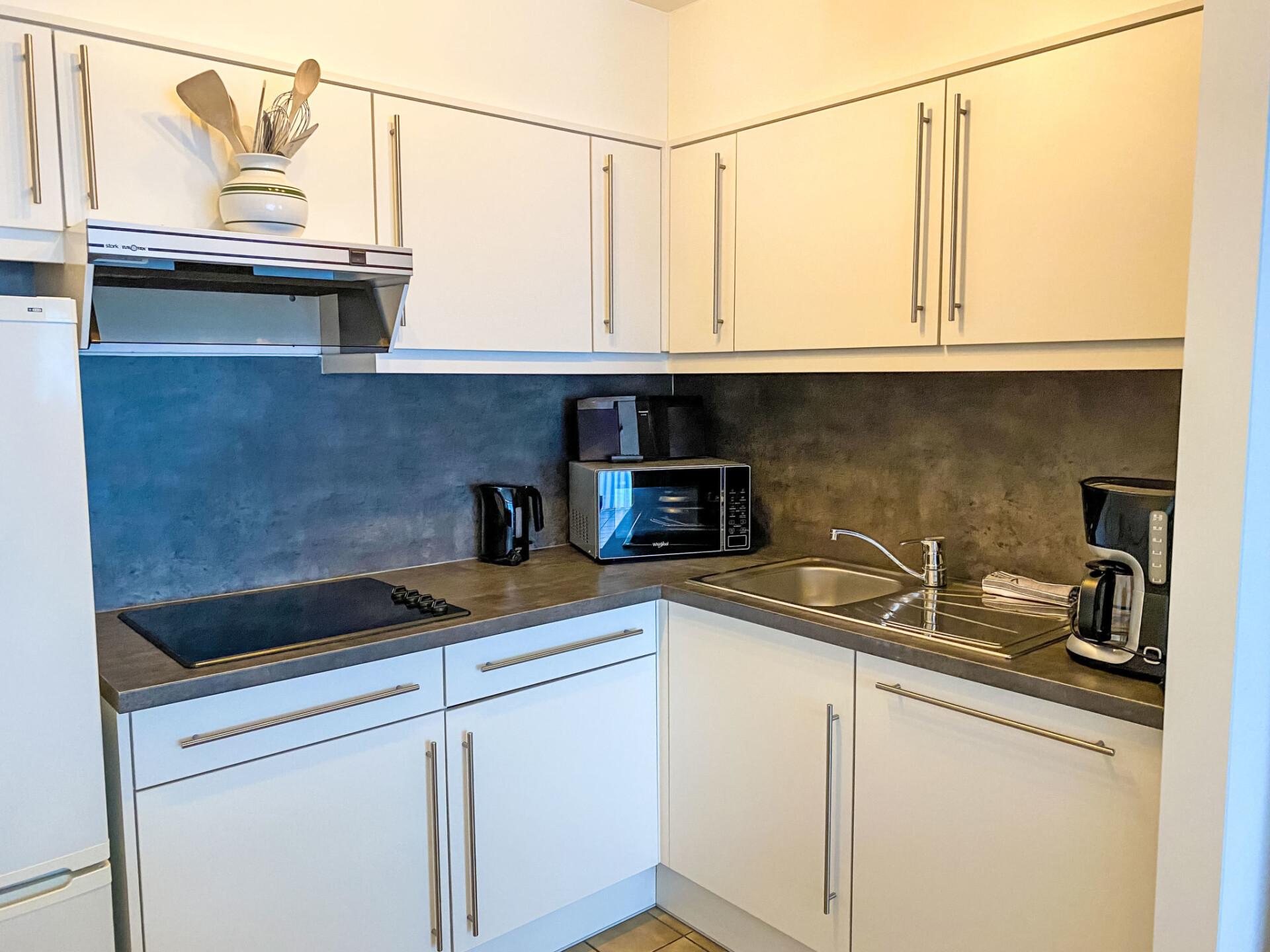 "Astrid 103 with balcony", appartement 2-kamers 60 m2 op de 1e verdieping. Het objekt is geschikt voor 2 volwassenen + 2 kinderen. Doelmatig ingericht: hal met aparte WC en elektrische verwarming. Woon-/eetkamer met eettafel, TV, internationale TV-zenders, Flatscreen TV, radio, CD-speler en DVD. 1 kamer met 1 x 2 stapelbedden (90 cm, lengte 200 cm), 1 2-pers bed (140 cm, lengte 200 cm). Open keuken (afwasmachine, 4 keramische glas kookplaten, broodrooster, waterkoker, magnetron, elektrische koffiemachine). Douche. Verwarming. 2 balkons 3 m2, op het zuidwesten gelegen en op het noordoosten gelegen. Balkonmeubilair. Ter beschikking: Internet (WiFi, gratis). Maximaal 1 huisdier/hond toegestaan. LD382881