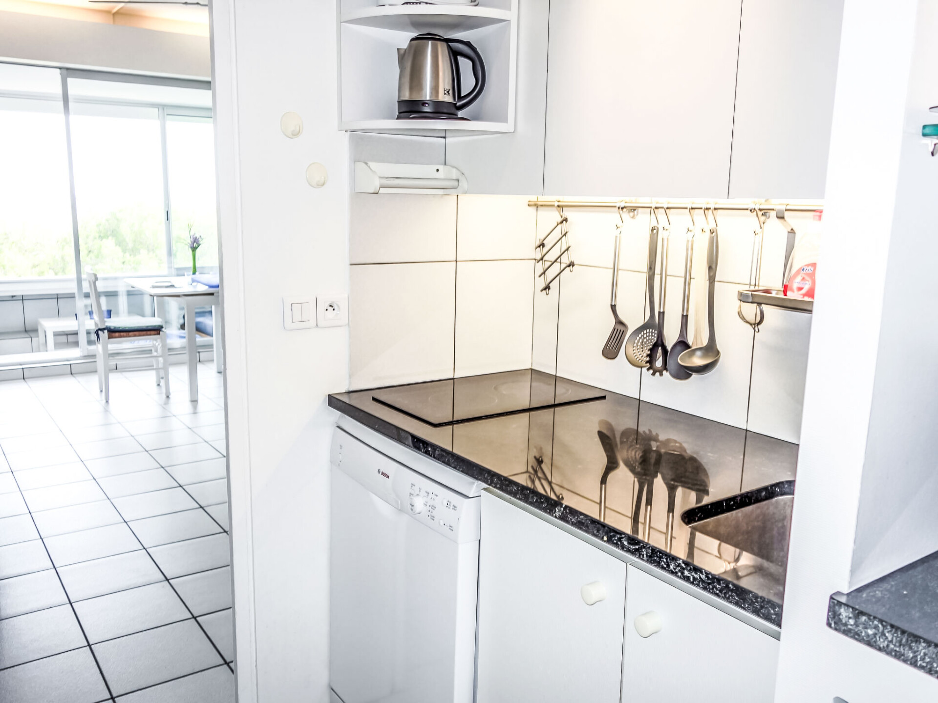 Appartement 1-kamer 28 m2 op de 3e verdieping, op het oosten gelegen. Mooi ingericht: woon-/eetkamer met panoramavenster met 1 2-pers divanbed (160 cm, lengte 200 cm), TV (Flatscreen TV), stereo-installatie. Uitgang naar het terras. Keuken in de hal (afwasmachine, 2 keramische glas kookplaten, broodrooster, waterkoker, magnetron, diepvriezer, elektrische koffiemachine, pads voor de koffiemachine (Nespresso) extra). Douche/WC. Elektrische verwarming, air-conditioning. Terras 8 m2, overdekt, op het oosten gelegen. Mooi uitzicht in de verte op zee en het landschap. Ter beschikking: wasmachine, droger, strijkijzer. Internet (Internet (WiFi), gratis). TV alleen FR. Rookmelders. Loggia van 8 m², gesloten door een glazen raam. U kunt gratis parkeren op slechts 100 meter van het appartement in de residentie. 83009001288AS