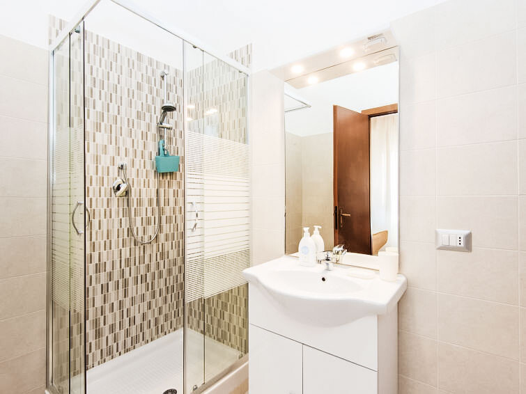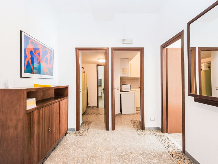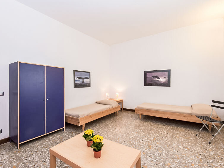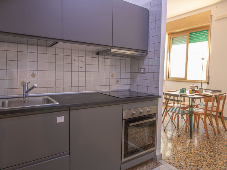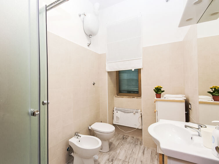 Appartement 3-kamers 90 m2, op verhoogde begane grond. Ruim, gedeeltelijk gerenoveerd in 2020, doelmatig ingericht: groot hal. Woon-/eetkamer met 1 2-pers divanbed, Digitale TV en Flatscreen TV. 1 2-pers. kamer. 1 kamer met 2 bedden en 1 divanbed. Kookhoek (oven, afwasmachine, 4 inductiekookplaten, magnetron, diepvriezer). 2 douche/bidet/WC's. Elektrische verwarming, air-conditioning. Ter beschikking: wasmachine, kluis, strijkijzer, haardroger. Internet (WiFi, gratis). Niet rokers woning. Maximaal 1 klein huisdier/hond toegestaan. IT058091C2SJRK8PR8