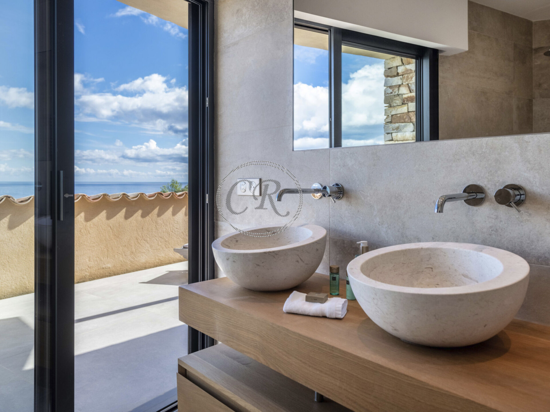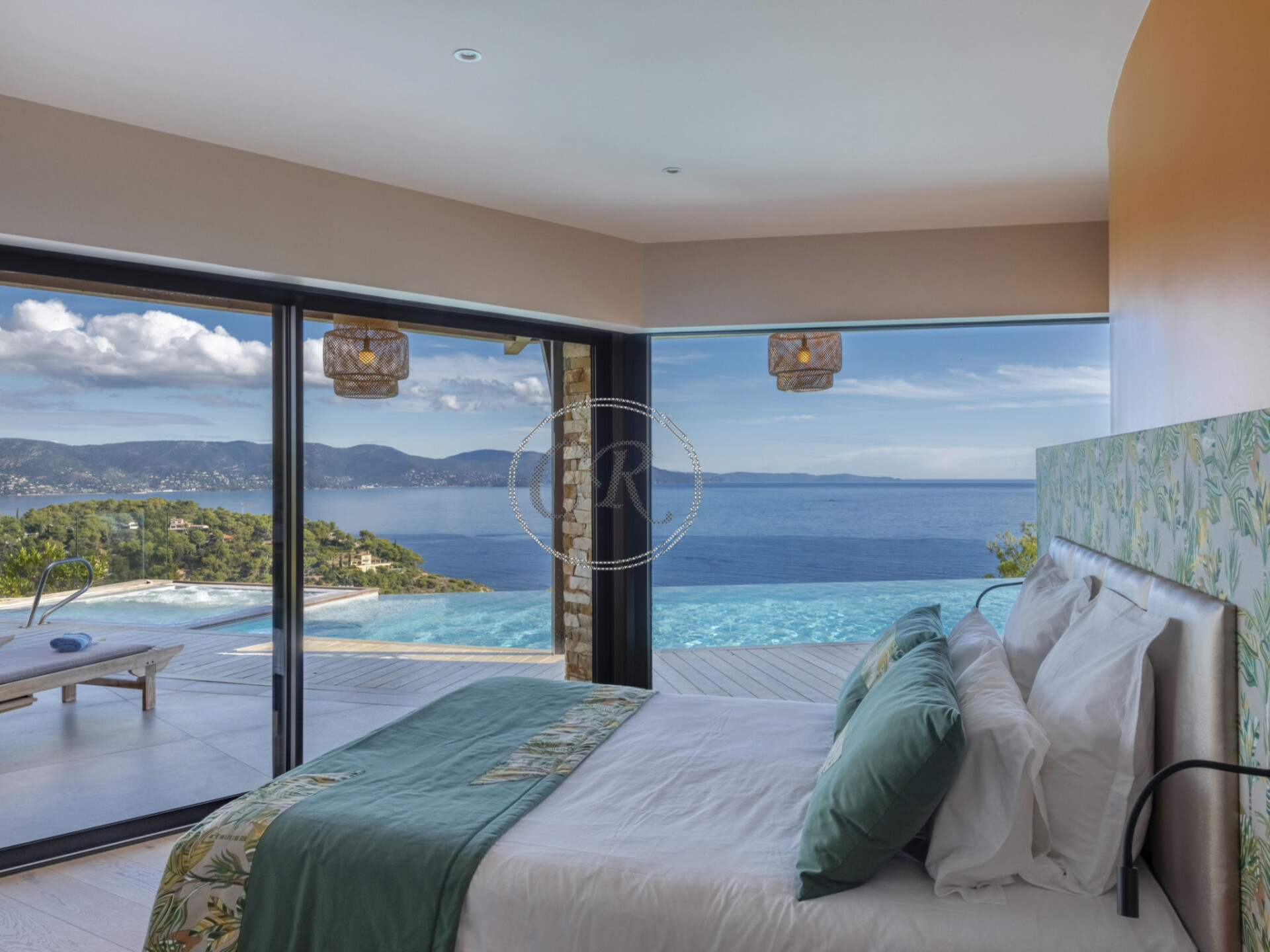 Exceptional villa in Cap Bénat. Immerse yourself in a world of contrasts: It can accommodate 10 adults and 4 children in 6 bedrooms, including 1 suite.All the bedrooms have a sea view.On the terrace, there's a heated infinity pool, a jacuzzi and a summer kitchen.In the garden, on a 3100 m² plot, you'll find a petanque court.Villa CAPMACHA blends perfectly into the lush natural surroundings, between sea and sky, with its contemporary decor and exceptional panoramic views, offering top-of-the-range service and luxury amenities.Decorated with the utmost care and attention to detail, the 280 m² villa is spread over two levels, served by a lift.Villa CAPMACHA is located in a secure, guarded estate with tennis court, mini-market, private beach, club house (restaurant), sailing school and private harbour.the seafront offers all kinds of water sports activities: jet skiing, boat hire, parasailing, scuba diving, water skiing, and the chance to discover the Golden Isles.For your evenings, there's the night market and many night-time activities in Le Lavandou and Bormes les Mimosas, while inland you can enjoy magnificent walks and cycle rides, and our team will be delighted to give you all the information you need! 830190003029Q