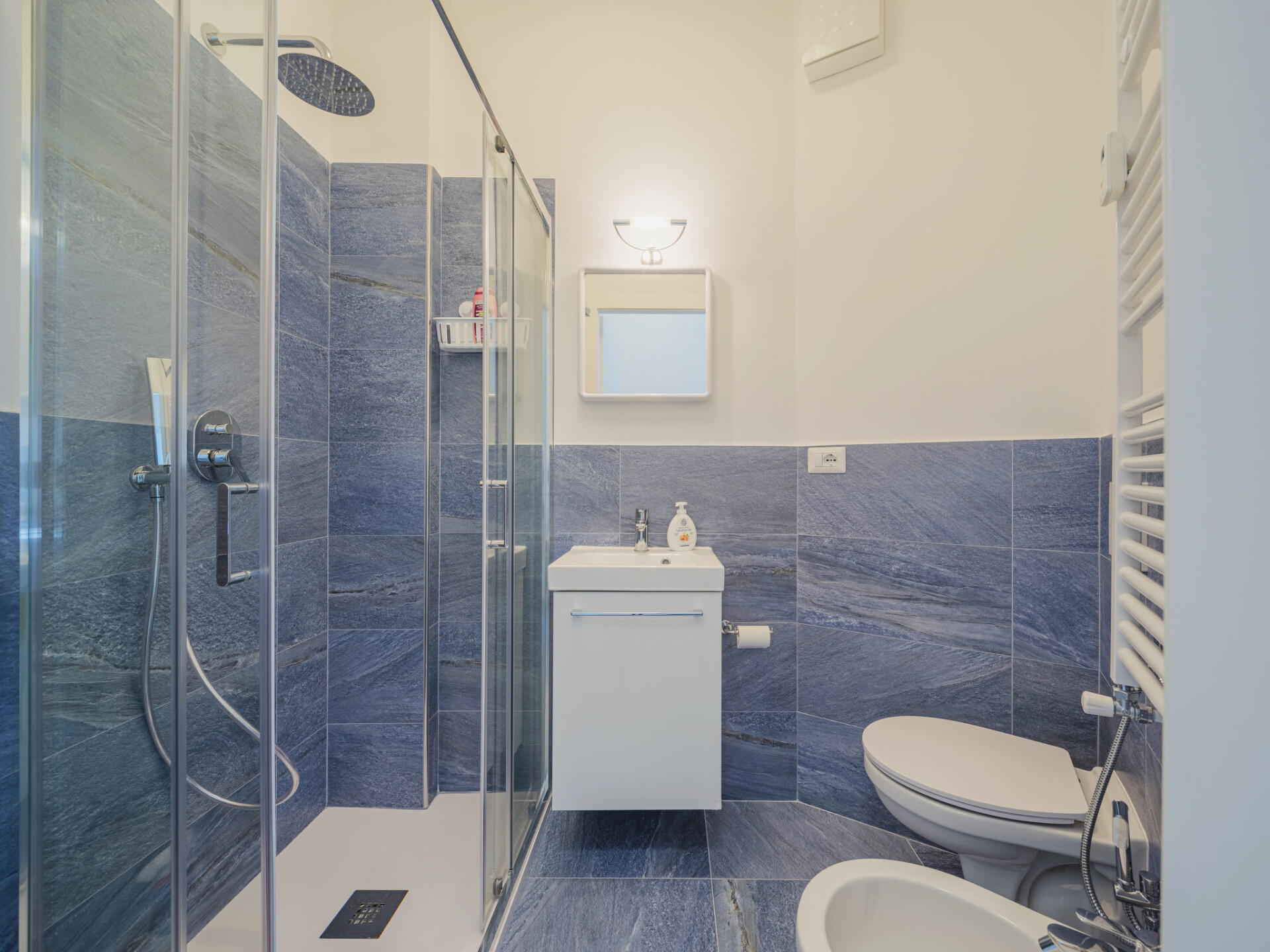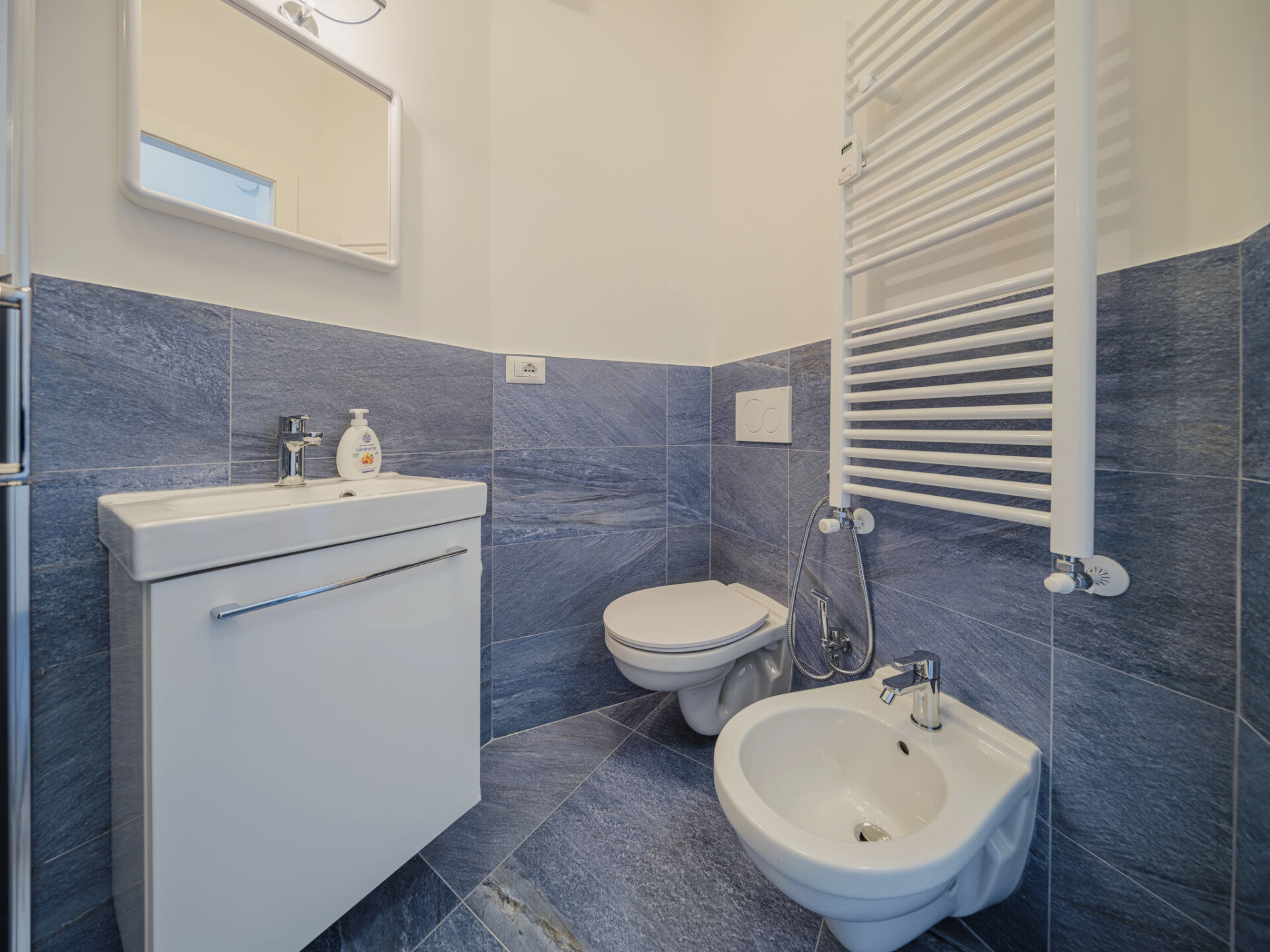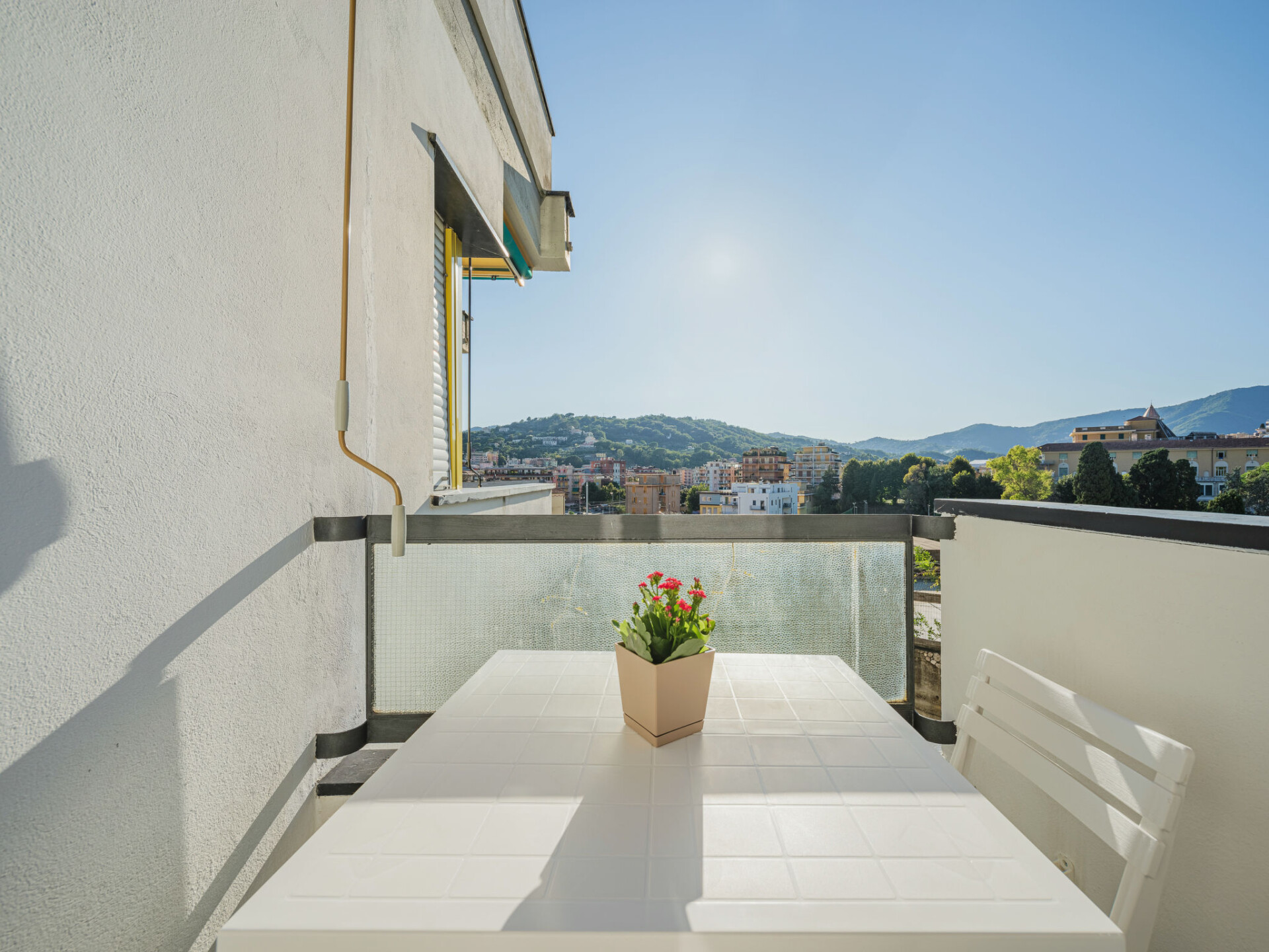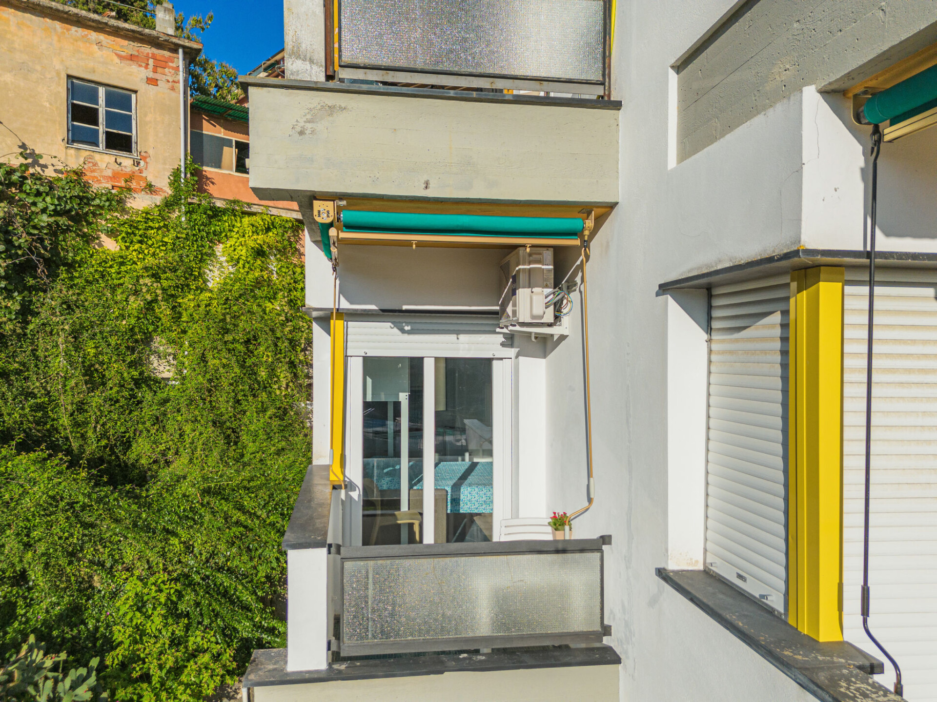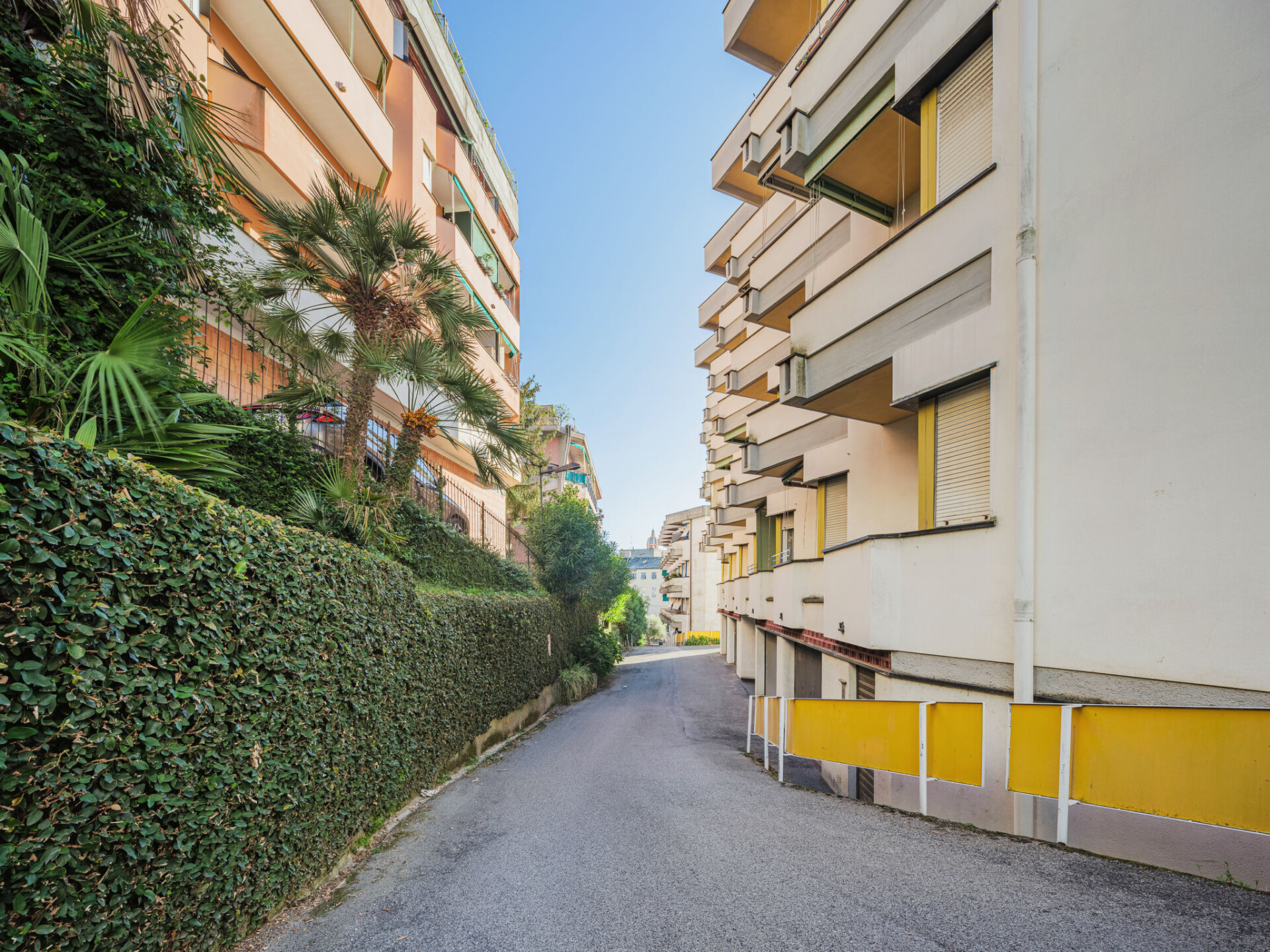 Groot flatgebouw. 300 m van het centrum van Rapallo, tegen een helling, 700 m van zee, aan een doodlopende weg. In het huis: lift. Openbare parkeerplaatsen 400 m. Supermarkt, restaurant 400 m, bar, bakkerij 400 m, café, bushalte 200 m, treinstation "Rapallo" 200 m. Jachthaven 1.3 km, golfterrein (18 holes) 1.5 km. Attracties in de buurt: Santa Margherita Ligure 4 km, Portofino 9 km, Chiavari 12 km. Laden en lossen van de baggage is mogelijk bij het huis. Spoorweg 150 m van het huis.