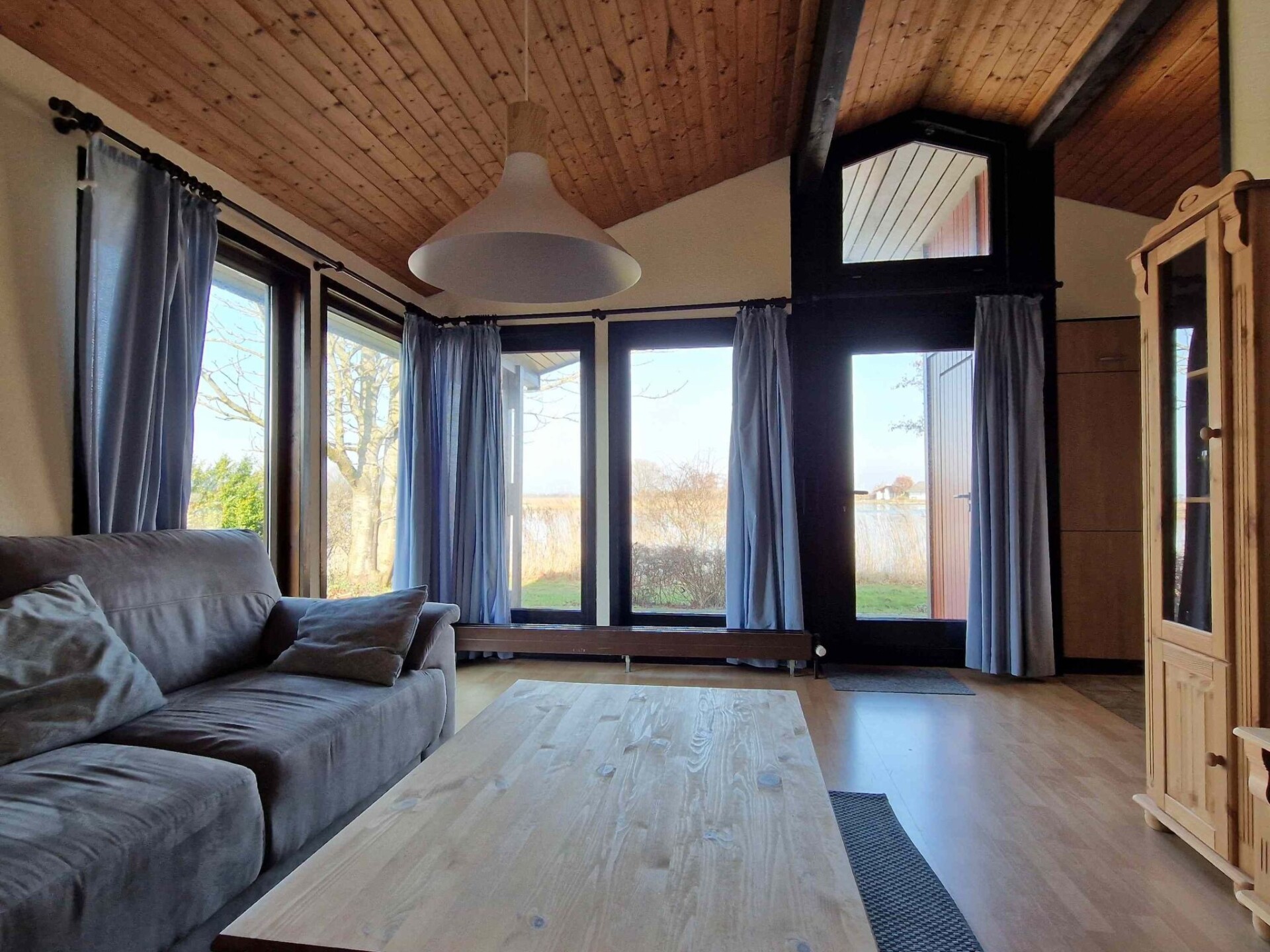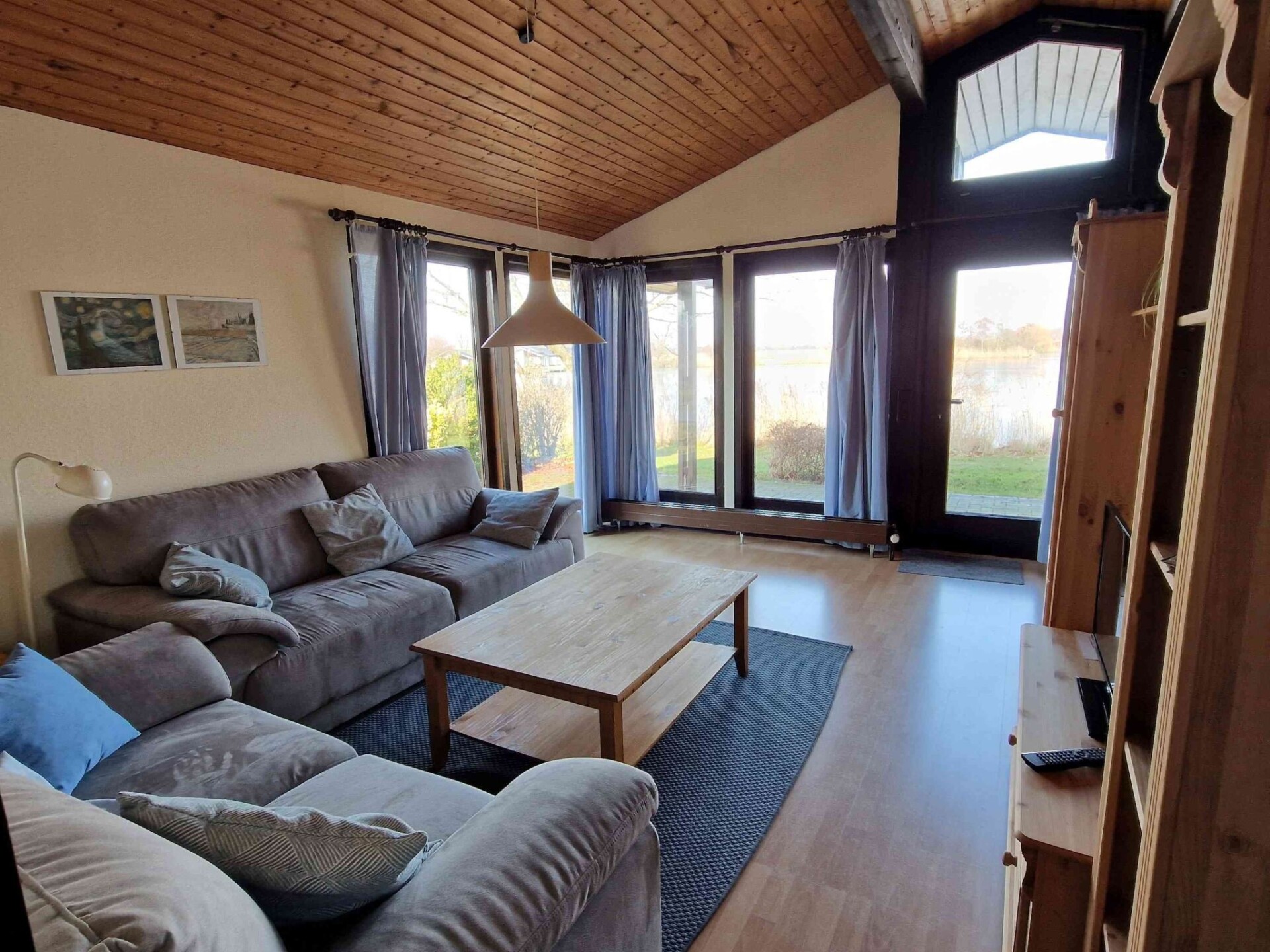 - 1 ruime woonkamer met ramen van vloer tot plafond met uitzicht op het meer