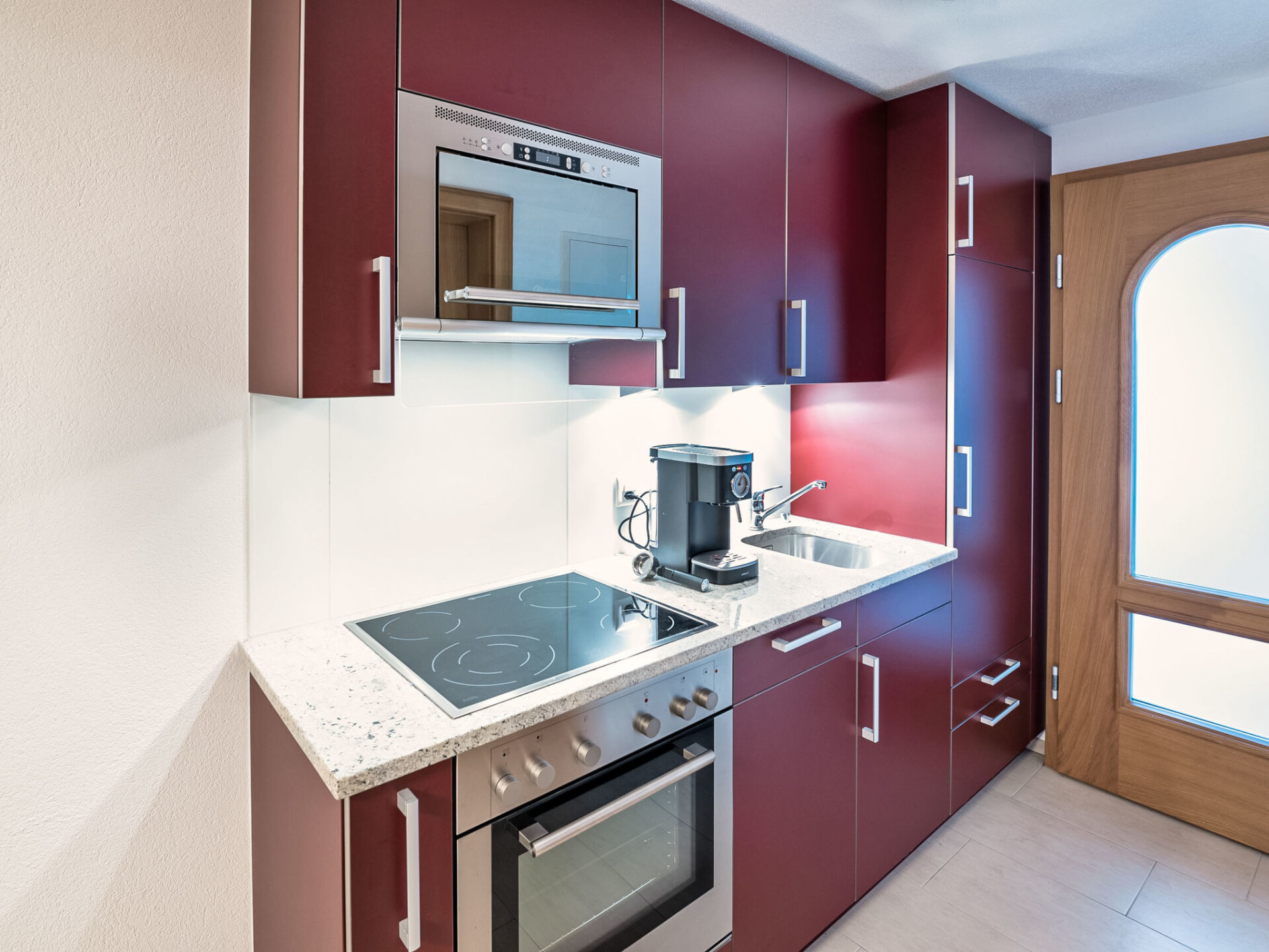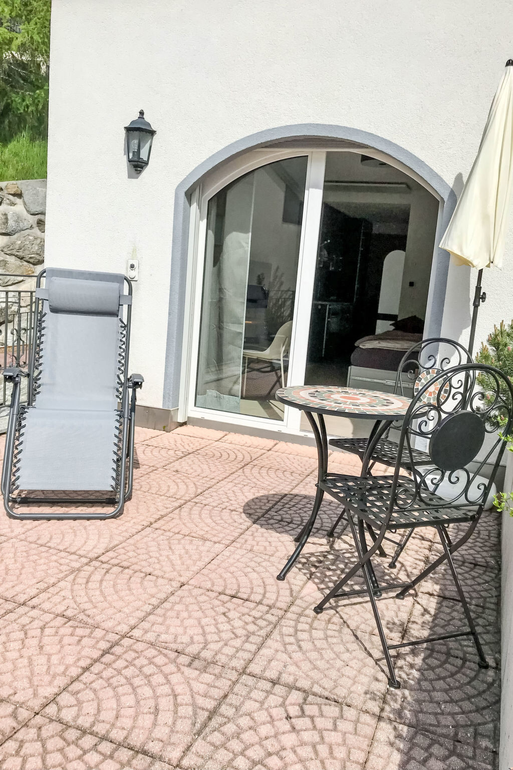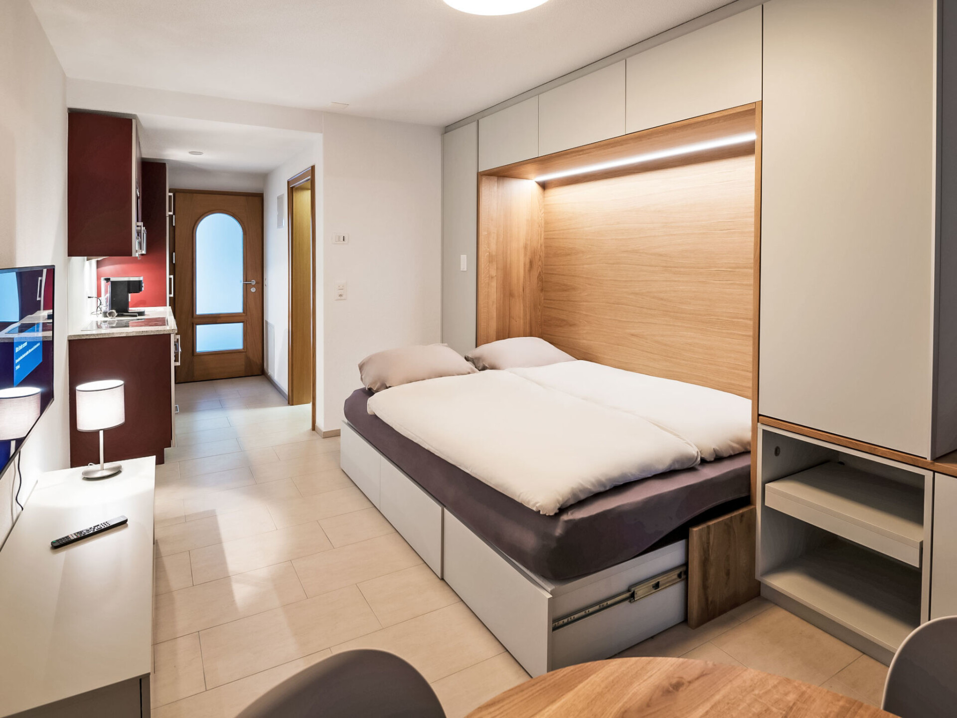 "B01", appartement 1-kamer 28 m2, op de begane grond. Comfortabel en modern ingericht: woon-/slaapkamer met 1 2-pers bed (160 cm, lengte 200 cm), eettafel en Sat-TV (Flatscreen TV). Uitgang naar het terras. Open keuken (oven, afwasmachine, 4 keramische glas kookplaten, broodrooster, magnetron, elektrische koffiemachine, raclette oven, fondue Set (kaas)). Douche/WC. Groot terras. Terrasmeubelen. Mooi uitzicht op de bergen en het landschap. Ter beschikking: Internet (Internet (WiFi), gratis). Parkeerplaats (overdekt). Niet rokers woning.