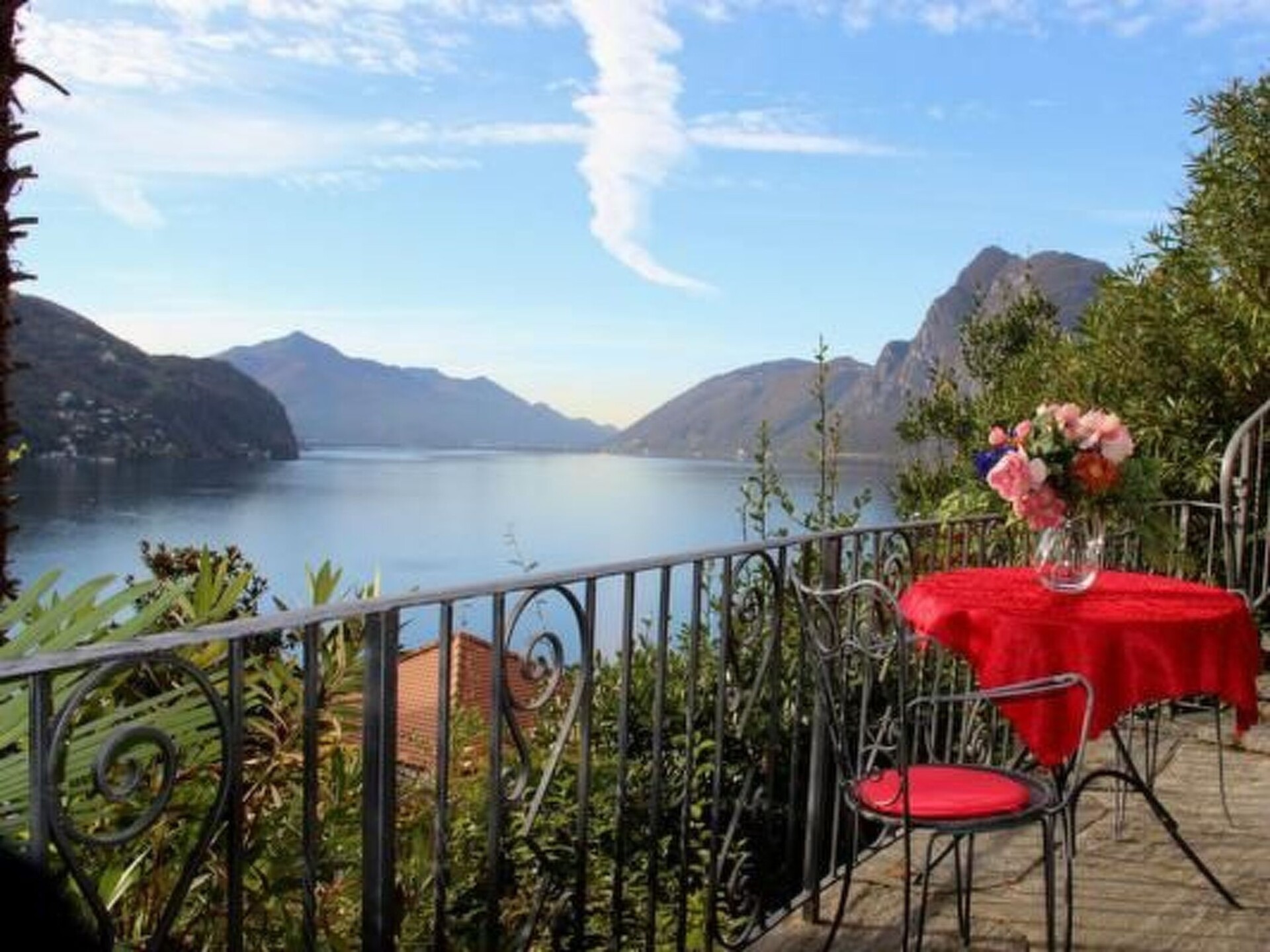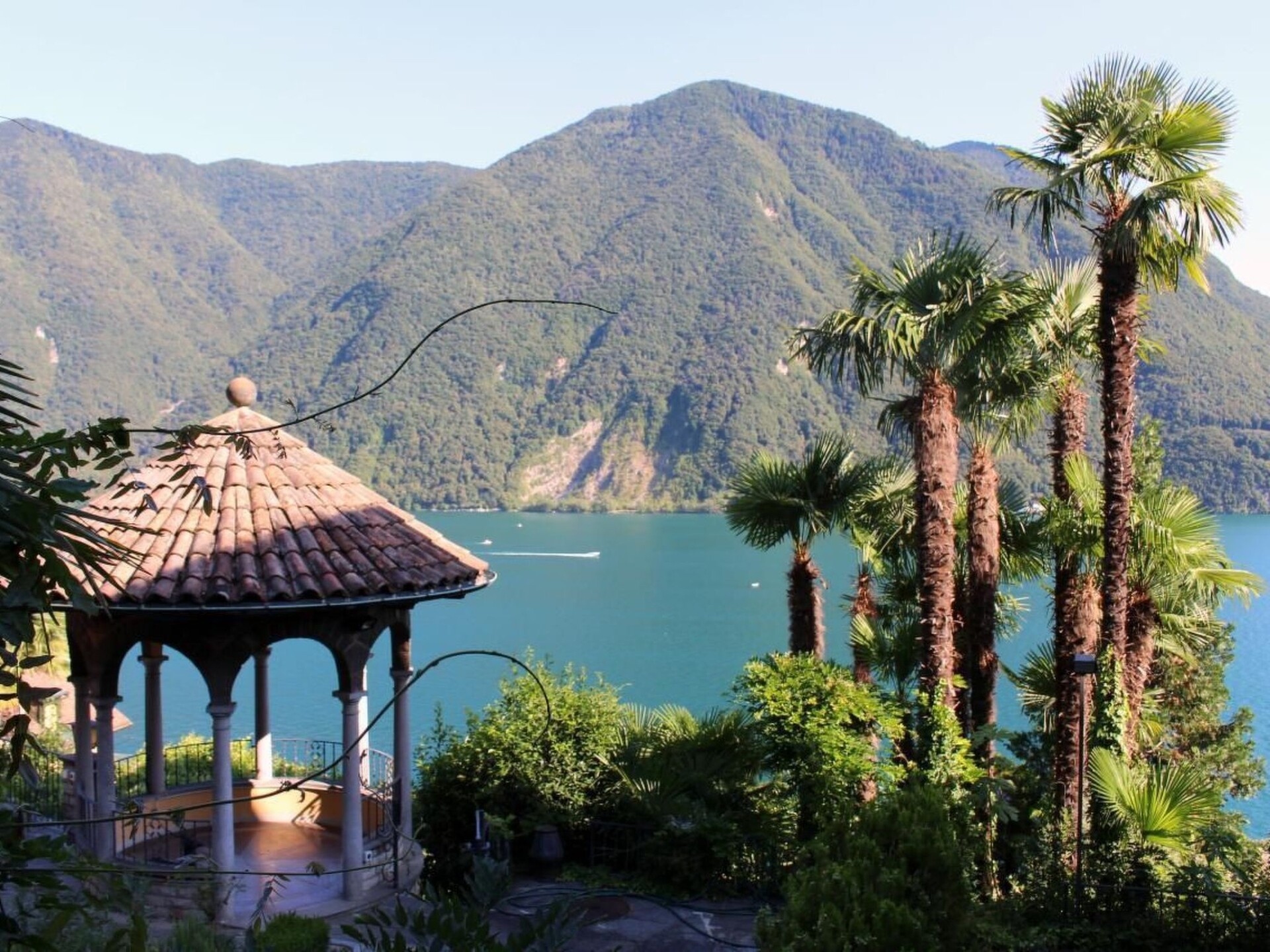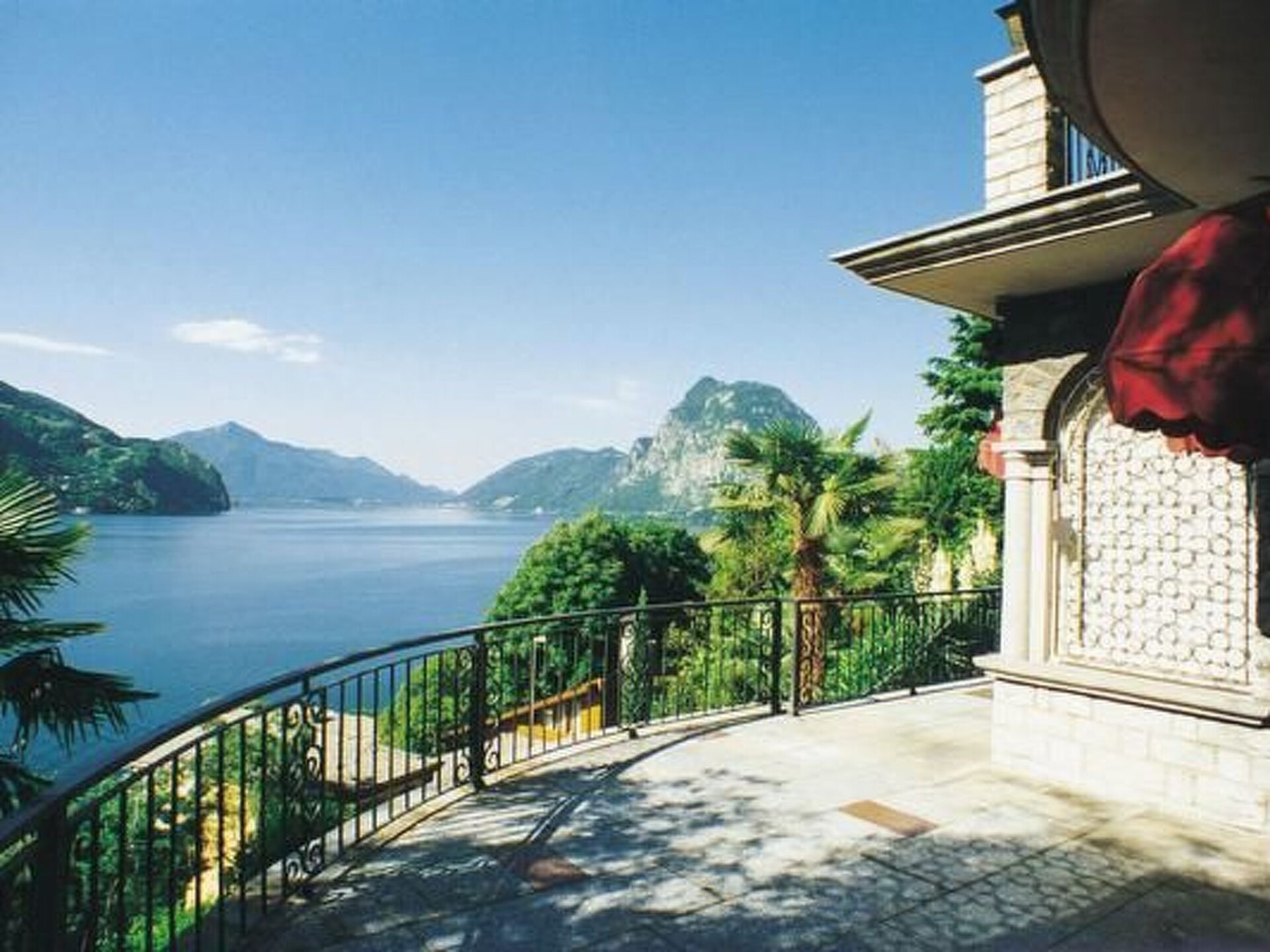 SEPARATE HOUSE (non-smoking) on 2 floors with 3 different entrances from outside with private garden and fish pond in the castle-like complex BARONY LE PERGOLE with pavilion, large terraces and wine pergola with dining area and deckchairs. Completely fenced: 5 garden gates. Shared indoor swimming pool.Living/dining room (air conditioning) with open passage to 1 small anteroom (with Steinway & Grotian piano) and to a boudoir (without window).Kitchen "Bulthaup" in country house style with window and dining area. Work surface with handmade franz. Worktop with handmade French tiles, hob with 4 hotplates in stainless steel with overflow hob, oven, extractor fan, microwave with grill, fridge and freezer, dishwasher, Fissler grill + electric garden grill. ----------------------------------------------------For 8 people-----------------------------------3 bedrooms in the upper part of the villa:1 bedroom (air conditioning): 1 double bed 2.0 x 2.15 m long (2 mattresses).1 bedroom (air conditioning): 1 double bed 1.6 x 2 m1 bedroom (air conditioning): 2 single beds 0.9 x 2 m each, can be put together to form a double bed1 studio (air conditioning unit) in the basement: 1 double bed 1.60 x 2 m, accessible directly from the outside and/or internal staircase with small cupboard kitchen, dining table1 boudoir (access from the living room (without window) with single bed 0.8 x 2 m + 1 toddler bed1 bathroom with bathtub with shower curtain, bidet, WC double washbasin with vanity unit, fan1 bathroom with bathtub with shower curtain, bidet, WC, washbasin, window, fan, towel warmer1 shower/WC/washbasin, washing machine with integrated tumble dryer (in the basement) -----------------------------------------------------------Antique, comfortable and tasteful furnishings combined with modern comfort. Satellite TV, free WIFI, "Steinway/Grotian" piano. Lake view. 2 covered car parks (subject to charge) are available.The nostaglian BARONY LE PERGOLE with 3 luxury villas and a total of 10 luxury maisonette flats (non-smoking) of various sizes for 1-9 persons is located in the most exclusive district of Lugano-Castagnola-Cortivo at the foot of "Monte Bre" (the sunniest mountain in Switzerland) close to the lake (70 m as the crow flies) and the lakeside path to the picturesque fishing village of "Gandria" (1.3 km). Situated in a quiet and sunny location away from the traffic of the communal and cantonal road between a private cul-de-sac via Violetta and an ancient olive footpath, the castle-like property is enthroned above a 4,000 m2 terraced Mediterranean tree garden (left in its natural state) with panoramic views of Lake Lugano and nearby mountains.The communal indoor pool 4 x 8 m for swimmers aged 12 and over, minors must be accompanied by an adult.accompanied by an adult. The 140 m2 sun terrace with sun loungers, parasols and table tennis is open from June to September. Subject to official closure due to Covid at any time.However, swimming in the lake at 130 m via private road + stairs down to the lake at the communal boat and bathing jetty (for sporty people): free of chargeLido "San Domenico" approx. 500 m with swimming in the lake: subject to charge. All flats (non-smoking) with balconies and/or terraces are comfortable, cosy and tastefully furnished andwith their own entrance directly from the outside."Bulthaup" kitchens. Marble and mosaic bathrooms. Cots are available free of charge. Satellite and/or cable TV. Telephone WIFI free of charge. Air conditioning/appliances in living rooms and bedrooms.DISTANCES: Bus 400 m, 1 restaurant + 1 day bar 300 m, supermarkets "Migros" and "Coop", tennis court, fitness club, indoor swimming pool and large "Lido Lugano", mountain railway "Monte Bré" 1.2 - 1.6 km. Centre of Lugano 2 km. Municipal children's playground 200 m.Barony run by the owner, who lives on site. Zoover Awards "Best holiday home Lugano". All additional costs to be paid in cash on arrival.Covered car park available with advance booking for 2 normal cars or 1 VAN-car to be paid in cash on arrival. Guarantee deposit to be paid in cash on arrival. To be returned in cash upon return of the property in good conditionOther sports and leisure facilities: Tennis court open in summer, covered in other seasons 1.4 km away Fitness centre 1.4 km awayOther living room equipment (living room1): 1 piano Steinway & Grotian / Germany in the small anteroom next to the living room.Other kitchen equipment (kitchen1): Bulthaup country style kitchen with window to the side of the cooking and work surface. Work surface in handmade French tiles. Cooking surface for 4 plates in stainless steel with safety overflow recess. a second small fitted kitchen is located in the studio on the lower ground floor. Work and cooking surface with 2 plates in stainless steel with safety overflow recess.Sports facilities in the neighbourhood: fishing, golf course, cycling tours, rowing, surfing, tennis, water skiing, sailingLocation description: The town of Lugano is beautifully situated on Lake Lugano to the south of the majestic Alps, surrounded by lush vegetation thanks to the mild Mediterranean climate in the southernmost Swiss canton of Ticino. Milan is 70 km away. Lugano is located at the most important north-south railway and motorway junction in Europe. Thanks to the longest car tunnel in the world - the St. Gotthard tunnel - with the accompanying railway line and the San Bernardino road tunnel, Lugano can be reached quickly from the north. Regular flights connect Lugano with the main European cities. Lugano offers a rich cultural programme as well as fun entertainment and recreation. Lugano is also an important banking and commercial centre, combining the best of both worlds, Italy and Switzerland. Its geographical position as a gateway between Switzerland and Central Europe to the north and Italy to the south makes Lugano a highly prized holiday destination and main place of residence. NL-4372