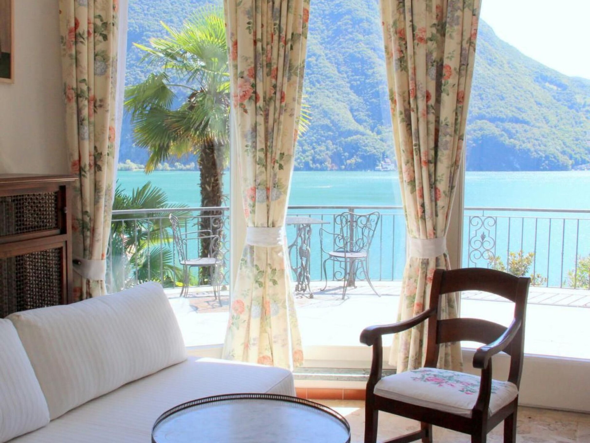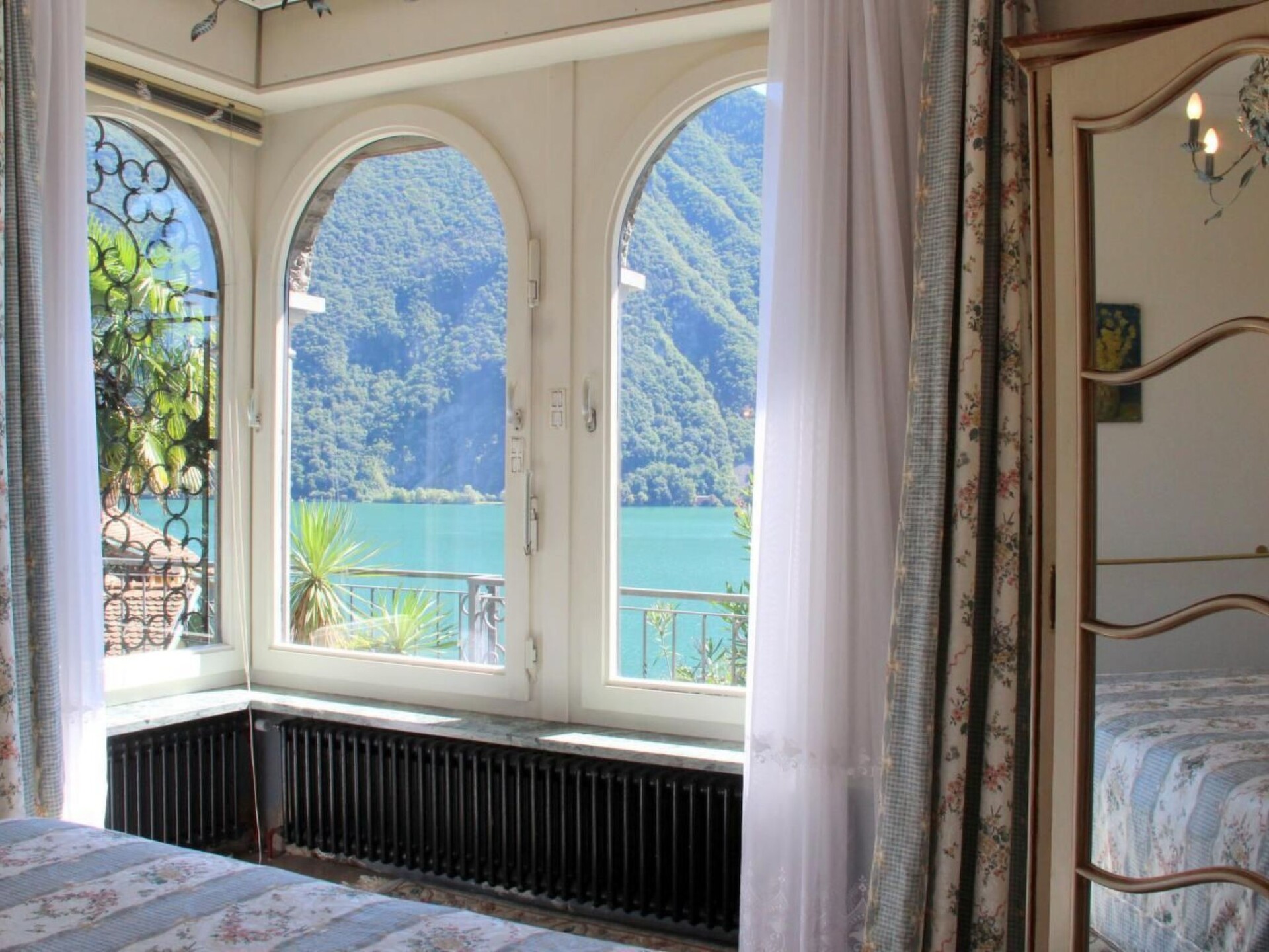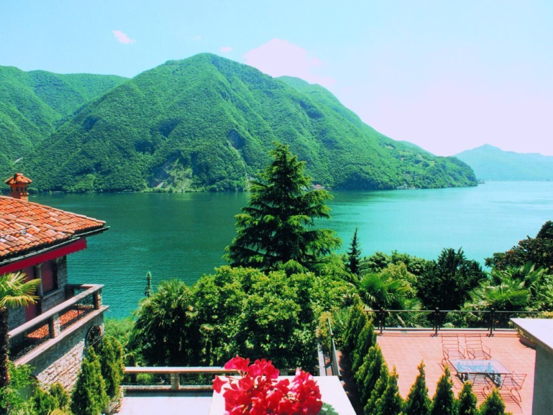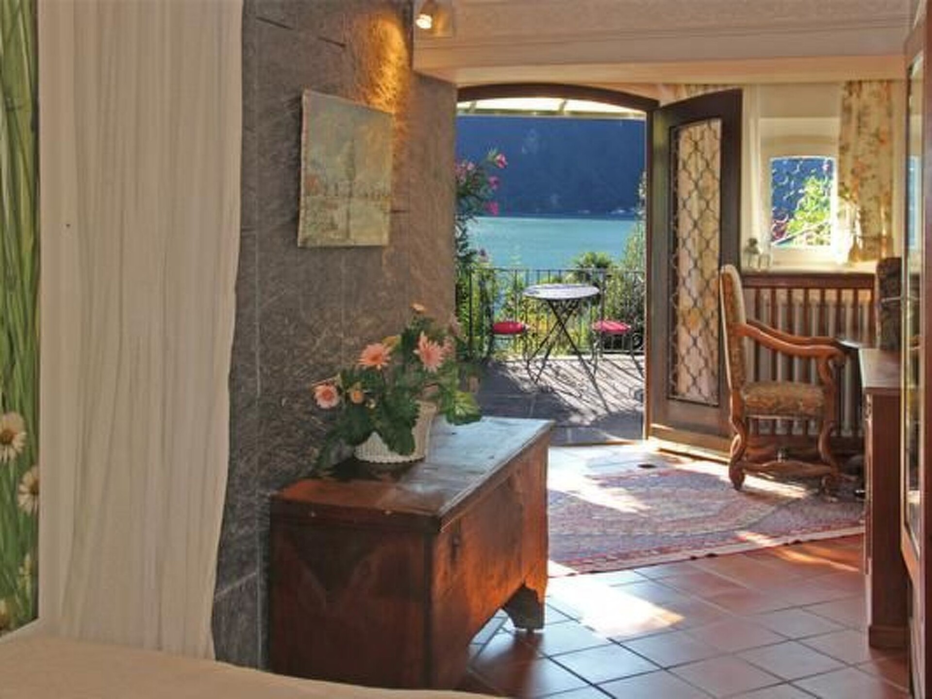 SEPARATE HOUSE (non-smoking) on 2 floors with 3 different entrances from outside with private garden and fish pond in the castle-like complex BARONY LE PERGOLE with pavilion, large terraces and wine pergola with dining area and deckchairs. Completely fenced: 5 garden gates. Shared indoor swimming pool.Living/dining room (air conditioning) with open passage to 1 small anteroom (with Steinway & Grotian piano) and to a boudoir (without window).Kitchen "Bulthaup" in country house style with window and dining area. Work surface with handmade franz. Worktop with handmade French tiles, hob with 4 hotplates in stainless steel with overflow hob, oven, extractor fan, microwave with grill, fridge and freezer, dishwasher, Fissler grill + electric garden grill. ----------------------------------------------------For 8 people-----------------------------------3 bedrooms in the upper part of the villa:1 bedroom (air conditioning): 1 double bed 2.0 x 2.15 m long (2 mattresses).1 bedroom (air conditioning): 1 double bed 1.6 x 2 m1 bedroom (air conditioning): 2 single beds 0.9 x 2 m each, can be put together to form a double bed1 studio (air conditioning unit) in the basement: 1 double bed 1.60 x 2 m, accessible directly from the outside and/or internal staircase with small cupboard kitchen, dining table1 boudoir (access from the living room (without window) with single bed 0.8 x 2 m + 1 toddler bed1 bathroom with bathtub with shower curtain, bidet, WC double washbasin with vanity unit, fan1 bathroom with bathtub with shower curtain, bidet, WC, washbasin, window, fan, towel warmer1 shower/WC/washbasin, washing machine with integrated tumble dryer (in the basement) -----------------------------------------------------------Antique, comfortable and tasteful furnishings combined with modern comfort. Satellite TV, free WIFI, "Steinway/Grotian" piano. Lake view. 2 covered car parks (subject to charge) are available.The nostaglian BARONY LE PERGOLE with 3 luxury villas and a total of 10 luxury maisonette flats (non-smoking) of various sizes for 1-9 persons is located in the most exclusive district of Lugano-Castagnola-Cortivo at the foot of "Monte Bre" (the sunniest mountain in Switzerland) close to the lake (70 m as the crow flies) and the lakeside path to the picturesque fishing village of "Gandria" (1.3 km). Situated in a quiet and sunny location away from the traffic of the communal and cantonal road between a private cul-de-sac via Violetta and an ancient olive footpath, the castle-like property is enthroned above a 4,000 m2 terraced Mediterranean tree garden (left in its natural state) with panoramic views of Lake Lugano and nearby mountains.The communal indoor pool 4 x 8 m for swimmers aged 12 and over, minors must be accompanied by an adult.accompanied by an adult. The 140 m2 sun terrace with sun loungers, parasols and table tennis is open from June to September. Subject to official closure due to Covid at any time.However, swimming in the lake at 130 m via private road + stairs down to the lake at the communal boat and bathing jetty (for sporty people): free of chargeLido "San Domenico" approx. 500 m with swimming in the lake: subject to charge. All flats (non-smoking) with balconies and/or terraces are comfortable, cosy and tastefully furnished andwith their own entrance directly from the outside."Bulthaup" kitchens. Marble and mosaic bathrooms. Cots are available free of charge. Satellite and/or cable TV. Telephone WIFI free of charge. Air conditioning/appliances in living rooms and bedrooms.DISTANCES: Bus 400 m, 1 restaurant + 1 day bar 300 m, supermarkets "Migros" and "Coop", tennis court, fitness club, indoor swimming pool and large "Lido Lugano", mountain railway "Monte Bré" 1.2 - 1.6 km. Centre of Lugano 2 km. Municipal children's playground 200 m.Barony run by the owner, who lives on site. Zoover Awards "Best holiday home Lugano". All additional costs to be paid in cash on arrival.Covered car park available with advance booking for 2 normal cars or 1 VAN-car to be paid in cash on arrival. Guarantee deposit to be paid in cash on arrival. To be returned in cash upon return of the property in good conditionOther sports and leisure facilities: Tennis court open in summer, covered in other seasons 1.4 km away Fitness centre 1.4 km awayOther living room equipment (living room1): 1 piano Steinway & Grotian / Germany in the small anteroom next to the living room.Other kitchen equipment (kitchen1): Bulthaup country style kitchen with window to the side of the cooking and work surface. Work surface in handmade French tiles. Cooking surface for 4 plates in stainless steel with safety overflow recess. a second small fitted kitchen is located in the studio on the lower ground floor. Work and cooking surface with 2 plates in stainless steel with safety overflow recess.Sports facilities in the neighbourhood: fishing, golf course, cycling tours, rowing, surfing, tennis, water skiing, sailingLocation description: The town of Lugano is beautifully situated on Lake Lugano to the south of the majestic Alps, surrounded by lush vegetation thanks to the mild Mediterranean climate in the southernmost Swiss canton of Ticino. Milan is 70 km away. Lugano is located at the most important north-south railway and motorway junction in Europe. Thanks to the longest car tunnel in the world - the St. Gotthard tunnel - with the accompanying railway line and the San Bernardino road tunnel, Lugano can be reached quickly from the north. Regular flights connect Lugano with the main European cities. Lugano offers a rich cultural programme as well as fun entertainment and recreation. Lugano is also an important banking and commercial centre, combining the best of both worlds, Italy and Switzerland. Its geographical position as a gateway between Switzerland and Central Europe to the north and Italy to the south makes Lugano a highly prized holiday destination and main place of residence. NL-4372