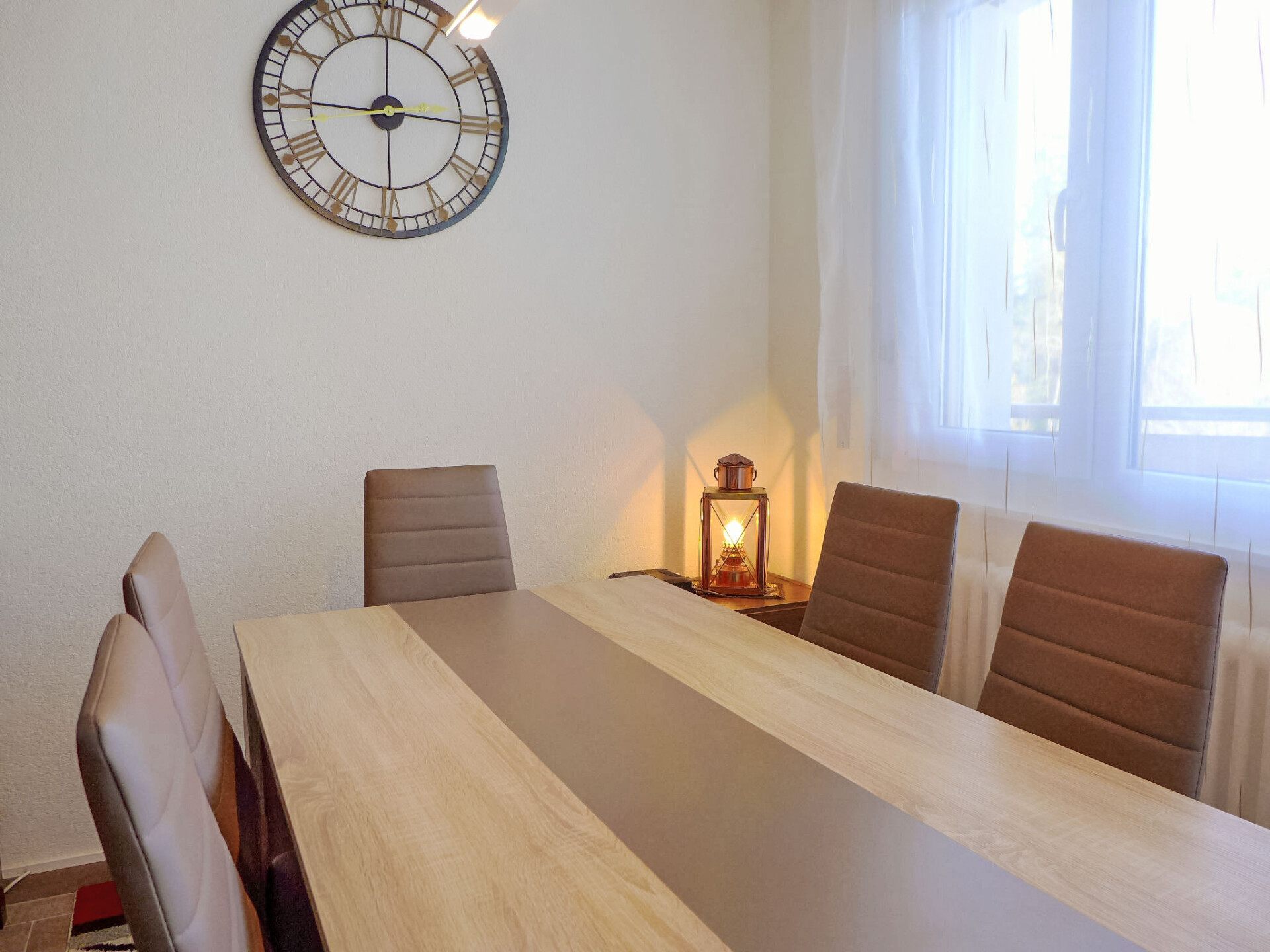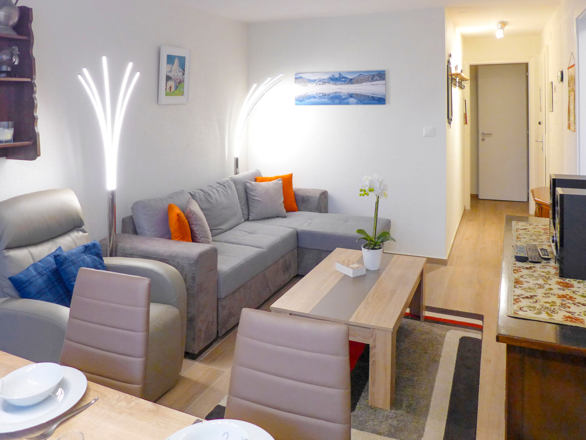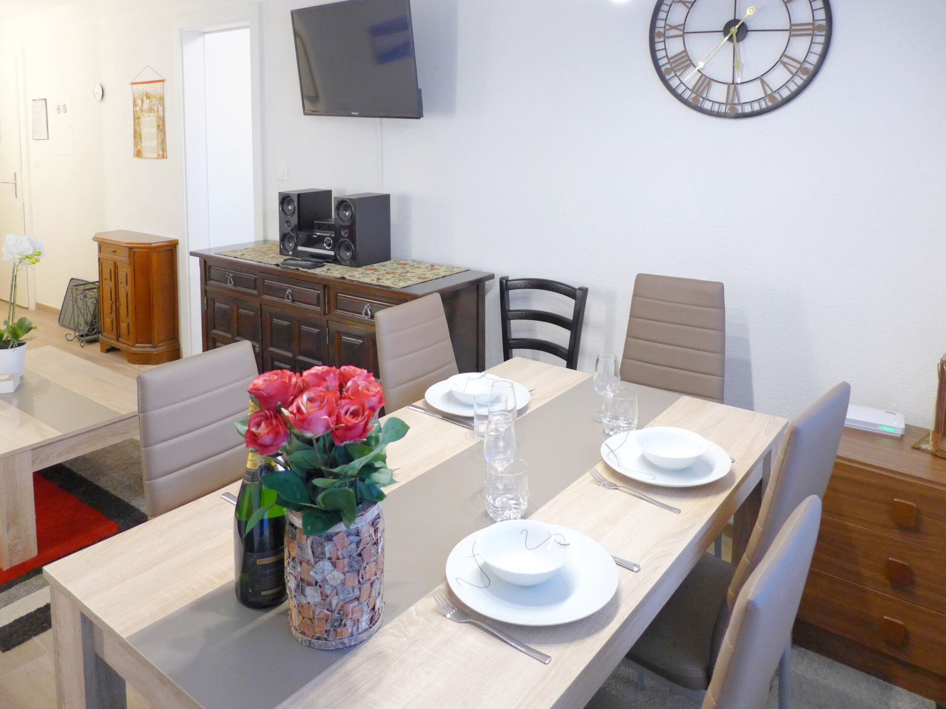 "Barzettes-Vacances 553 / Entrée N° 14", appartement 2-kamers 46 m2 op de 3e verdieping. Het objekt is geschikt voor 2 volwassenen + 1 kinderen. Gedeeltelijk gerenoveerd in 2017, comfortabel en mooi ingericht: woon-/eetkamer met 1 divanbed (128 cm, lengte 180 cm), Kabel-TV (Flatscreen TV). Uitgang naar het balkon. 1 kamer, op het noordwesten met 1 2-pers bed (140 cm, lengte 200 cm). Keuken (oven, afwasmachine, broodrooster, waterkoker, elektrische koffiemachine, pads voor de koffiemachine (NESPRESSO) extra, raclette oven, fondue Set (chinese, kaas)). Douche/WC. Klein balkon, op het zuiden gelegen en op het oosten gelegen. Balkonmeubilair. Zijdelings uitzicht op de bergen. Ter beschikking: haardroger. Internet (Internet (WiFi), gratis). Niet rokers woning.