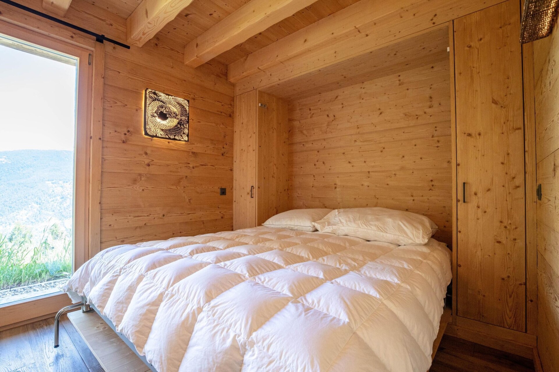 Het chalet beschikt over twee ruime slaapkamers met tweepersoonsbed, één met een bad in de kamer, een schuifdeur naar het toilet en de wastafel, en de andere met een opvouwbaar matras en een klein bureau. Geniet van de strakke Italiaanse doucheruimte met een toilet en wastafel. Buiten biedt het chalet een klein terras met tuinmeubilair en een balkon met een prachtig uitzicht op de bergen. Met gemakkelijke toegang tot twee parkeerplaatsen, zorgt het chalet voor uw gemak tijdens uw verblijf.