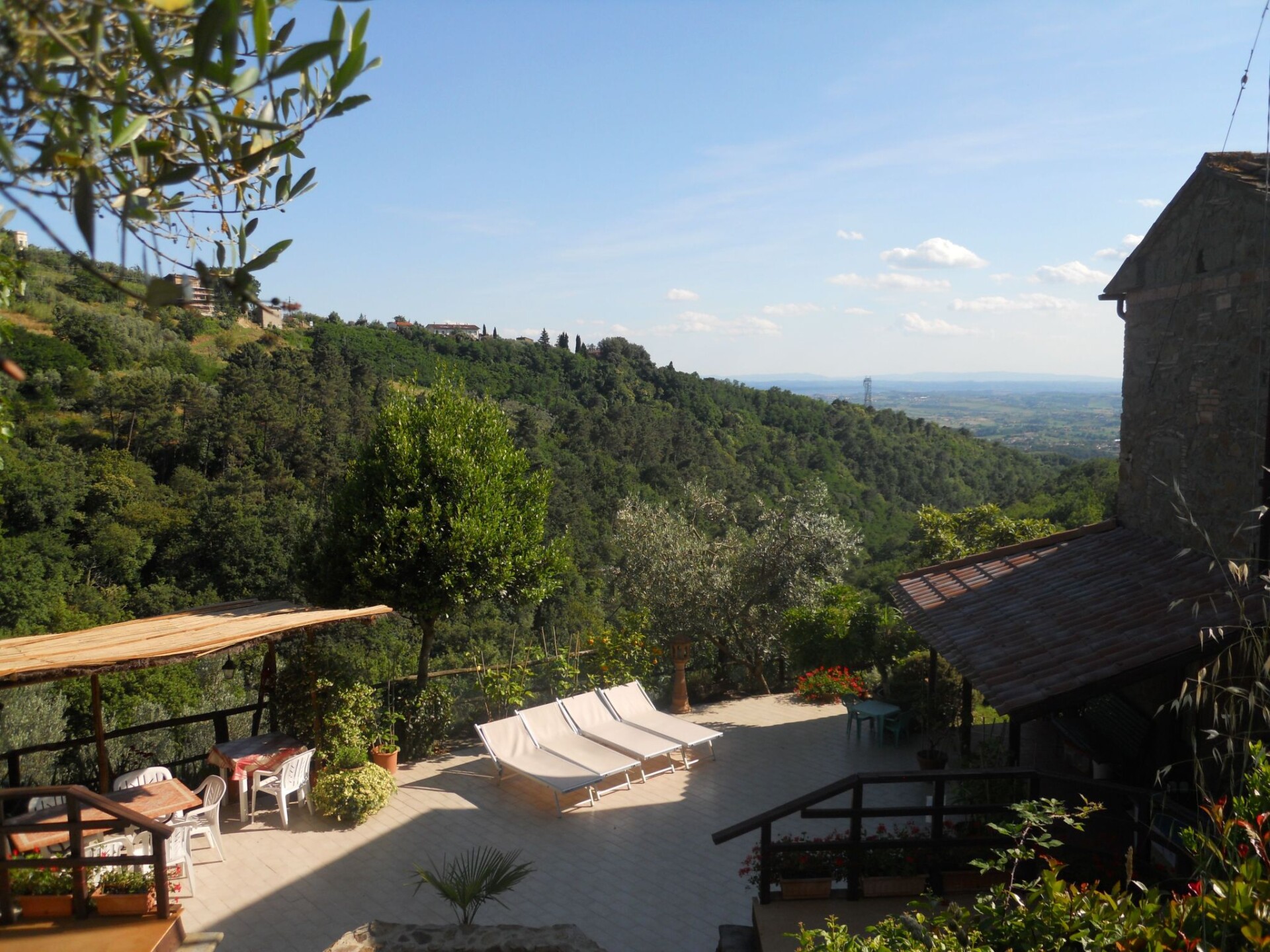 This agriturismo is an old stone country house. Surrounded by woods and olive groves, it is situated on a small hill enclosed by a valley of Montalbano. It is the ideal place to enjoy the silence and relax.The holiday flat is surrounded by a 3-hectare garden. Outside, guests have at their disposal a swimming pool for exclusive use, a terrace, a loggia, a veranda, a barbecue area and several terraces equipped with garden furniture. Play areas for children are available. Private parking is available.The living area of the holiday flat extends over two levels. On the ground floor (approx. 35 m²) you will find a bathroom with shower and bidet, an equipped kitchen with gas cooker, oven and refrigerator, and a living room with a sofa bed for two persons. The living room also includes an equipped kitchenette with gas and electric cooker, refrigerator and a small oven. There is a TV in the living room and kitchen. On the first floor (approx. 35 m²) there are two bedrooms, each with a double bed, and a bathroom with shower and bidet. Baby beds or cots are available.San Baronto is a small village in the heart of Tuscany and a good starting point for visiting Montecatini, Pistoia, the Chianti region and art cities such as Florence, Lucca, Pisa, etc.The farm produces olive oil and honey. IT047005B5Y8Q4IKFJ