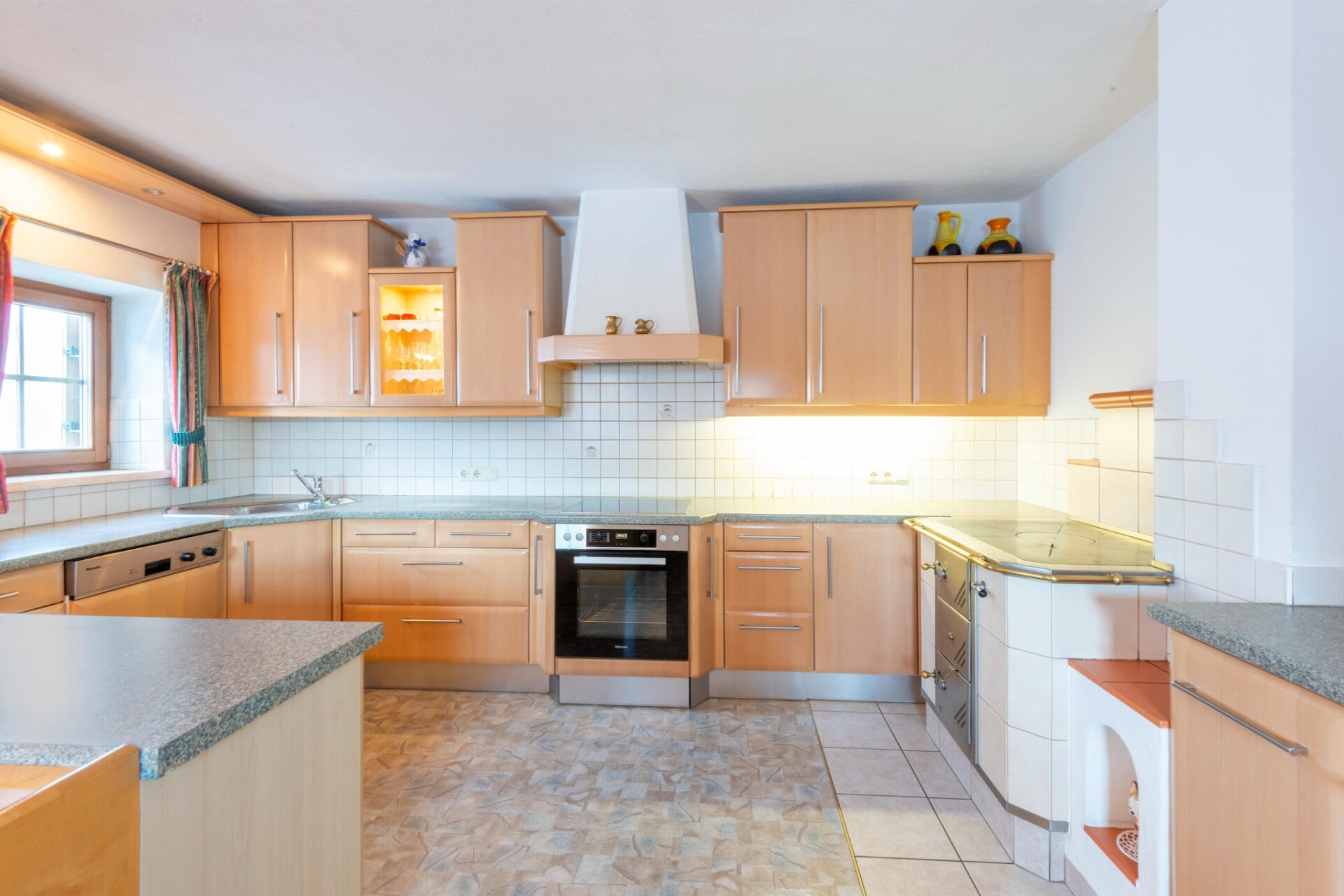 Veel hout, een tegelkachel en een mooie zithoek geven het vakantiehuis een uiterst gezellige sfeer. De open keuken is goed uitgerust en heeft ook een vaatwasser. De eigen skiruimte is bijzonder praktisch. Omdat het een ouder huis is, zijn de muren gehorig en is het mogelijk dat je de machines in de stal hoort.