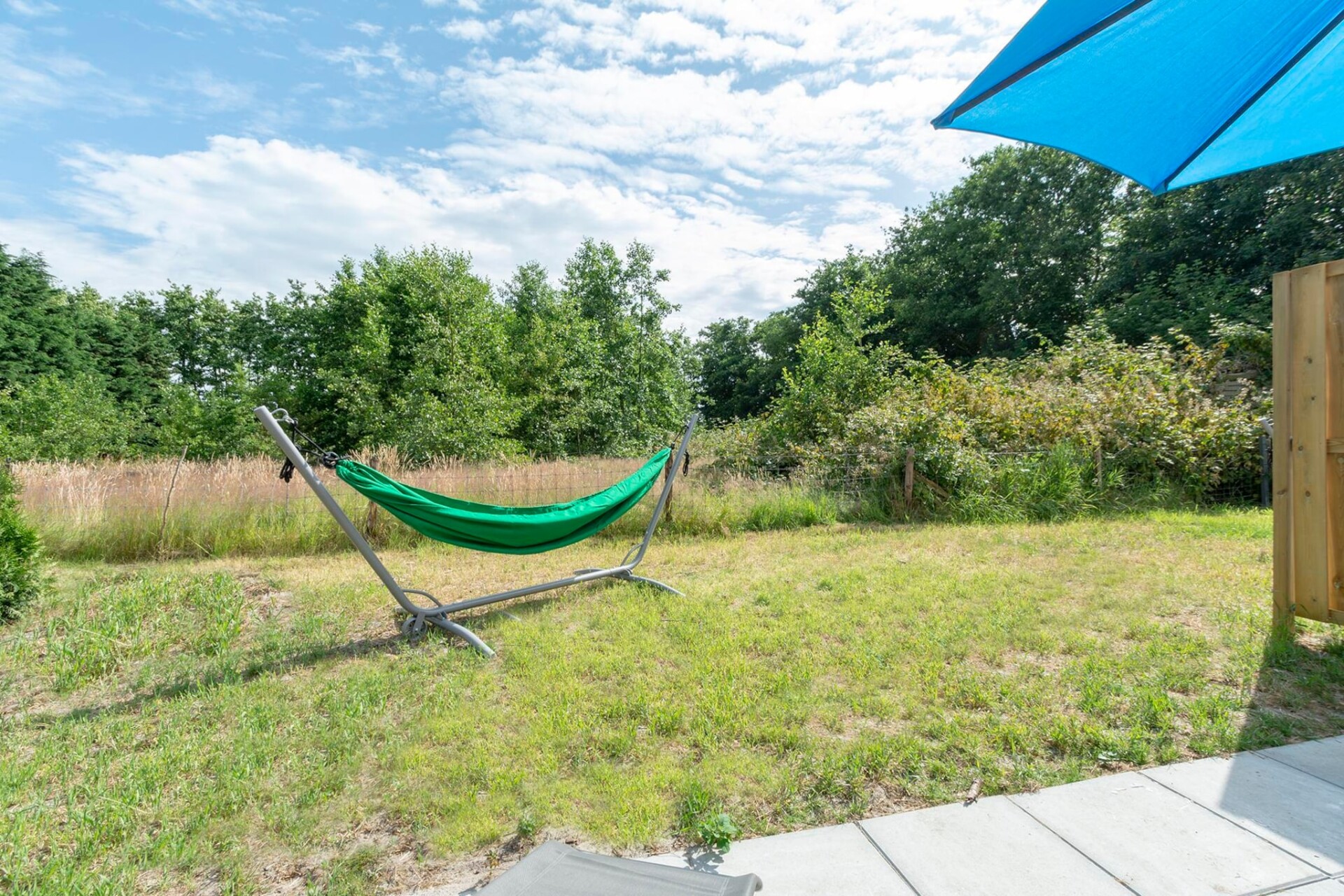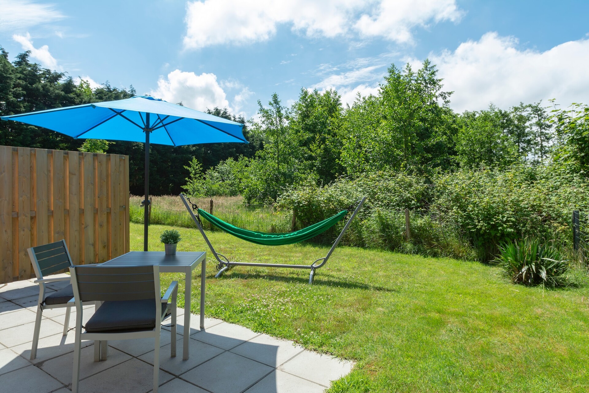 Geniet van een volledig uitgeruste keuken met inductiekookplaat, koel-/vriescombinatie en alle benodigdheden voor zelfgekookte maaltijden. De eigen badkamer is fris en functioneel, compleet met handdoeken en een inloopdouche. Stap naar buiten op uw beschutte terras met uitzicht op het bos, ontspan in de hangmat of dineer buiten onder de parasol. Of u nu geniet van een kopje koffie in de ochtend of leest in de zon, de tuin biedt precies de juiste mix van privacy en buitenlucht.