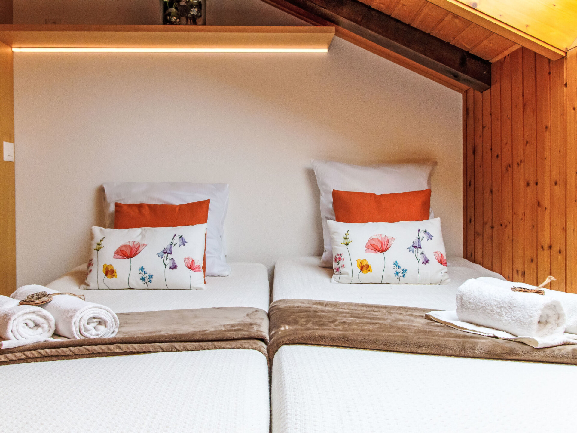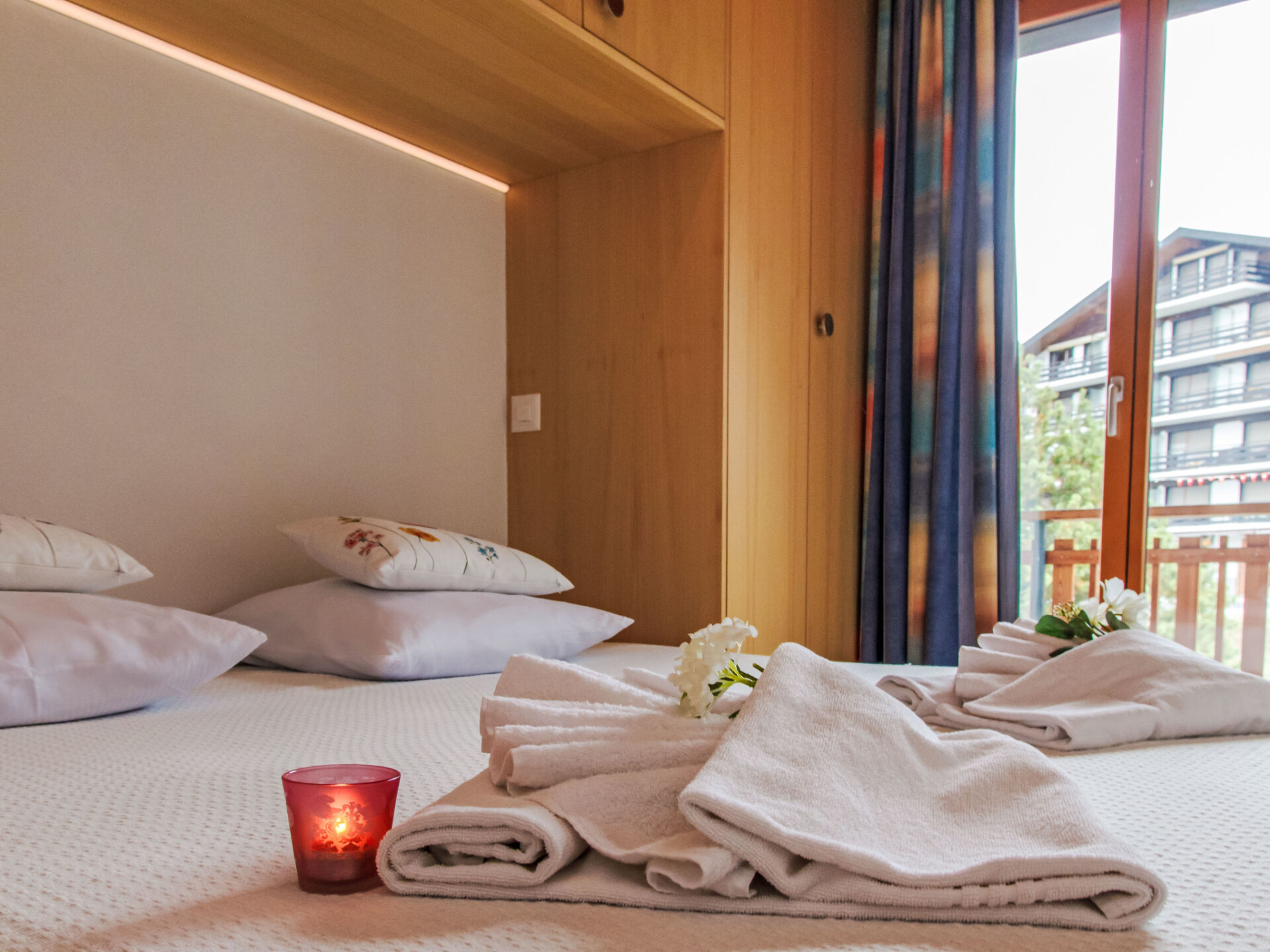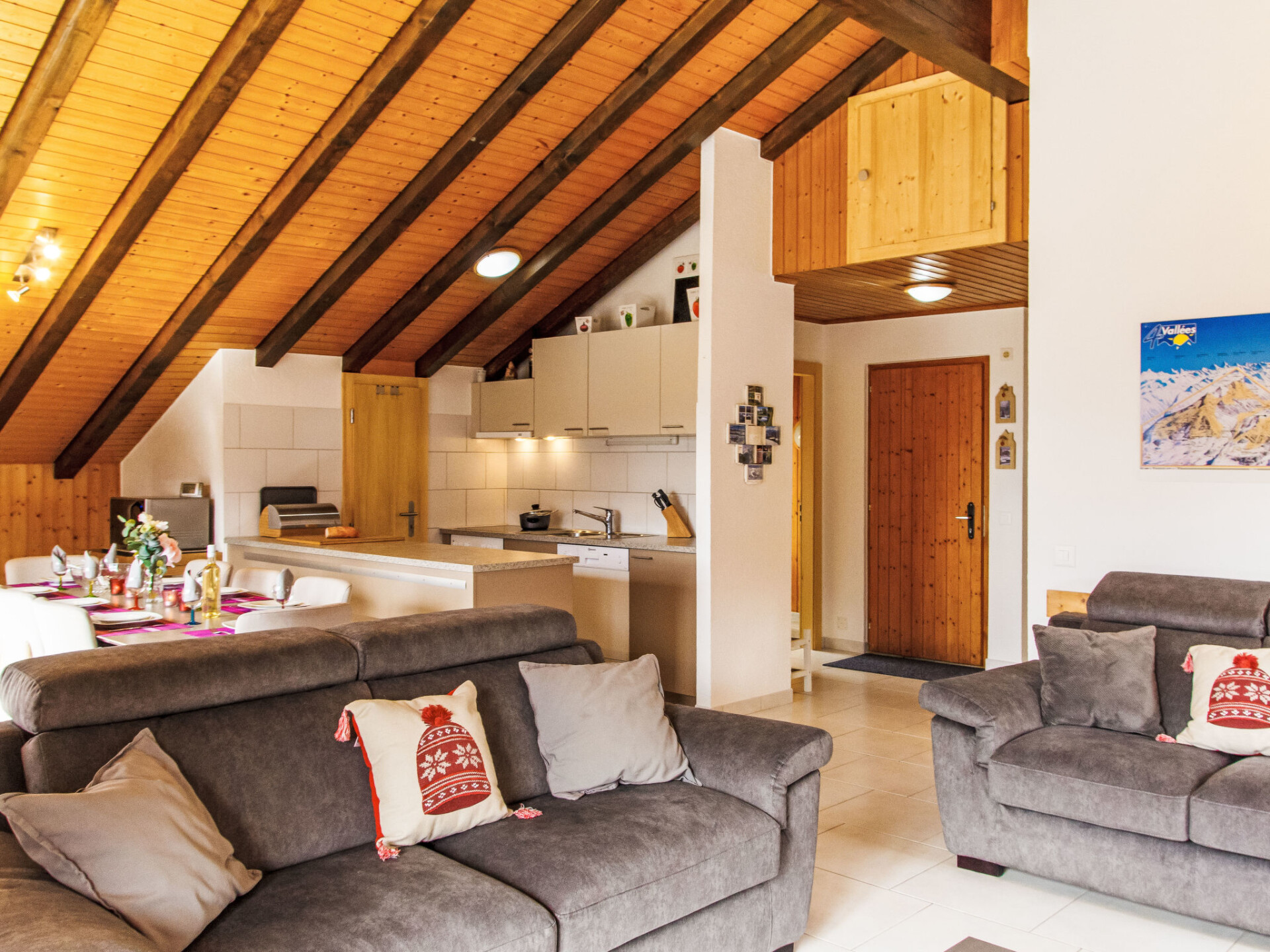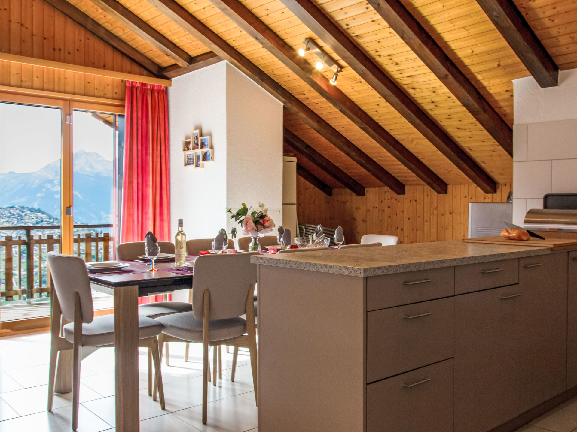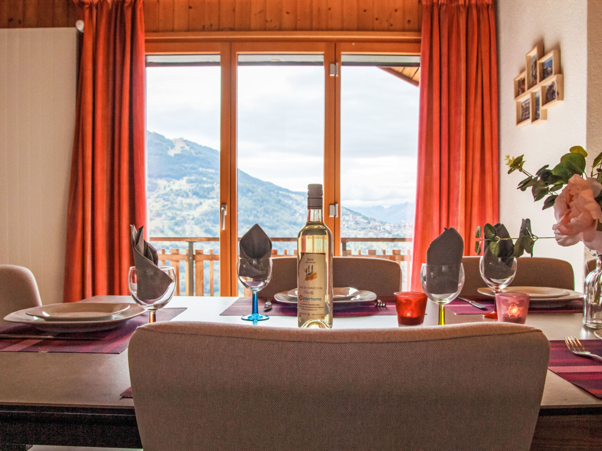"Beau Soleil - Gentianes 40", appartement 5-kamers 125 m2 op de 3e verdieping. Ruim, gedeeltelijk gerenoveerd, comfortabel en smaakvol ingericht: hal. Woon-/eetkamer met Kabel-TV en CD-speler. Uitgang naar het balkon. 3 kamers, elke kamer heeft 2 bedden (90 cm, lengte 190 cm). 1 kamer met 2 bedden (90 cm, lengte 200 cm). Open keuken (oven, afwasmachine, 4 keramische glas kookplaten, broodrooster, waterkoker, magnetron, diepvriezer, elektrische koffiemachine, pads voor de koffiemachine (Senseo) extra, raclette oven, fondue Set (kaas)). Bad/WC, douche/WC. 2 balkons, op het westen gelegen en op het zuidoosten gelegen, klein terras. Balkonmeubilair. Zeer mooi uitzicht op de bergen en het dal. Ter beschikking: Internet (WiFi, gratis). Niet rokers woning, geen parkeerplaats.