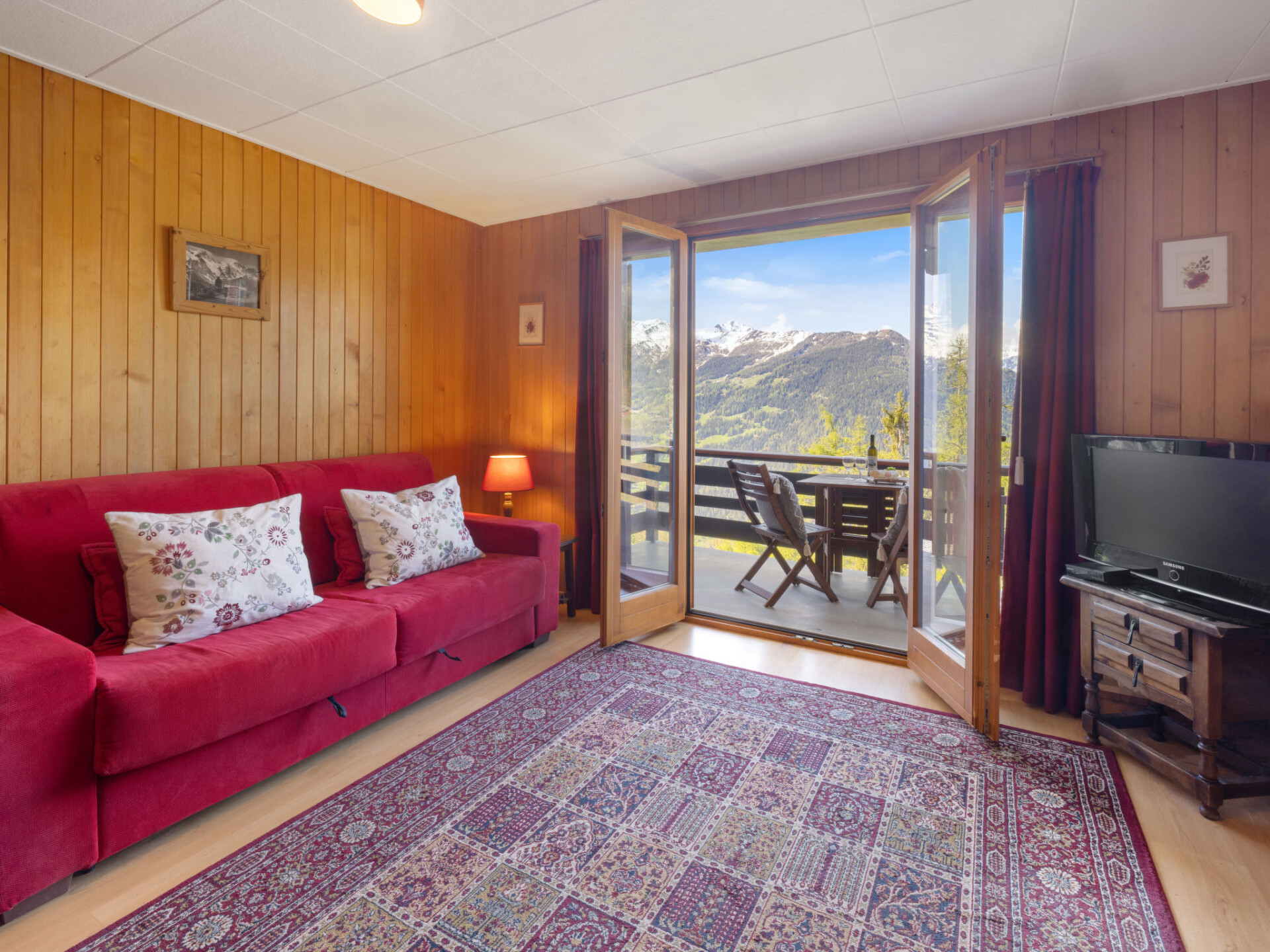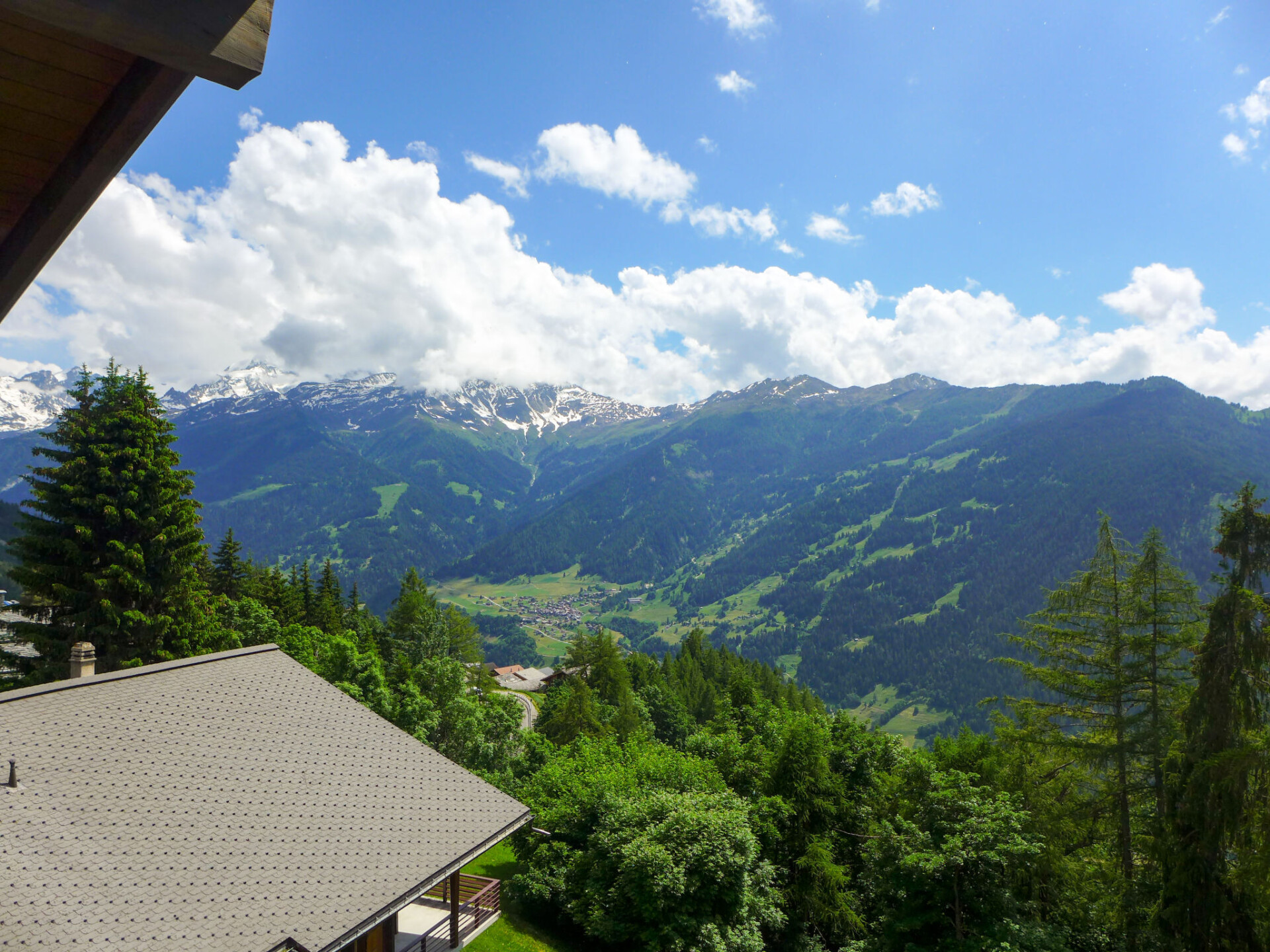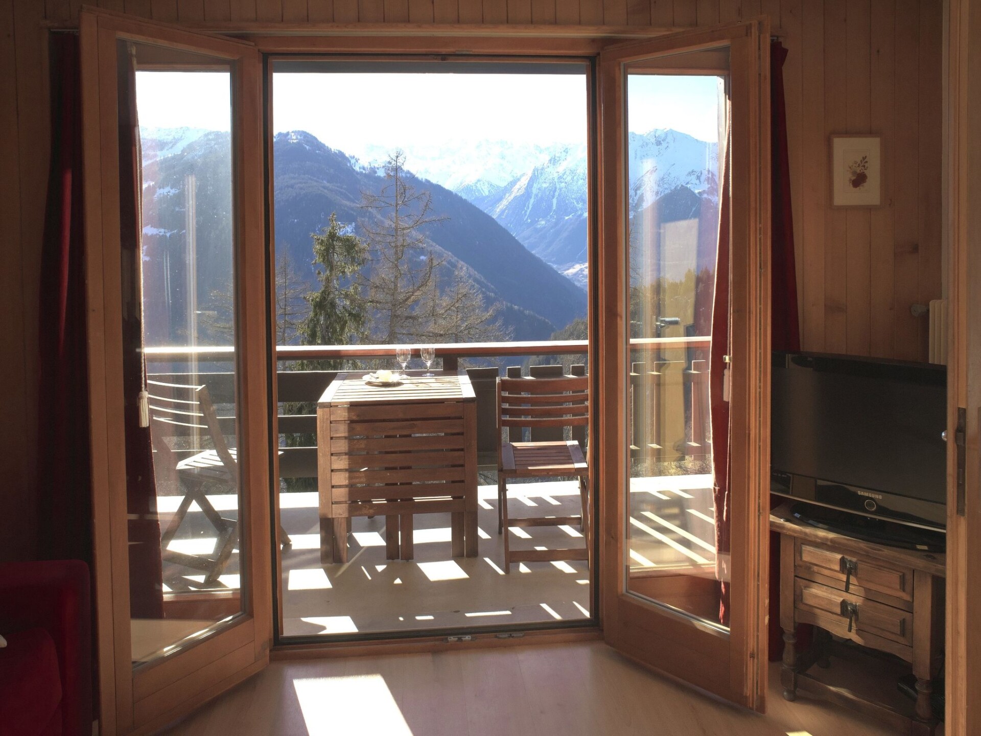 Flatgebouw "Beausoleil". In de wijk Crétaz Cô, aan de rand van de plaats, 1.2 km van het centrum van de la station, rustige, zonnige ligging, op het zuiden. In het huis: lift, berging voor ski's, centrale verwarming. Toegangsweg tot aan het huis. Winkel 1.2 km, supermarkt 900 m, restaurant 1.2 km, bar 1.2 km, bakkerij 1.2 km, café 1.2 km, bushalte "Crétaz Cô" 50 m. Golfterrein (18 holes) 2.5 km, tennis 300 m, manege 300 m, sportcentrum, stoeltjeslift 4 km, kabelbaan op 2.1 km, ski faciliteiten 1.6 km, skibushalte 50 m, skischool 1.7 km, kinderoppasdienst 800 m, ijsbaan 300 m, kinderspeelplaats 1.2 km. Gratis skibus naar het skigebied Médran 1.6km, Savoleyres 2.1km en Carrefour 4km.