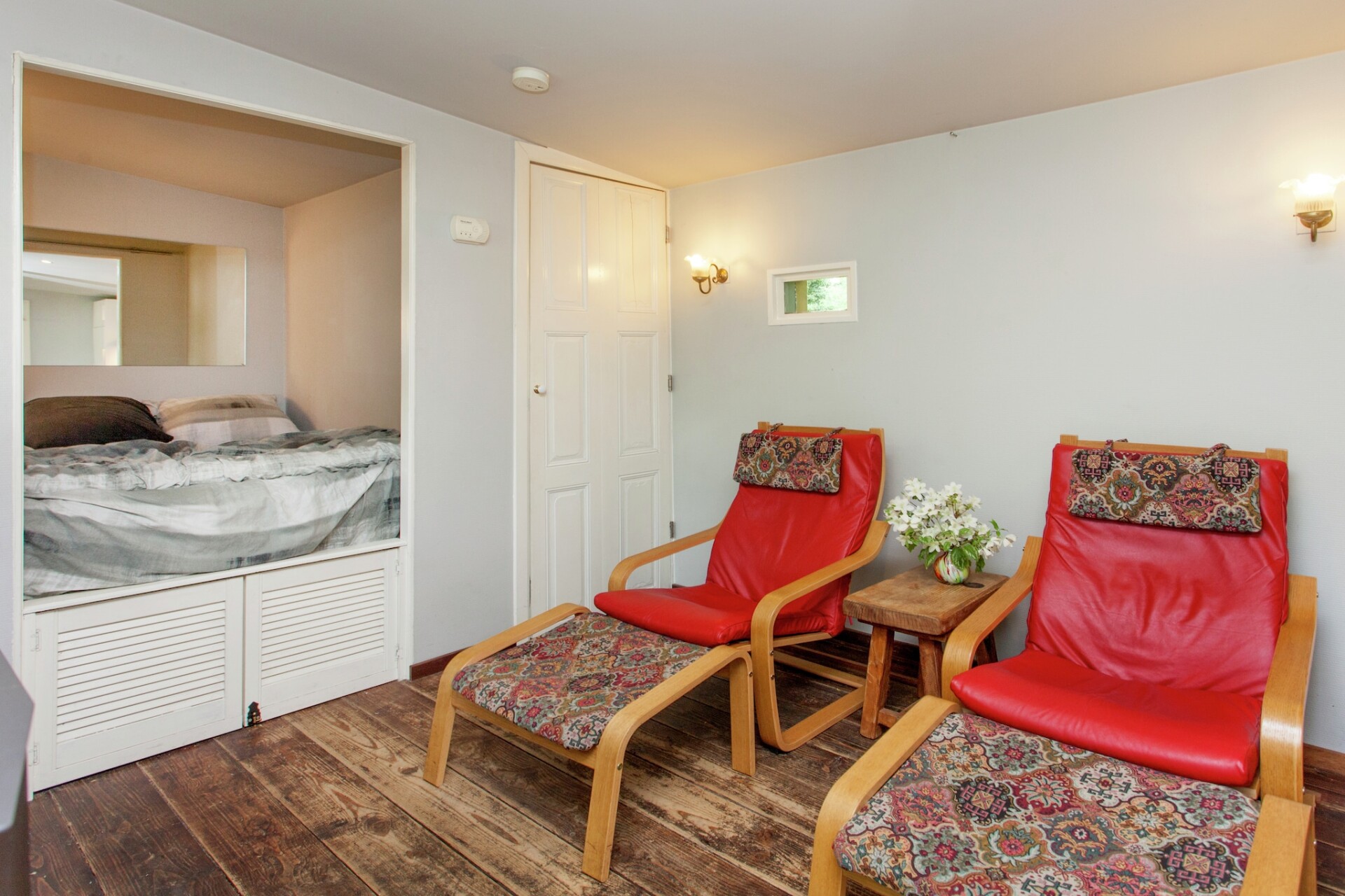 Ontsnap naar dit privé-boschalet in Opglabbeek, perfect voor 2 gasten die rust, natuur en een beetje vissen zoeken. Gelegen in het bos en op slechts 100 meter van een meer, biedt dit gezellige toevluchtsoord exclusieve toegang tot een visvijver waar u karper en zeebaars kunt vangen - een droom voor hengelaars. Het chalet beschikt over een woon-/slaapkamer met een tweepersoons bedstee, tv, fornuis en dvd-speler.
