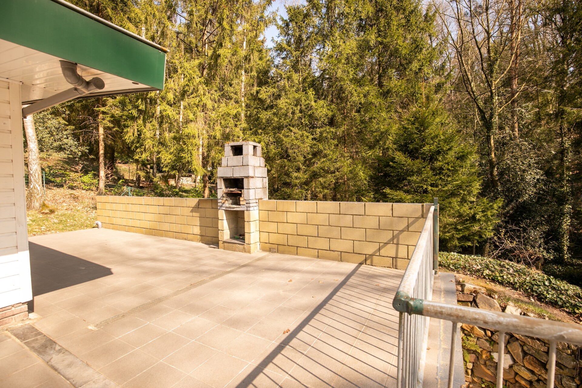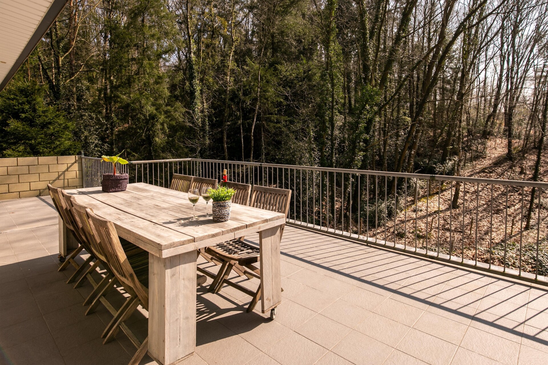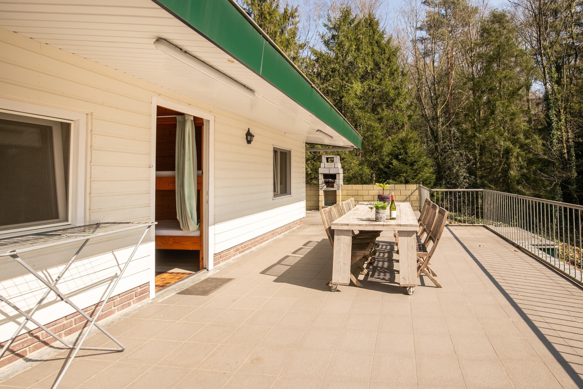 De open keuken biedt uitzicht op het bos en is volledig uitgerust met een vaatwasser, combimagnetron en een complete keukeninventaris. Een grote houten eettafel nodigt gasten uit om samen te eten, terwijl het ruime terras op de eerste verdieping een barbecue en een zithoek heeft. Of u nu binnen ontspant of geniet van de frisse lucht, dit huis biedt een onvergetelijk verblijf in een prachtige omgeving.