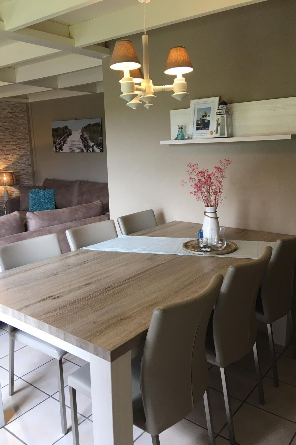 Binnen wacht u een hartelijk welkom met een woonkamer die een gezellige zithoek met houtkachel, een breedbeeld TV met satellietverbinding, digitale tv met toegang tot eigen Netflix en een eethoek voor 6 personen. De volledig uitgeruste keuken, beschikt over moderne apparatuur en alle benodigdheden voor een heerlijk verblijf. Naast een gastvrij ingerichte badkamer met walk-in douche, vindt u beneden ook een slaapkamer met een comfortabel tweepersoonsbed alsook een apart gastentoilet en boven twee extra slaapkamers, allemaal perfect voor een goede nachtrust.