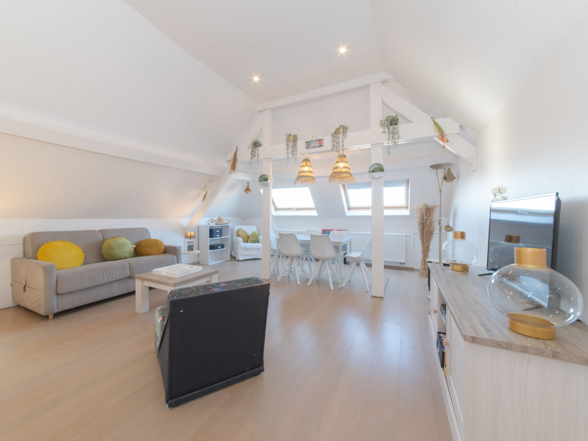 "Seaview Penthouse", dakappartement 1-kamer op de 3e verdieping. Het objekt is geschikt voor 2 volwassenen + 2 kinderen. Zeer comfortabel en gezellig ingericht: Bovenverdieping: (steile trap), Studio met 1 2-pers divanbed (1 x 140 cm, lengte 200 cm), eettafel, Digitale TV, internationale TV-zenders en Flatscreen TV. Open slaapnis met 2 bedden (90 cm, lengte 200 cm). Open keuken (afwasmachine, 4 keramische glas kookplaten, broodrooster, waterkoker, magnetron, elektrische koffiemachine). Douche/WC. Verwarming. Beperkt uitzicht op zee. Ter beschikking: haardroger. Internet (WiFi, gratis). Rookvrij huis. 1 klein huisdier/hond toegestaan. Rookmelders, brandblusser, geen lift. In plaats van een afgesloten slaapkamer bevinden sommige slaapgedeeltes zich in een open ruimte (galerij, nis, etc.).