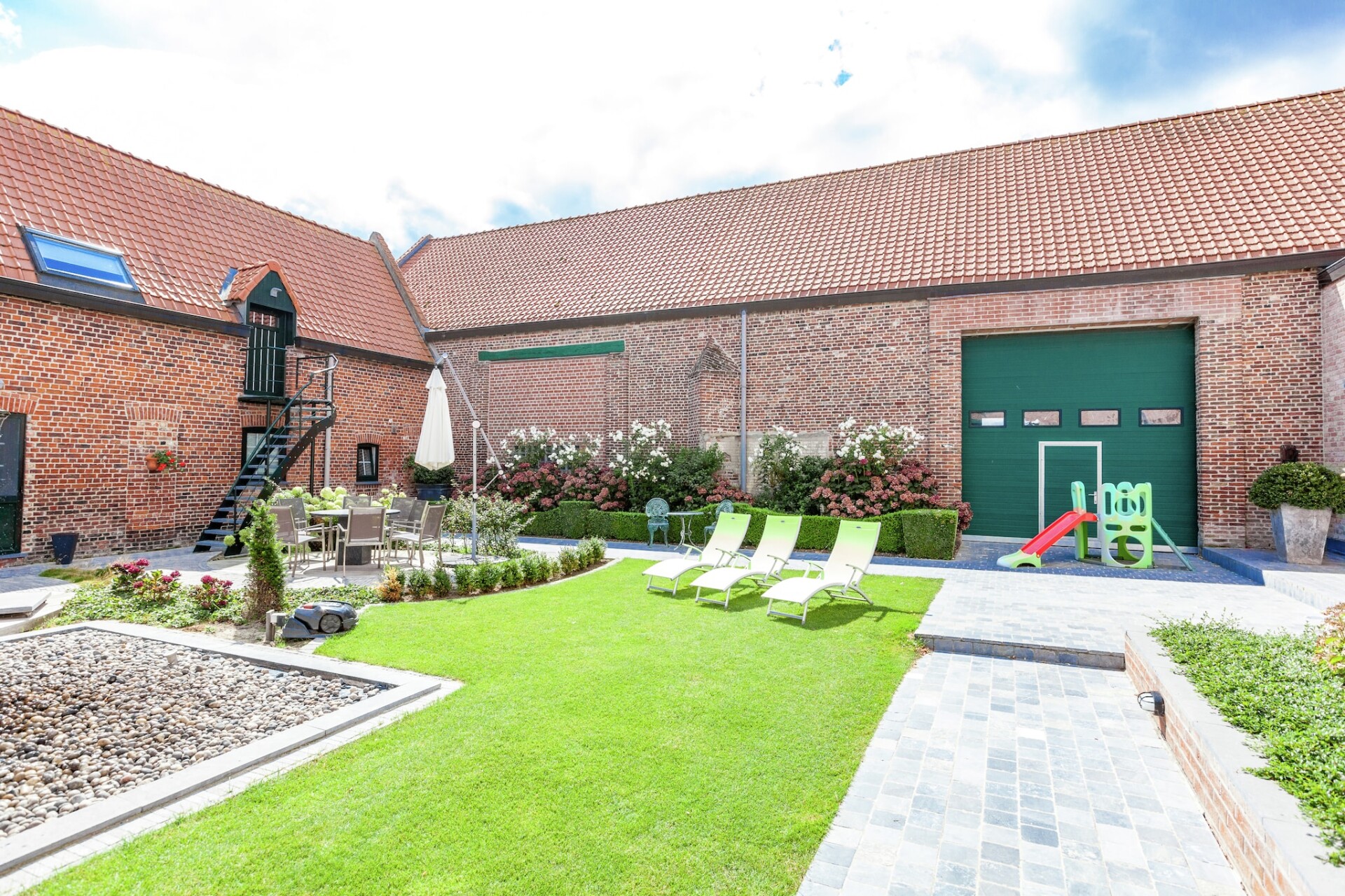 Er is één slaapkamer met een tweepersoonsbed en een badkamer met douche en toilet, voor extra privacy en comfort. Entertainment is onder andere een radio en cd-speler, terwijl buitenactiviteiten worden versterkt door een barbecue en een tafelvoetbalspel.