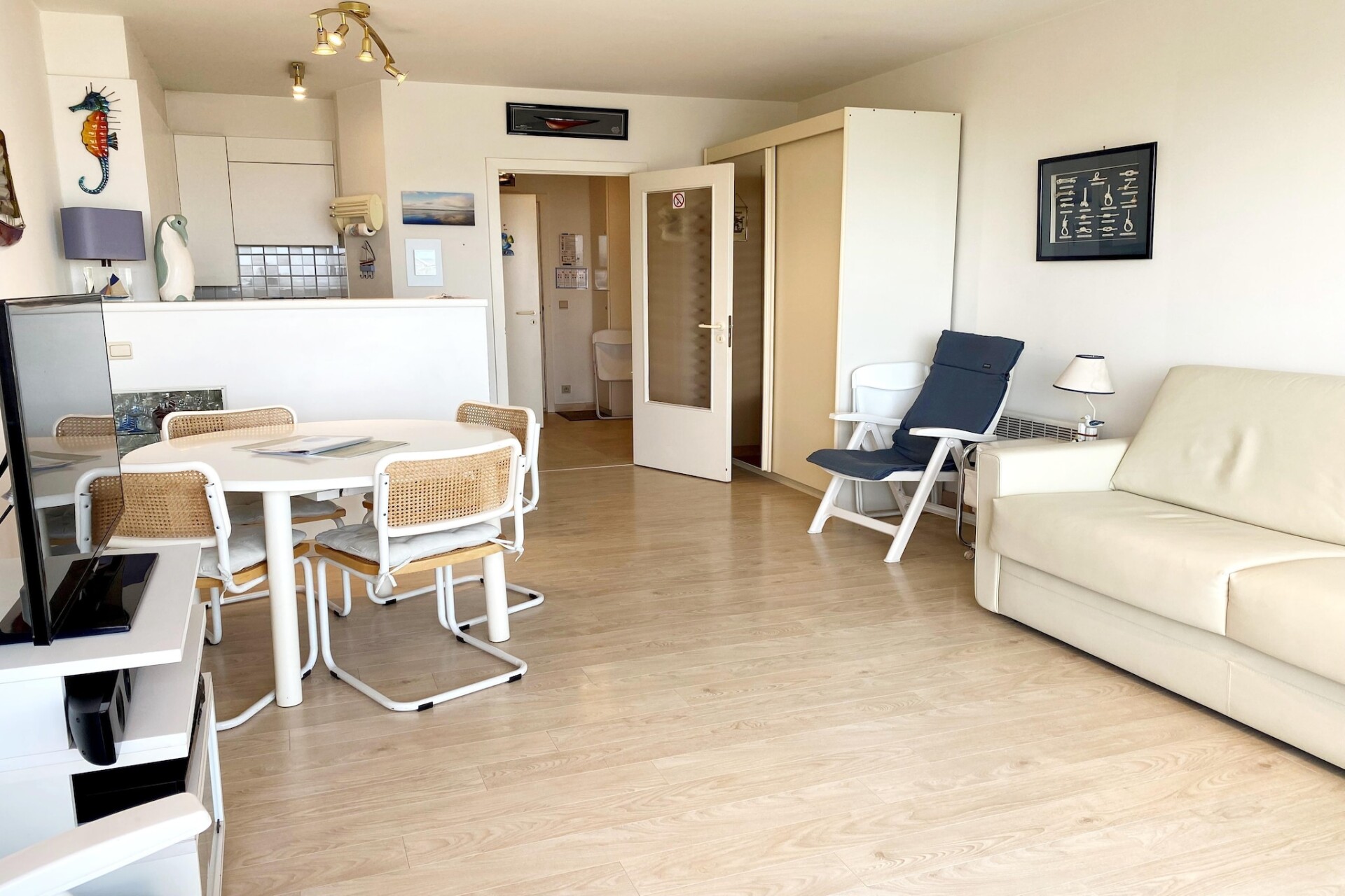 Dit stijlvolle appartement op de 6e verdieping biedt een goed uitgeruste keuken met een elektrische kookplaat, afzuigkap, koffiezetapparaat, combimagnetron, vaatwasser en koel-vriescombinatie. De open woonkamer is voorzien van een digitale tv, eettafel, zithoek en een comfortabele tweepersoons slaapbank (180 x 200 cm). Een gezellige slaapnis is voorzien van een stapelbed, terwijl de moderne badkamer een douche, wastafel en toilet heeft. Geniet van een eigen balkon of terras, gedeelde fietsenstalling en gemakkelijke toegang via een lift voor een comfortabel verblijf.