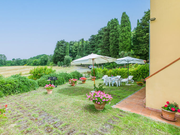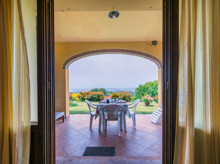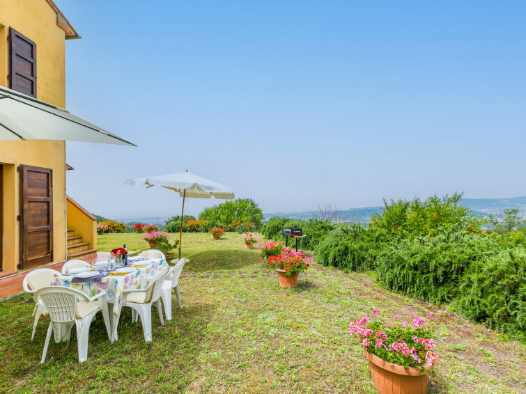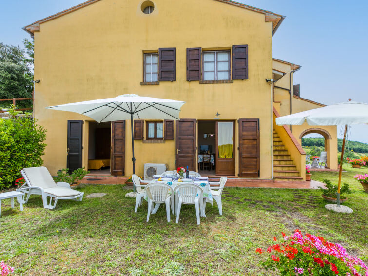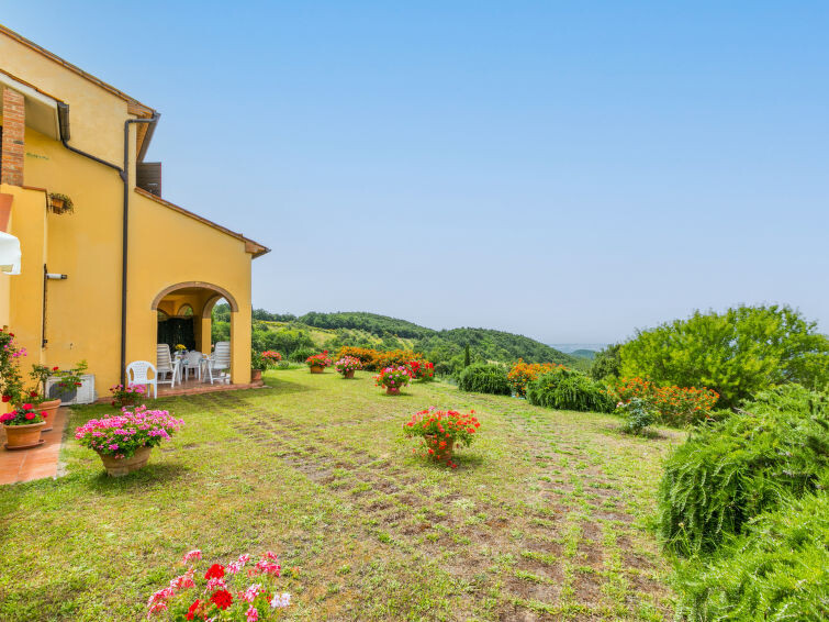 Cottage "Bellavista", van 3 verdiepingen, eenzijdig aangebouwd, omgeven door weiden en velden. 4 appartementen in de woning. Aan de rand van de plaats, 1.2 km van het centrum van Castellina Marittima, geïsoleerde, rustige, verhoogde ligging, 10 m van de bosrand, 17 km van zee, 17 km van het strand. Voor medegebruik: terrein, openluchtzwembad (verhoogd) rond (5 m diameter, 125 - 125 cm diepte, seizoensgebonden beschikbaarheid: 01.Jun. - 30.Sep.). Onderhoud zwembad door de eigenaar/tuinman. In het huis: wasmachine, droger (voor medegebruik). Toegangsweg (100 m onverharde weg). Parkeerplaats op het terrein. Winkel 1.2 km, levensmiddelenwinkel 1.2 km, restaurant 700 m, bushalte 100 m, zandstrand "Vada" 17 km, thermaalbad "Casciana Terme" 30 km. Attracties in de buurt: Pisa 50 km, Lucca 70 km, Firenze 120 km.