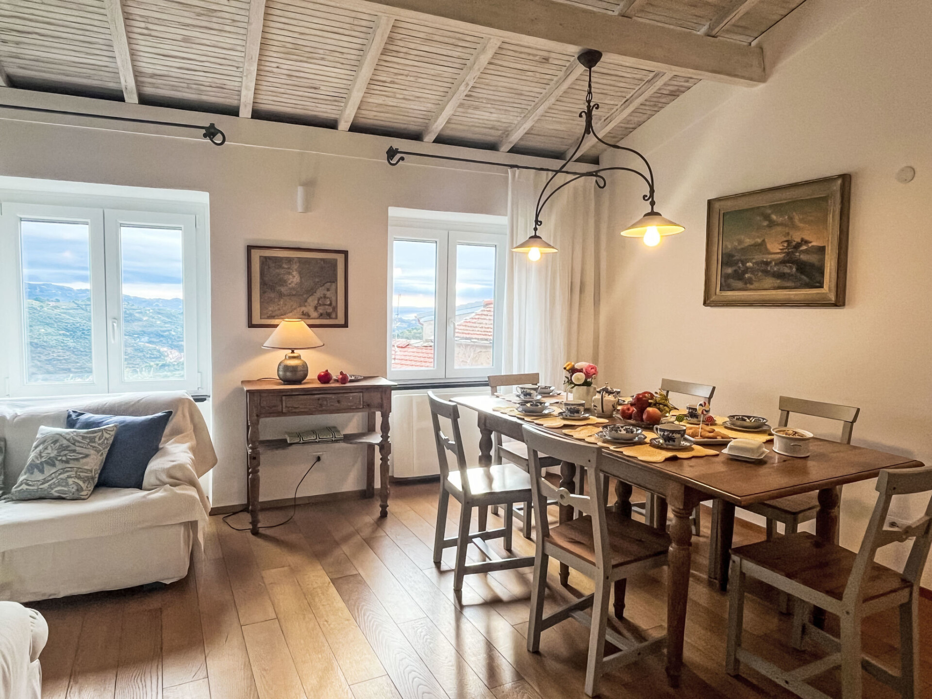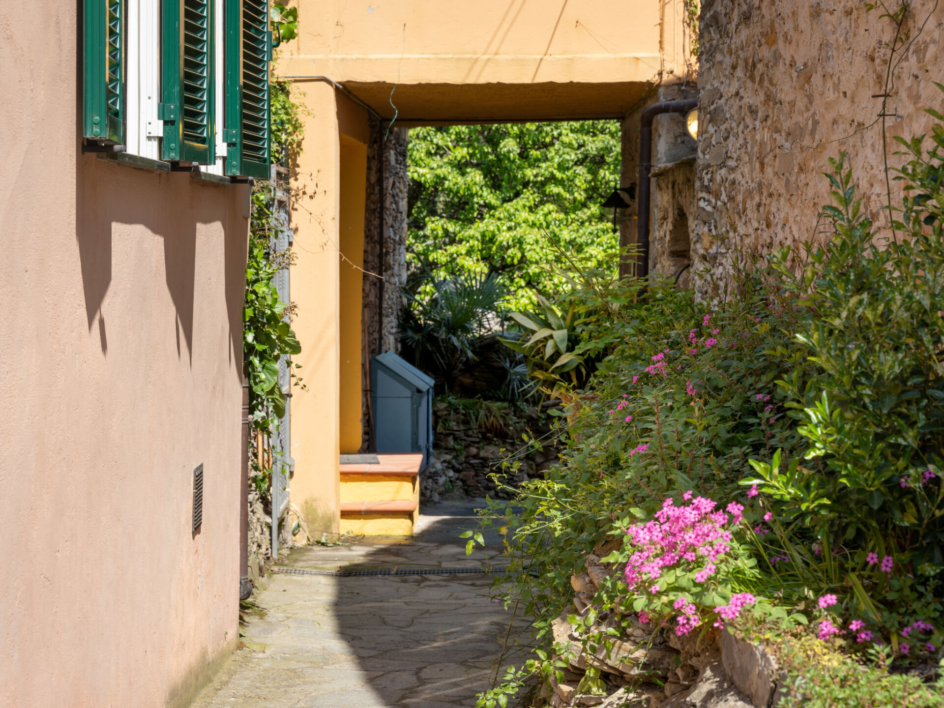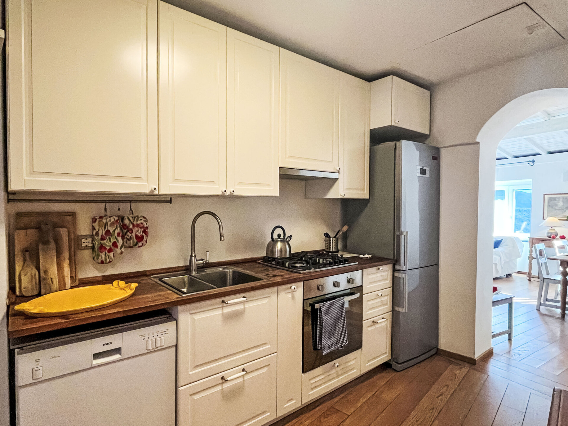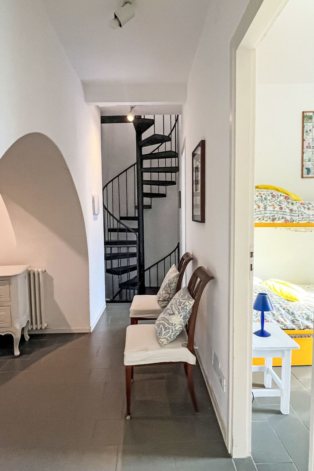 "Bellissimi (DOL280)", huis in een rij 5-kamers 110 m2 op 3 verdiepingen. Gedeeltelijk gerenoveerd in 2022, mooi en stijlvol ingericht: 1 kleine kamer met 1 divanbed (80 cm), douche/WC en air-conditioning. Bovenverdieping: (wenteltrap), 2 kleine kamers, elke kamer heeft 1 2-pers bed en air-conditioning. 1 kleine kamer met 1 x 2 stapelbedden (80 cm). Douche/bidet/WC. 2e Verdieping: (wenteltrap) woonkamer met eettafel, Sat-TV, stereo-installatie en DVD. Open keuken (oven, afwasmachine, 4 kookpitten (vlammen), diepvriezer, elektrische koffiemachine). Uitgang naar de tuin. Elektrische verwarming, air-conditioning. Verwarming alleen beschikbaar van 01.11. tot 10.05. Parketvloeren. Zithoek in de tuin 12 m2, prieel. Terrasmeubelen, ligstoelen. Mooi uitzicht op het dal en het landschap. Ter beschikking: strijkijzer. Internet (Internet (WiFi), gratis). IT008030C2UZO9GOXA