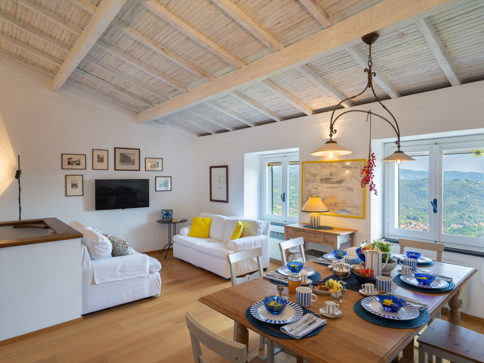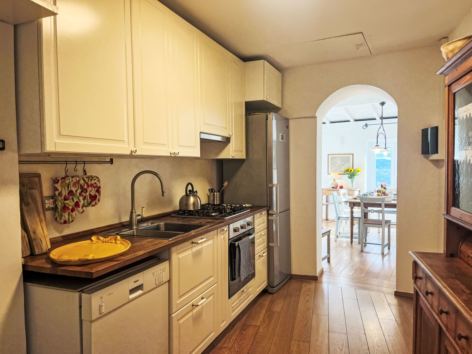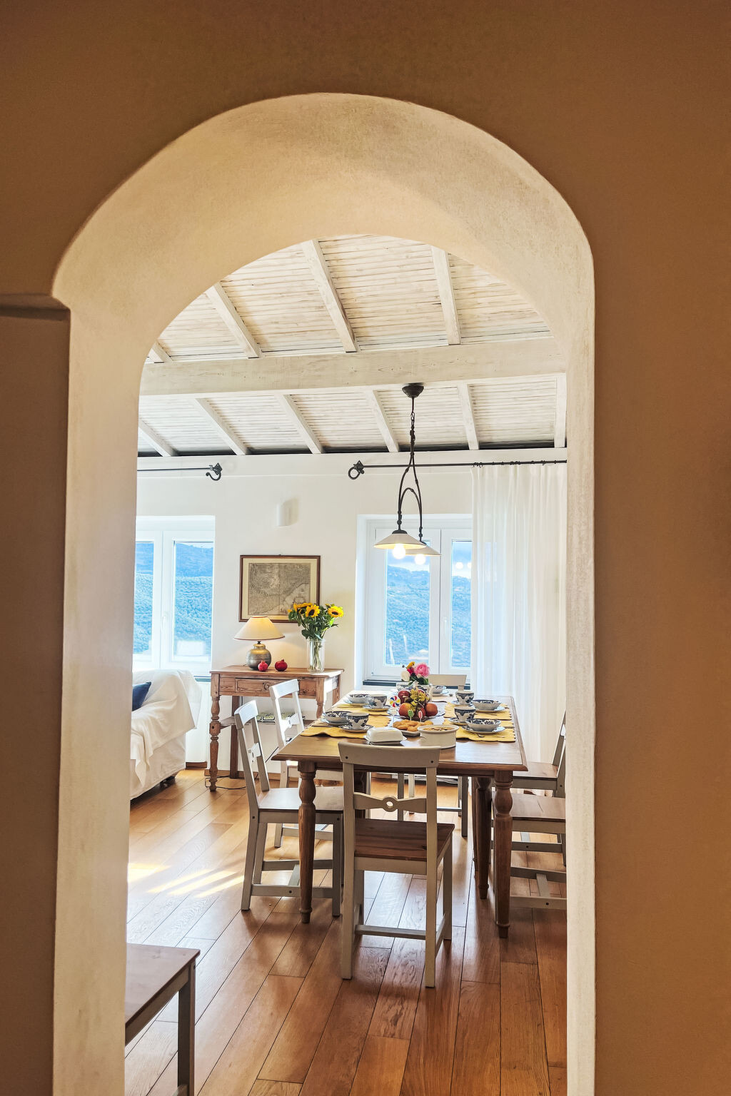 "Bellissimi (DOL280)", huis in een rij 5-kamers 110 m2 op 3 verdiepingen. Gedeeltelijk gerenoveerd in 2022, mooi en stijlvol ingericht: 1 kleine kamer met 1 divanbed (80 cm), douche/WC en air-conditioning. Bovenverdieping: (wenteltrap), 2 kleine kamers, elke kamer heeft 1 2-pers bed en air-conditioning. 1 kleine kamer met 1 x 2 stapelbedden (80 cm). Douche/bidet/WC. 2e Verdieping: (wenteltrap) woonkamer met eettafel, Sat-TV, stereo-installatie en DVD. Open keuken (oven, afwasmachine, 4 kookpitten (vlammen), diepvriezer, elektrische koffiemachine). Uitgang naar de tuin. Elektrische verwarming, air-conditioning. Verwarming alleen beschikbaar van 01.11. tot 10.05. Parketvloeren. Zithoek in de tuin 12 m2, prieel. Terrasmeubelen, ligstoelen. Mooi uitzicht op het dal en het landschap. Ter beschikking: strijkijzer. Internet (Internet (WiFi), gratis). IT008030C2UZO9GOXA