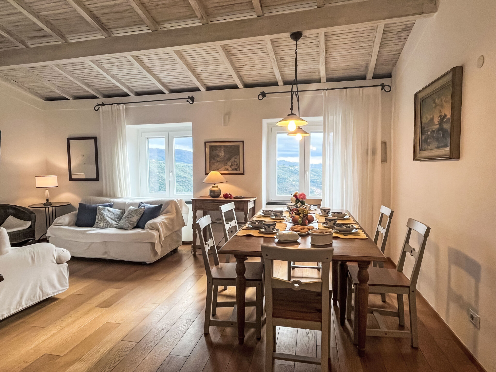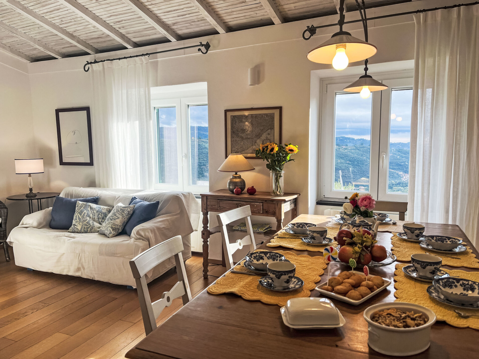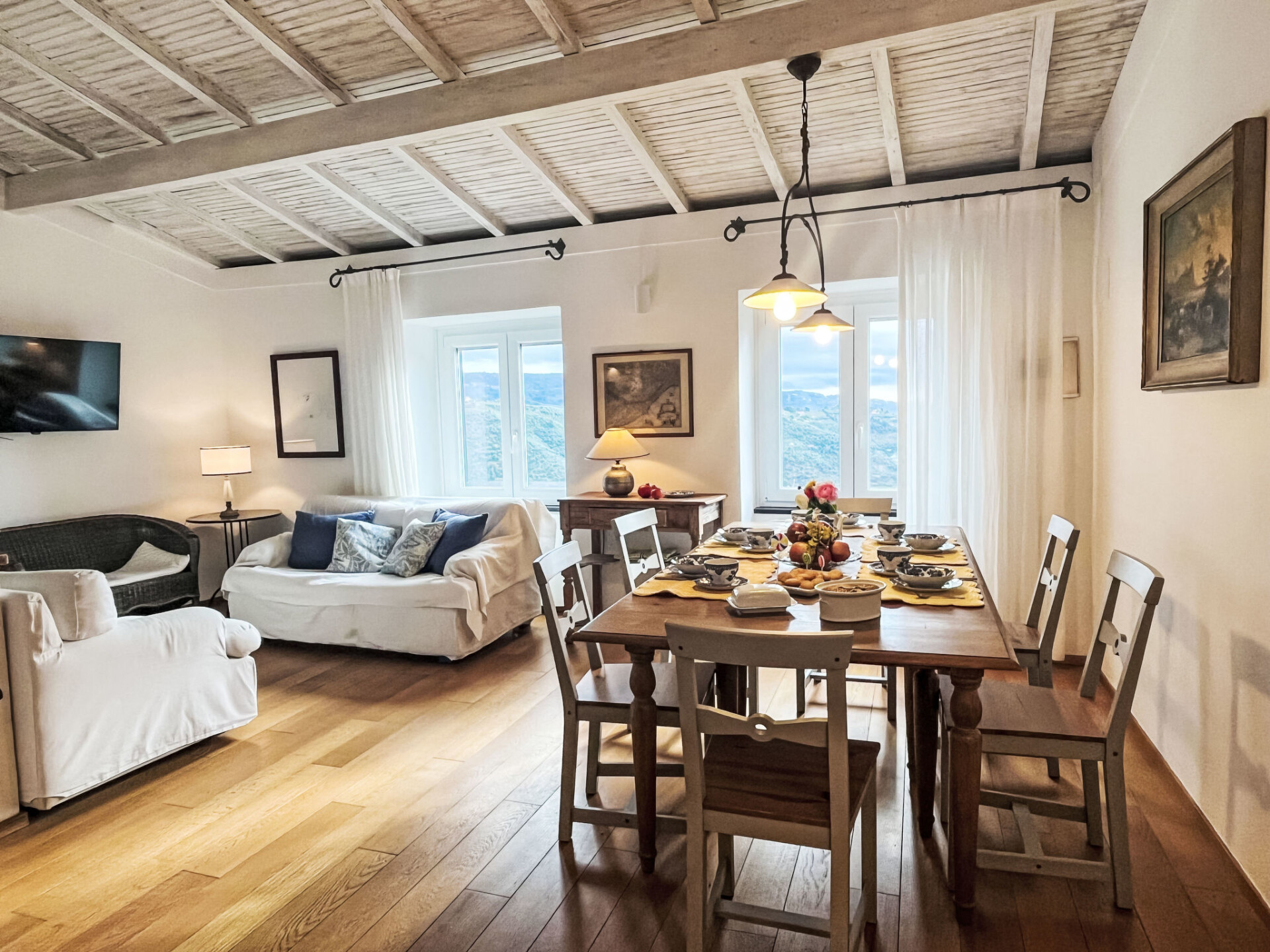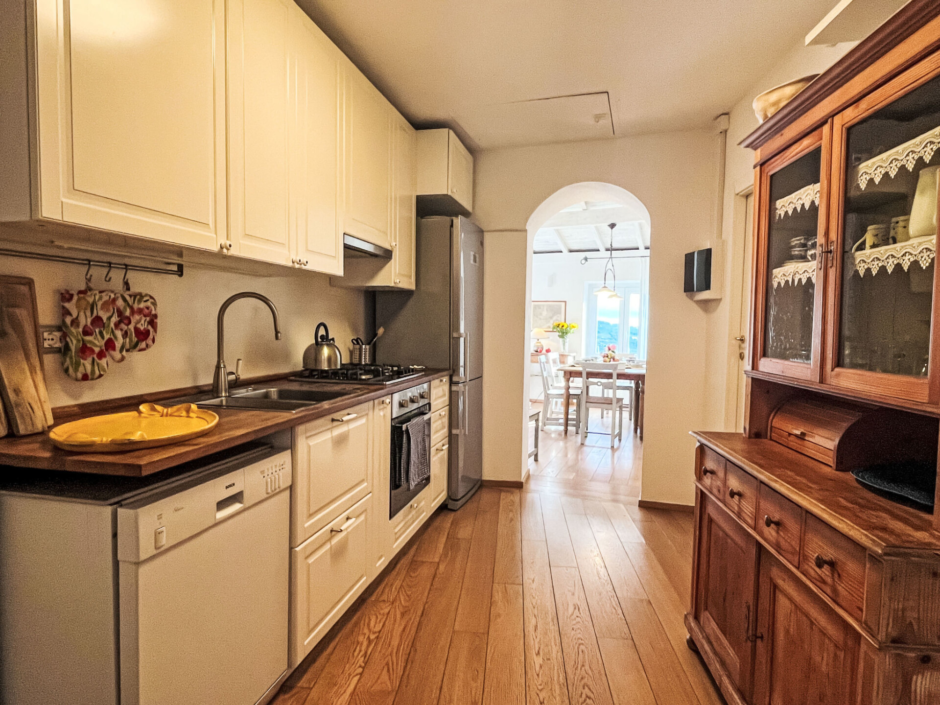 "Bellissimi (DOL280)", huis in een rij 5-kamers 110 m2 op 3 verdiepingen. Gedeeltelijk gerenoveerd in 2022, mooi en stijlvol ingericht: 1 kleine kamer met 1 divanbed (80 cm), douche/WC en air-conditioning. Bovenverdieping: (wenteltrap), 2 kleine kamers, elke kamer heeft 1 2-pers bed en air-conditioning. 1 kleine kamer met 1 x 2 stapelbedden (80 cm). Douche/bidet/WC. 2e Verdieping: (wenteltrap) woonkamer met eettafel, Sat-TV, stereo-installatie en DVD. Open keuken (oven, afwasmachine, 4 kookpitten (vlammen), diepvriezer, elektrische koffiemachine). Uitgang naar de tuin. Elektrische verwarming, air-conditioning. Verwarming alleen beschikbaar van 01.11. tot 10.05. Parketvloeren. Zithoek in de tuin 12 m2, prieel. Terrasmeubelen, ligstoelen. Mooi uitzicht op het dal en het landschap. Ter beschikking: strijkijzer. Internet (Internet (WiFi), gratis). IT008030C2UZO9GOXA