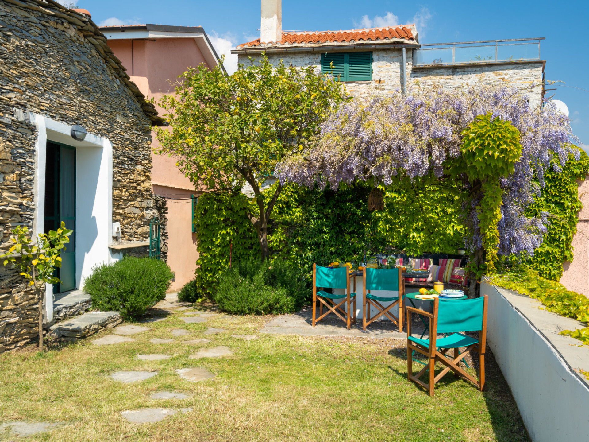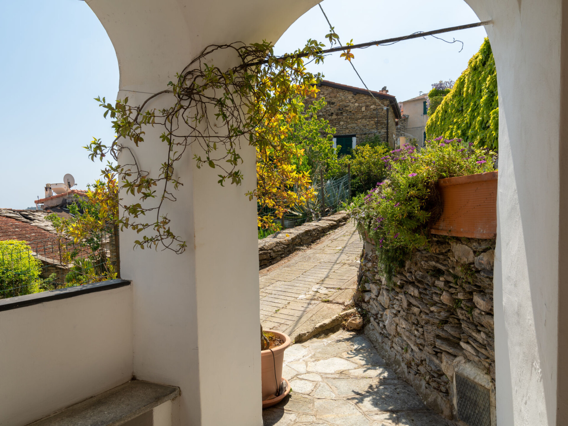 Mooi cottage van 2 verdiepingen, eenzijdig aangebouwd. In het gehucht Bellissimi, 4 km van het centrum van Dolcedo, 13 km van het centrum van Imperia, tegen een helling, in een woonwijk, 11 km van zee. Voor medegebruik: openluchtzwembad (8 x 4 m, 150 cm diepte, seizoensgebonden beschikbaarheid: 01.Mei. - 15.Okt.). Buitendouche, onderhoud zwembad door de eigenaar/tuinman. Voor alleengebruik: mooie, verzorgde tuin 200 m2 (omheind) met gazon en bomen, ligweide. Patio, prieel, tuinmeubelen. In het huis: wasmachine (voor medegebruik). 200 m steil voetpad naar het huis. Openbare parkeerplaatsen 200 m. Winkel 4 km, supermarkt 13 km, restaurant 5 km, bushalte 200 m, treinstation "Imperia Porto Maurizio" 13 km, kiezelstrand "Imperia Porto Maurizio" 13 km, openluchtzwembad 10 km. De woning bevindt zich in een voor verkeer beperkte zone. In dit complex zijn verder 1 huis te huur.