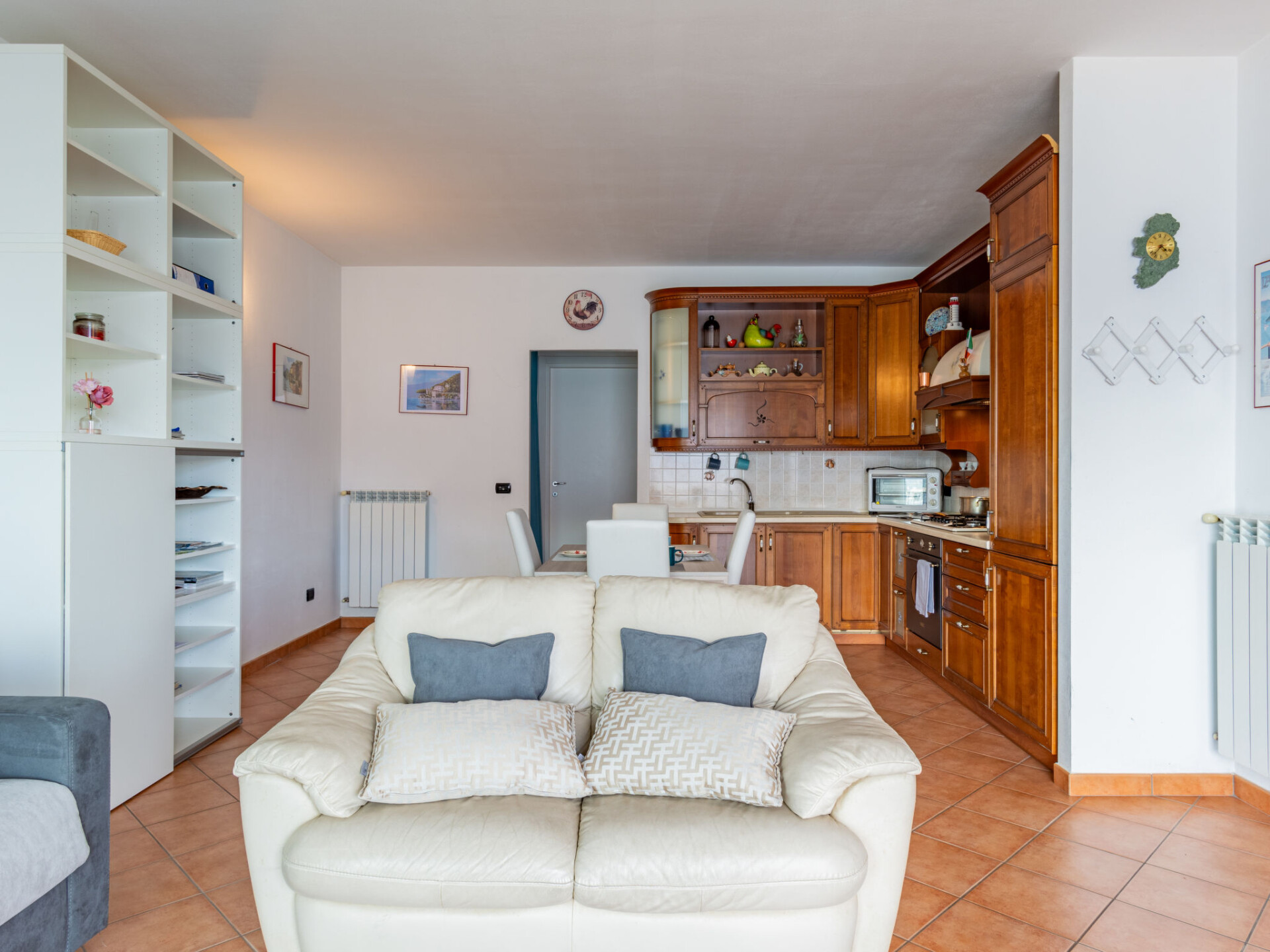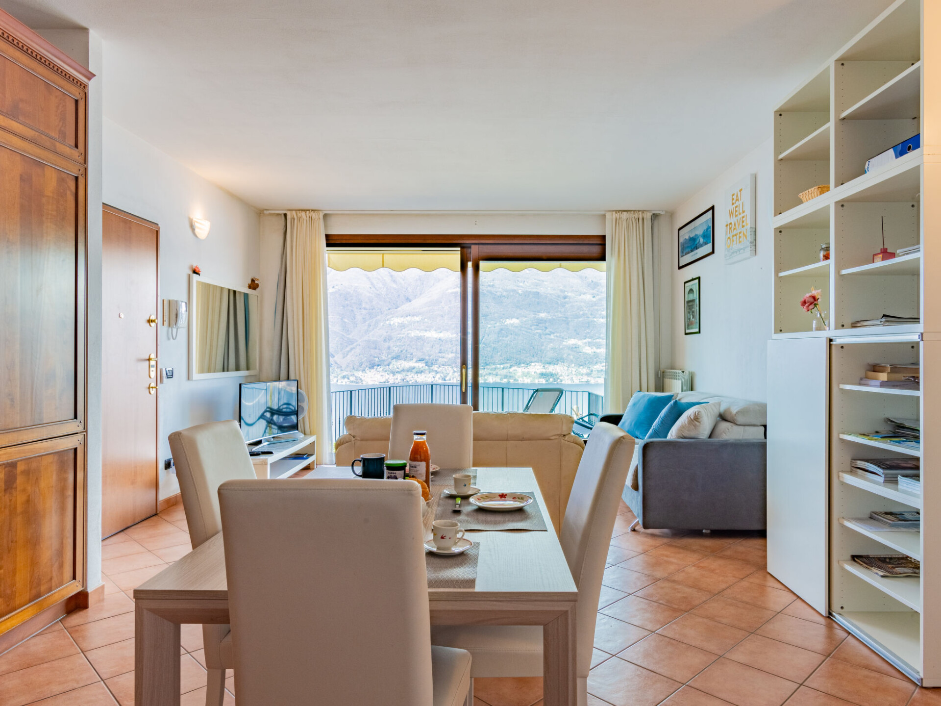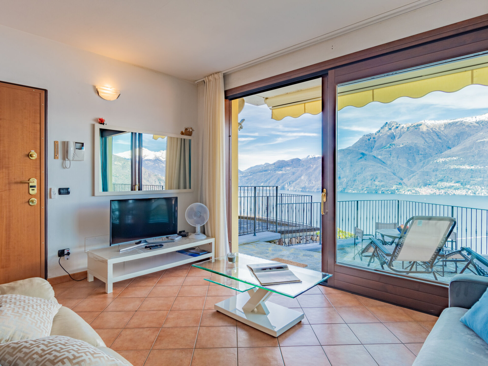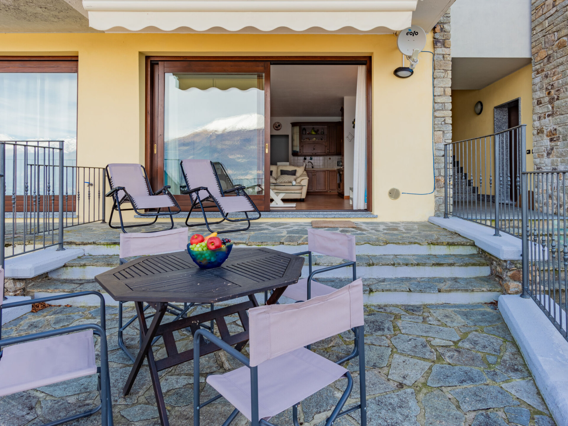 Appartement 3-kamers 70 m2 op de 1e verdieping. Comfortabel ingericht: woon-/eetkamer met panoramavenster met TV. Uitgang naar het terras. 1 kamer met 1 2-pers bed en air-conditioning. 1 kamer met 2 bedden en air-conditioning. Kookhoek (4-pits kookplaat, oven, diepvriezer). Douche/bidet/WC. Gas-verwarming (extra). Terras 20 m2. Terrasmeubelen. Mooi panoramazicht op het meer en de bergen. Ter beschikking: wasmachine, haardroger. Internet (WiFi, gratis). Garage. Rookvrij huis. Maximaal 1 huisdier/hond toegestaan. IT097008C2MUP37JXG