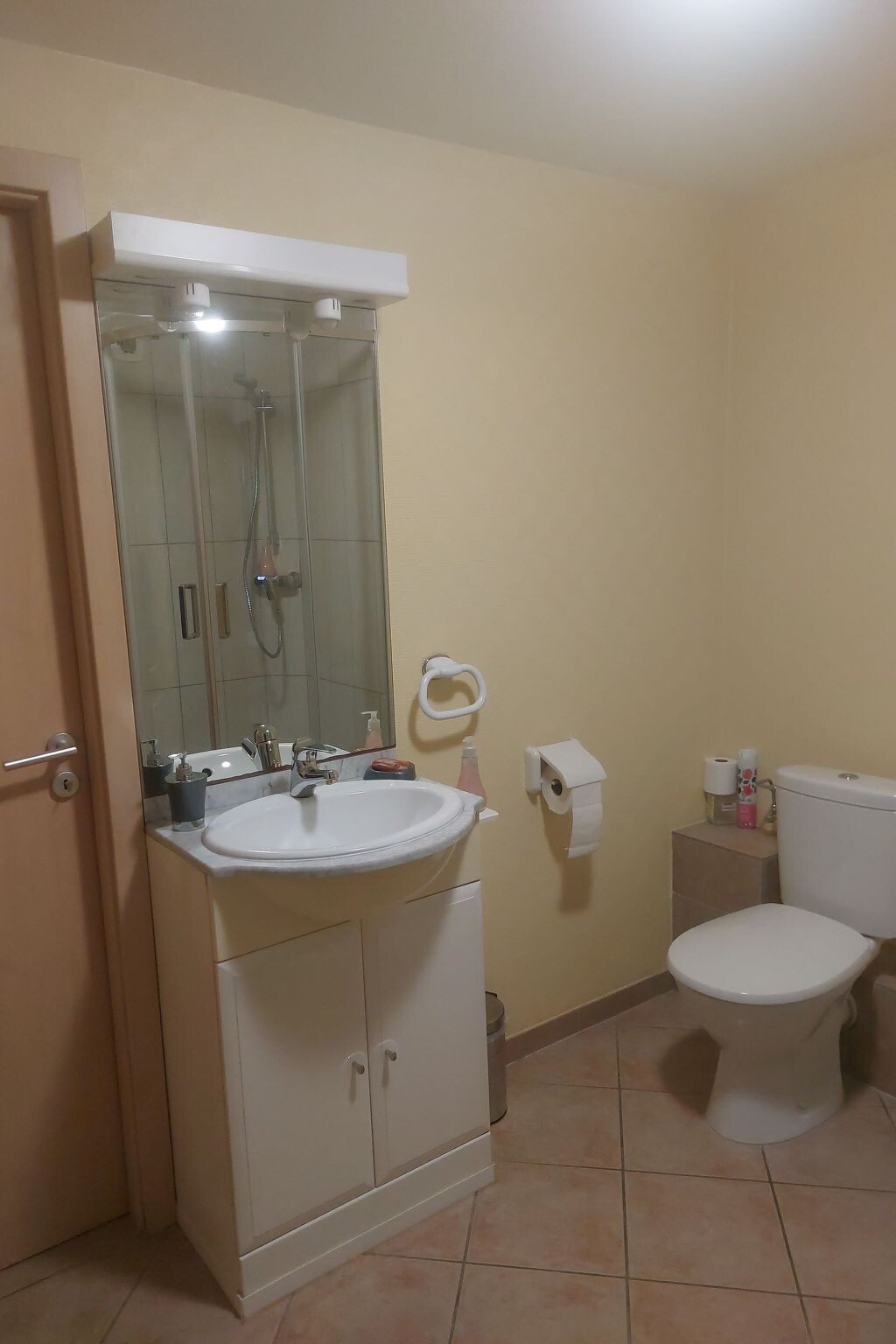 The holiday home is situated on the owner's property in a small village of 700 inhabitants, in a quiet location 15 km from Obernai and Mont St Odile and 45 km from Strasbourg.This two-storey, 90 m² wooden house sleeps nine people. It has three bedrooms, all located in the attic; the first bedroom has a 140 cm double bed and a 90 cm single bed, while the second and third bedrooms each have three 90 cm single beds. The large living room on the ground floor includes a sitting area with an armchair and sofa and a television (digital TV), as well as a dining area and an open-plan kitchen. It is fully equipped with a cooker, oven, dishwasher, fridge-freezer, microwave, toaster and coffee machine, as well as a washing machine and a small bar that acts as a room divider with the dining area. The house has two bathrooms, each with shower, washbasin and toilet. There is electric heating in every room.Outside, guests have access to a terrace with a wooden table where they can enjoy the beautiful view. The chalet also has a garden with games for children. A barbecue is also available. Two private parking spaces are available for guests' vehicles.The chalet is an ideal base for exploring the Alsace and Vosges regions and the wine route. It is just 15 km from Obernai and Mont St Odile, and only 45 km from Strasbourg and Colmar. Numerous hiking, walking and mountain bike trails start nearby. For mountain sports enthusiasts, there are climbing walls and the Champ du Feu ski resort nearby (approx. 20 km). A restaurant serving Alsatian specialities and a grocery shop are less than 1 km away.