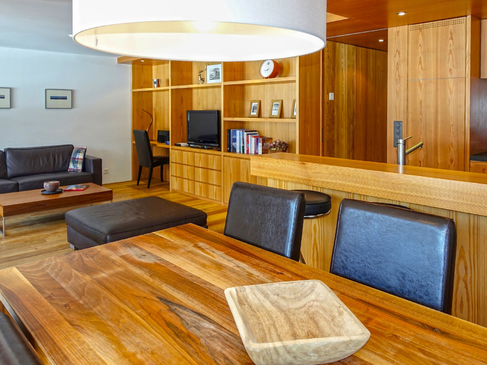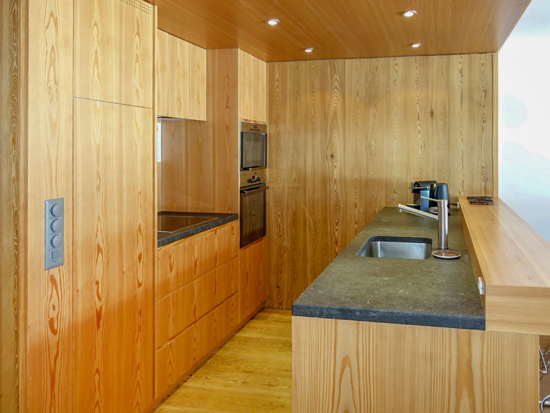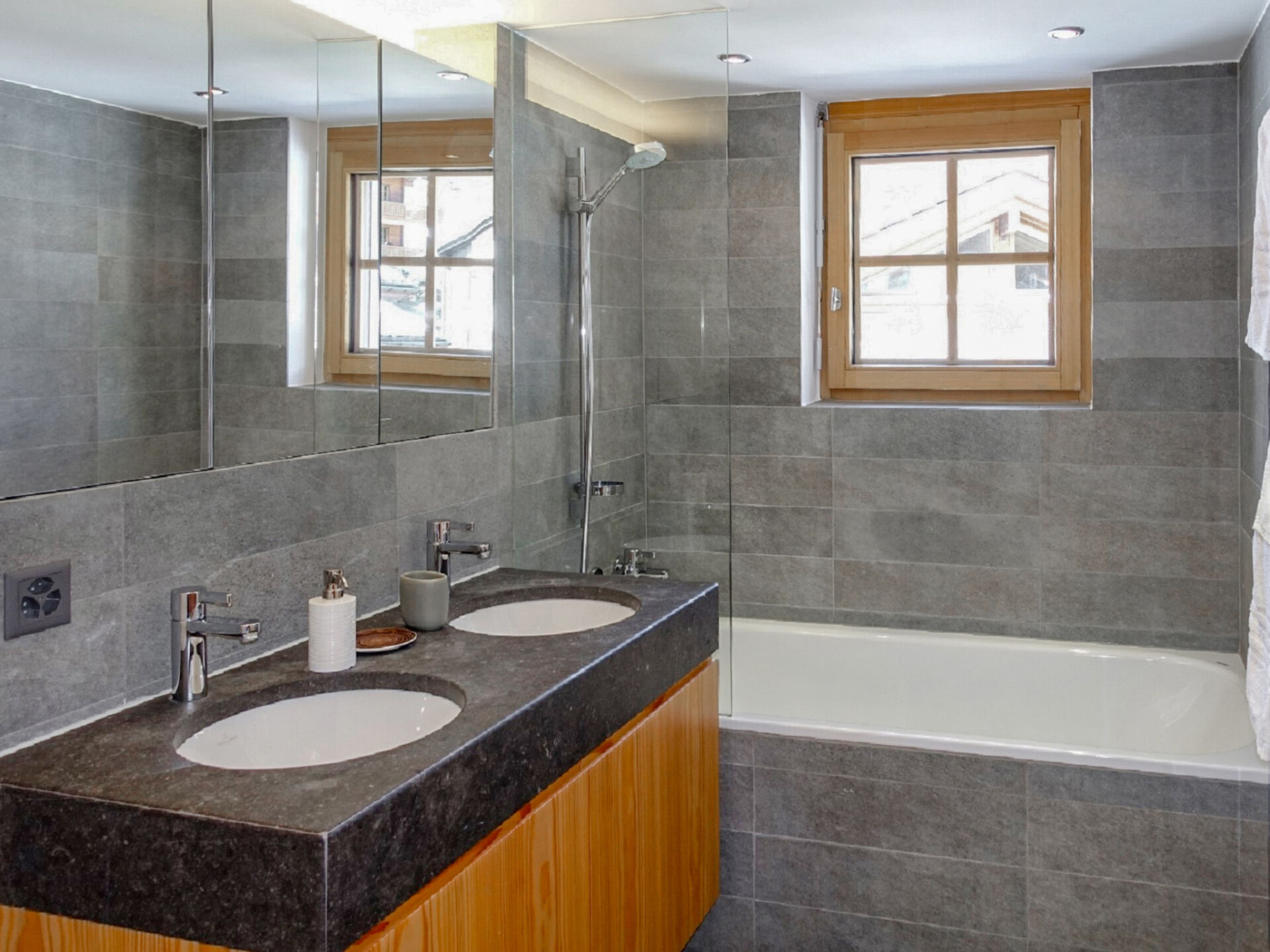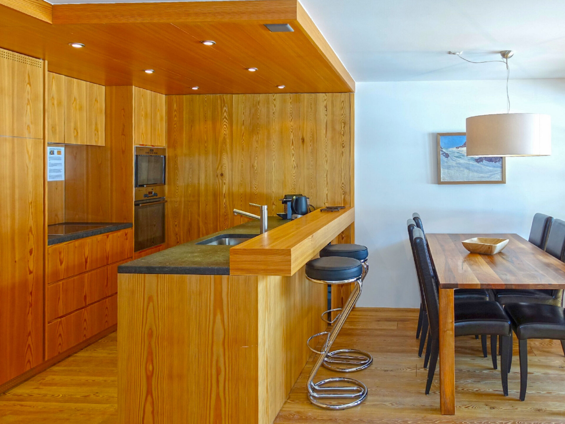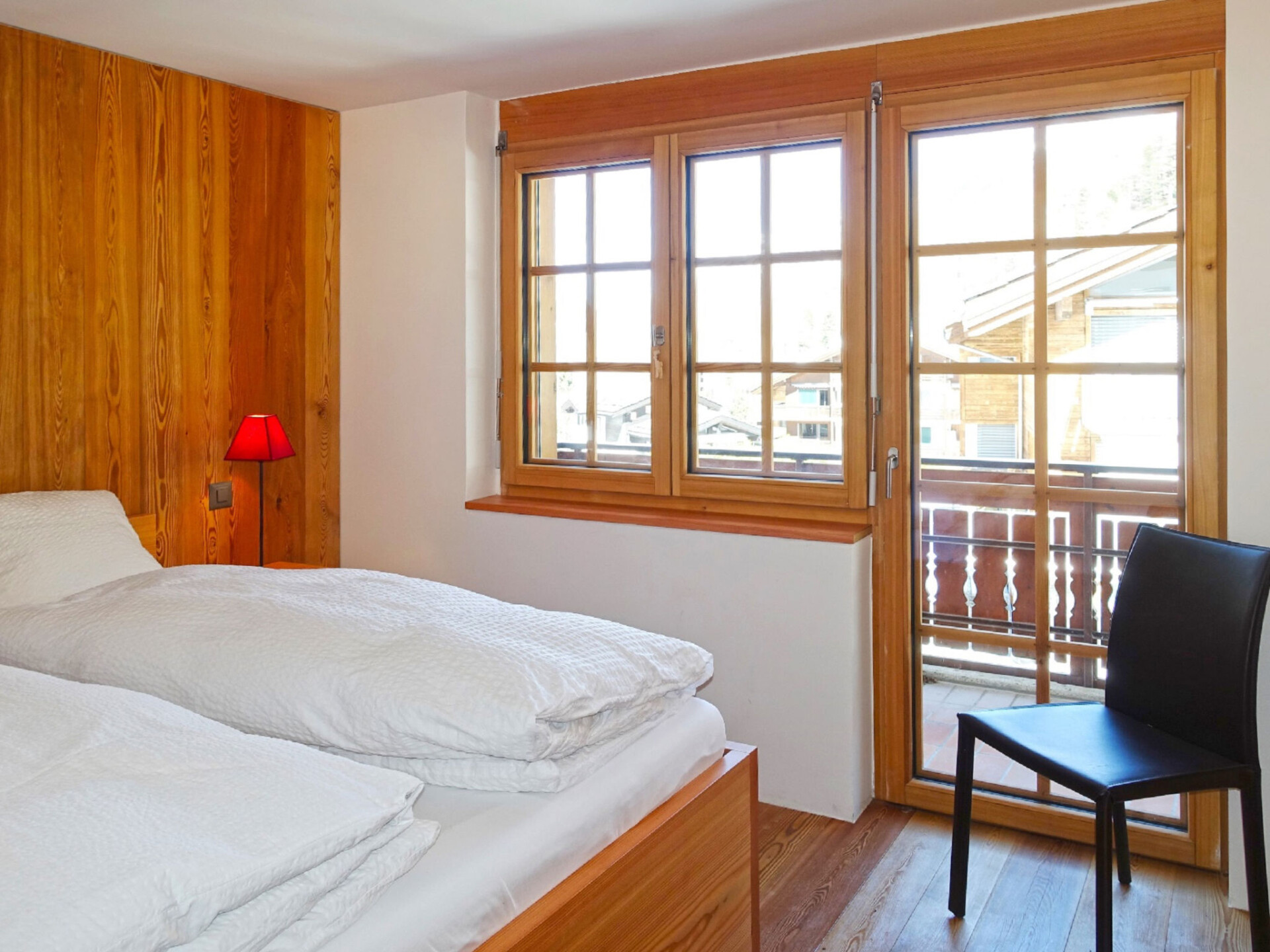 Appartement 4-kamers 110 m2 op de 2e verdieping. Ruim en licht, mooi en modern ingericht: woonkamer met open haard, TV en DVD. Uitgang naar het balkon, op het zuiden. 1 2-pers. kamer met 1 2-pers bed (160 cm, lengte 200 cm). 1 2-pers. kamer met 1 2-pers bed (160 cm, lengte 200 cm). Uitgang naar het balkon, op het noorden. 1 kamer met 1 x 2 stapelbedden (90 cm, lengte 200 cm), TV. Open keuken (oven, afwasmachine, 4 keramische glas kookplaten, broodrooster, waterkoker, magnetron, diepvriezer, elektrische koffiemachine, raclette oven, fondue Set (kaas)) met eettafel. Uitgang naar het balkon, op het zuiden. Bad/WC, douche/WC. Vloerverwarming. Parketvloeren. 2 balkons, op het zuiden gelegen en op het noorden gelegen. Balkonmeubilair. Uitzicht op the Matterhorn. Ter beschikking: haardroger. Internet (Internet (WiFi), gratis). Niet rokers woning.
