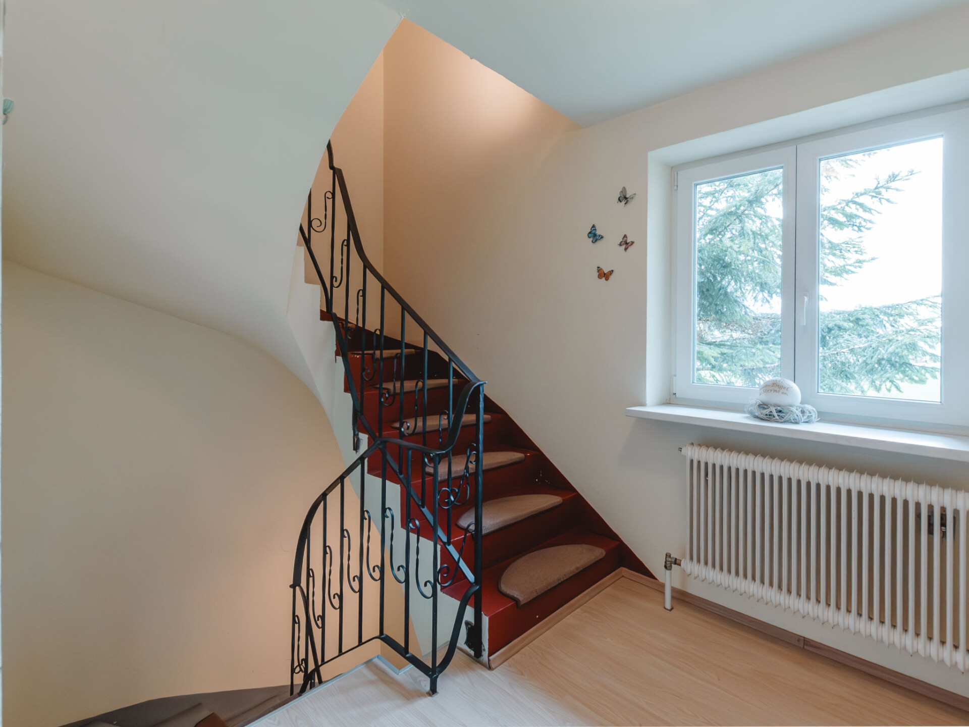 Huis 9-kamers 250 m2 op 3 verdiepingen. Licht: woon-/slaapkamer met 2 divanbedden, zwedenkachel, eettafel en Kabel-TV. Uitgang naar het terras. Woon-/slaapkamer met afgeschuinde daken met 1 2-pers bed (160 cm). Open keuken (oven, afwasmachine, 4 keramische glas kookplaten, broodrooster, magnetron, elektrische koffiemachine, raclette oven, fondue Set (kaas)). Douche, aparte WC. Verwarming. Bovenverdieping: 1 kamer met 1 2-pers bed (140 cm). Uitgang naar het balkon. 1 kamer met 1 2-pers bed (140 cm), wastafel. Uitgang naar het balkon. 1 kamer met 1 bed, 1 2-pers bed en wastafel. Uitgang naar het balkon. 1 kamer met 1 bed, 1 2-pers bed en wastafel. Uitgang naar het balkon. Douche, aparte WC. Verwarming. 2e Verdieping: woon-/slaapkamer met afgeschuinde daken met 1 2-pers bed (160 cm), wastafel en Kabel-TV. 2 kamers met afgeschuinde daken, elke kamer heeft 1 bed, 1 2-pers bed en wastafel. Open keuken (4 keramische glas kookplaten, broodrooster, elektrische koffiemachine). Douche/WC. Verwarming. Tuin 900 m2. Ter beschikking: Internet (WiFi, gratis). Niet rokers woning. 1 huisdier/hond toegestaan. Als er minder dan het maximale aantal gasten in de accommodatie verblijft, zijn niet alle wooneenheden beschikbaar voor gebruik. 50604-003152-2020